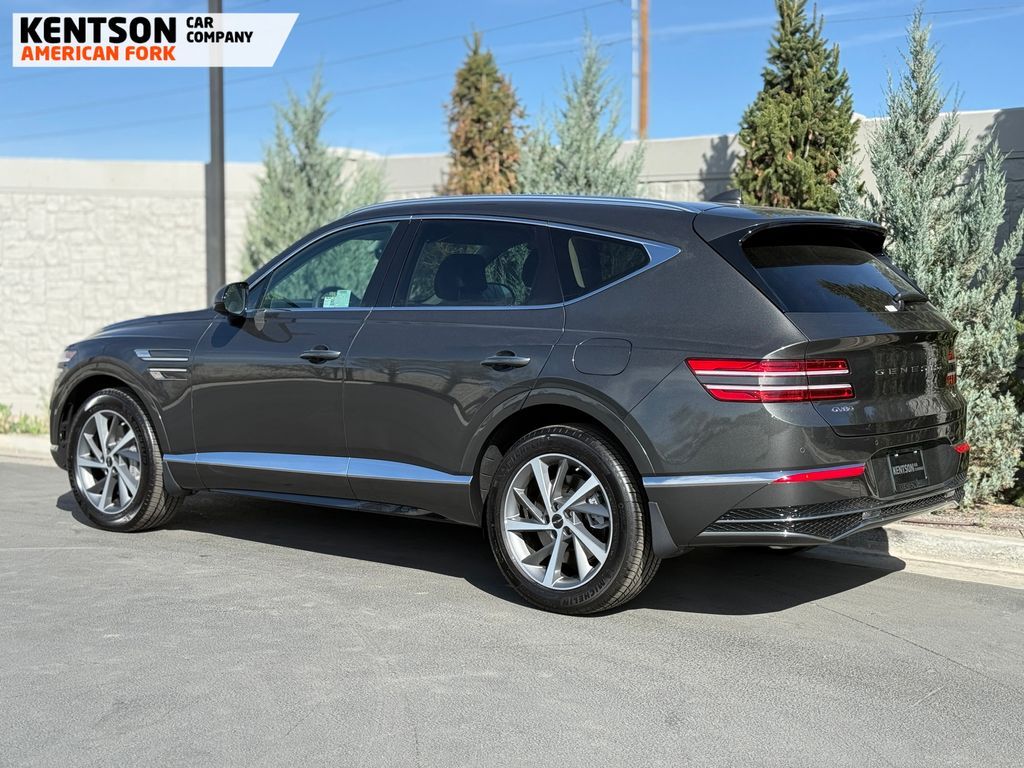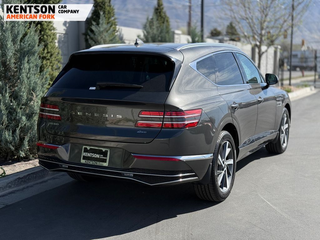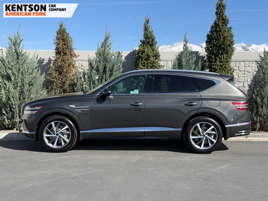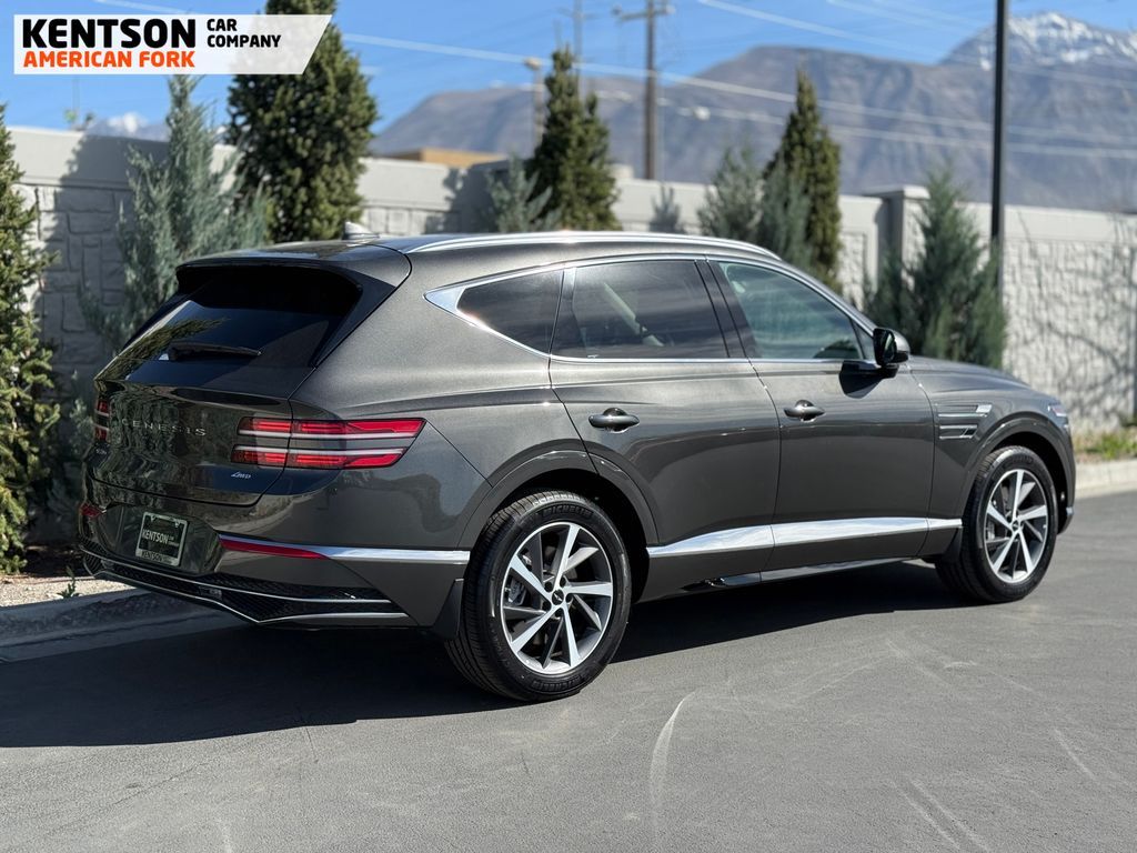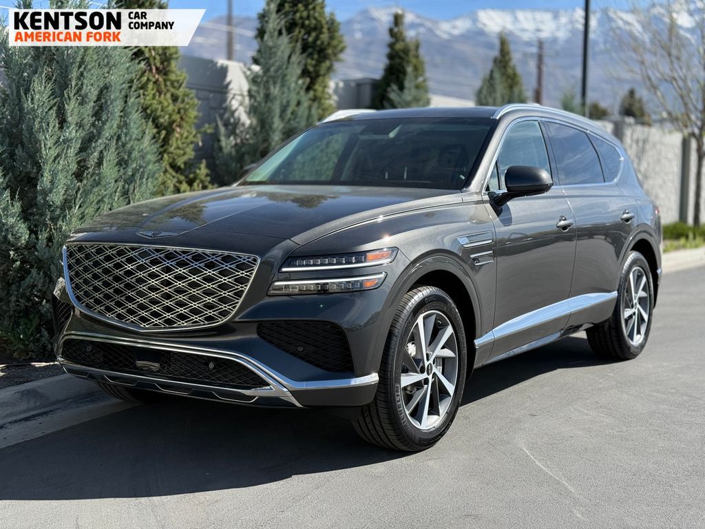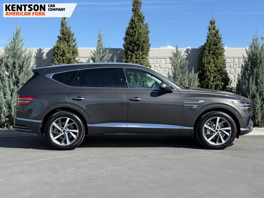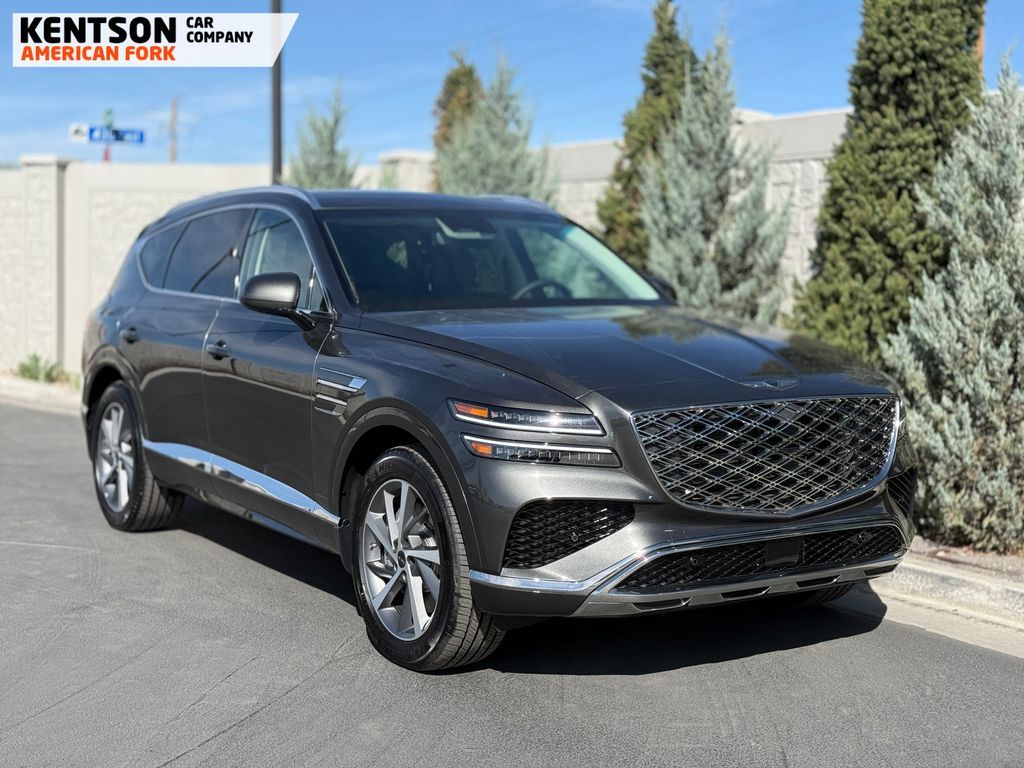 Option Group 01, 12 Speakers, 4-Wheel Disc Brakes, ABS brakes, Air Conditioning, Alloy wheels, AM/FM radio: SiriusXM, Anti-whiplash front head restraints, Auto High-beam Headlights, Auto tilt-away steering wheel, Auto-dimming door mirrors, Auto-dimming Rear-View mirror, Auto-leveling suspension, Automatic temperature control, Brake assist, Bumpers: body-color, Cargo Net, Cargo Tray, Compass, Delay-off headlights, Driver door bin, Driver vanity mirror, Dual front impact airbags, Dual front side impact airbags, Electronic Stability Control, Emergency communication system: Genesis Connected Services, Exterior Parking Camera Rear, First Aid Kit, Four wheel independent suspension, Fragrance Cartridge, Front & Rear Mudguards, Front anti-roll bar, Front Bucket Seats, Front Center Armrest, Front dual zone A/C, Front reading lights, Fully automatic headlights, Garage door transmitter: HomeLink, Genuine wood console insert, Genuine wood dashboard insert, Genuine wood door panel insert, Heated door mirrors, Heated Front Bucket Seats, Heated front seats, Heated steering wheel, Illuminated entry, Knee airbag, Leather steering wheel, Leatherette Seating Surfaces, Low tire pressure warning, Memory seat, Navigation System, NFC Key Card, Occupant sensing airbag, Outside temperature display, Overhead airbag, Overhead console, Panic alarm, Passenger door bin, Passenger vanity mirror, Power door mirrors, Power driver seat, Power Liftgate, Power moonroof, Power passenger seat, Power steering, Power windows, Radio data system, Radio: AM/FM/SiriusXM/HD, Rain sensing wipers, Rear air conditioning, Rear anti-roll bar, Rear reading lights, Rear seat center armrest, Rear side impact airbag, Rear window defroster, Rear window wiper, Remote keyless entry, Roadside Assistance Kit, Security system, Speed control, Speed-sensing steering, Speed-Sensitive Wipers, Split folding rear seat, Spoiler, Steering wheel memory, Steering wheel mounted audio controls, Tachometer, Telescoping steering wheel, Tilt steering wheel, Traction control, Trip computer, Turn signal indicator mirrors, Variably intermittent wipers, and Wheels: 20'' x 8.5J Dark Gray Matte Alloy.