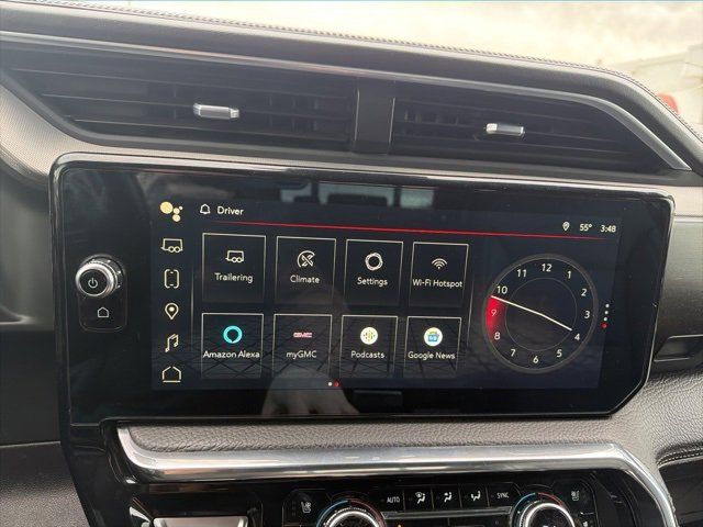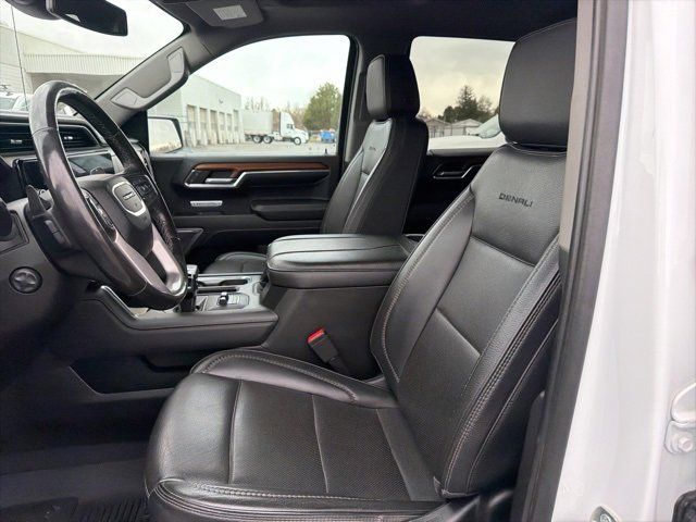 Recent Arrival! Clean CARFAX. Odometer is 2665 miles below market average! EcoTec3 5.3L V8 10-Speed Automatic, 4WD, Black Leather, 10-Way Power Driver Seat Adjuster w/Lumbar, 10-Way Power Passenger Seat Adjuster w/Lumbar, 120-Volt Bed Mounted Power Outlet, 120-Volt Instrument Panel Power Outlet, 170 Amp Alternator, 2 Charge/Data USB Ports Inside Center Console, 2 Type-C Charge-Only Rear USB Ports, 2 USB Ports, 3.23 Rear Axle Ratio, 4-Wheel Disc Brakes, 7 Speakers, ABS brakes, Adaptive suspension, Air Conditioning, Alloy wheels, AM/FM radio, Apple CarPlay/Android Auto, Auto High-beam Headlights, Auto-dimming door mirrors, Auto-dimming Rear-View mirror, Auto-Locking Rear Differential, Automatic Emergency Braking, Automatic temperature control, Auxiliary External Transmission Oil Cooler, Bed View Camera, Brake assist, Buckle to Drive, Bumpers: body-color, Chrome Header w/Signature Denali Chrome Grille, Chrome Recovery Hooks, Chrome Wheel To Wheel Assist Steps, Color-Keyed Carpeting Floor Covering, Compass, Deep-Tinted Glass, Delay-off headlights, Denali Premium Suspension w/Adaptive Ride Control, Driver door bin, Driver Memory, Driver vanity mirror, Dual front impact airbags, Dual front side impact airbags, Electric Rear-Window Defogger, Electrical Steering Column Lock, Electronic Stability Control, Emergency communication system: OnStar and GMC connected services capable, Engine Block Heater, Floor-Mounted Center Console, Following Distance Indicator, Forge Perforated Leather Seat Trim, Forward Collision Alert, Front anti-roll bar, Front Bucket Seats, Front Center Armrest, Front dual zone A/C, Front fog lights, Front License Plate Kit, Front Pedestrian Braking, Front Rainsensing Wipers, Front reading lights, Front wheel independent suspension, Fully automatic headlights, Garage door transmitter, Genuine wood console insert, Genuine wood dashboard insert, Genuine wood door panel insert, GMC Connected Access Capable, HD Surround Vision, Heated 2nd Row Outboard Seats, Heated door mirrors, Heated Driver & Front Outboard Passenger Seating, Heated front seats, Heated rear seats, Heated steering wheel, Heavy-Duty Air Filter, Hill Descent Control, Hitch Guidance, Hitch Guidance w/Hitch View, Illuminated entry, In-Vehicle Trailering App, Integrated Trailer Brake Controller, IntelliBeam Automatic High Beam On/Off, Keyless Open & Start, Lane Keep Assist w/Lane Departure Warning, LED Cargo Area Lighting, Low tire pressure warning, Memory seat, Navigation System, Not Equipped w/Steering Column Lock, Occupant sensing airbag, OnStar & GMC Connected Services Capable, Outside temperature display, Overhead airbag, Overhead console, Panic alarm, Passenger door bin, Passenger vanity mirror, Perimeter Lighting, Power Door Locks, Power door mirrors, Power driver seat, Power Front Passenger Windows w/Express Up/Down, Power Front Windows w/Driver Express Up/Down, Power passenger seat, Power Rake & Telescoping Steering Column, Power Rear Windows w/Express Down, Power Sliding Rear Window w/Rear Defogger, Power steering, Power Sunroof, Power windows, Preferred Equipment Group 5SA, Premium audio system: GMC Infotainment System, Premium Bose 7-Speaker Sound System, Push Button Start, Radio data system, Radio: Premium GMC Infotainment Audio System, Rain sensing wipers, Rear Cross Traffic Braking, Rear Pedestrian Detection, Rear reading lights, Rear seat center armrest, Rear step bumper, Rear Wheelhouse Liners, Rear window defroster, Remote keyless entry, Remote Vehicle Starter System, Safety Alert Seat, Security system, SiriusXM w/360L, Speed control, Speed-sensing steering, Split folding rear seat, Spray-On Pickup Bed Liner w/Denali Logo, Steering Wheel Audio Controls, Steering wheel mounted audio controls, Tachometer, Telescoping steering wheel, Theft Deterrent System (Unauthorized Entry), Tilt steering wheel, Traction control, Trailer Camera Provisions, Trailer Side Blind Zone Alert, Trailering Package, Trip computer, Ultrasonic Front & Rear Park Assist,