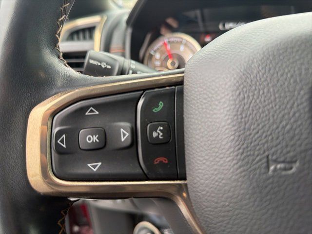ENGINE: 3.0L V6 TURBO DIESEL GEN 3 -inc: Secondary Active Grille Shutters 800 Amp Maintenance Free Battery EcoDiesel Badge Heavy Duty Engine Cooling 250 Amp Alternator GVWR: 7 200 lbs Dual Rear Exhaust w/Bright Tips Thermal Rear Axle,DELMONICO RED PEARLCOAT,3.92 REAR AXLE RATIO,QUICK ORDER PACKAGE 28K LONGHORN -inc: Engine: 3.0L V6 Turbo Diesel Gen 3 Transmission: 8-Speed Automatic (8HP75) (DFV),MONOTONE PAINT,RADIO: UCONNECT 5 NAV W/12.0 DISPLAY -inc: For More Info Call 800-643-2112 12 Touchscreen Display All Radio Equipped Vehicles All R1 High Radios,COLD WEATHER GROUP -inc: Engine Block Heater MOPAR Winter Front Grille Cover,BODY COLOR BUMPER GROUP -inc: Body Color Rear Bumper w/Step Pads Body Color Front Bumper,WHEELS: 20 X 9 ALUMINUM PAINTED/POLISHED (STD),GVWR: 7 200 LBS,BLACK/NEW SADDLE LEATHER TRIMMED BUCKET SEATS,TIRES: 275/55R20 OWL ALL SEASON,CHROME POWER-FOLD TRAILER TOW MIRRORS -inc: Mirror-Mounted Aux Reverse Lamps Mirror Clearance/Running Lights Trailer Tow Mirrors,TRAILER BRAKE CONTROL,TRANSMISSION: 8-SPEED AUTOMATIC (8HP75) (DFV),FRONT LICENSE PLATE BRACKET,ENGINE BLOCK HEATER,ANTI-SPIN DIFFERENTIAL REAR AXLE,Four Wheel Drive,Tow Hitch,Power Steering,ABS,4-Wheel Disc Brakes,Brake Assist,Lithium Ion Traction Battery,Aluminum Wheels,Tires - Front Performance,Tires - Rear Performance,Bed Liner,Conventional Spare Tire,Tow Hooks,Power Mirror(s),Integrated Turn Signal Mirrors,Power Folding Mirrors,Heated Mirrors,Rear Defrost,Privacy Glass,Intermittent Wipers,Variable Speed Intermittent Wipers,Rain Sensing Wipers,Running Boards/Side Steps,Power Door Locks,Fog Lamps,Daytime Running Lights,Automatic Headlights,LED Headlights,Automatic Highbeams,AM/FM Stereo,Navigation System,Satellite Radio,Bluetooth Connection,HD Radio,Requires Subscription,Premium Sound System,MP3 Capability,Steering Wheel Audio Controls,Auxiliary Audio Input,Premium Sound System,Satellite Radio,HD Radio,Requires Subscription,Satellite Radio,HD Radio,Requires Subscription,Satellite Radio,Requires Subscription,Heated Front Seat(s),Cooled Front Seat(s),Heated Front Seat(s),Seat Memory,Power Driver Seat,Power Passenger Seat,Rear Bench Seat,Adjustable Steering Wheel,Trip Computer,Power Windows,Driver Adjustable Lumbar,Passenger Adjustable Lumbar,Pass-Through Rear Seat,Leather Steering Wheel,Heated Steering Wheel,Keyless Entry,Power Door Locks,Keyless Entry,Power Door Locks,Keyless Start,Universal Garage Door Opener,Cruise Control,Climate Control,Multi-Zone A/C,A/C,Woodgrain Interior Trim,Leather Seats,Bucket Seats,Auto-Dimming Rearview Mirror,Driver Vanity Mirror,Passenger Vanity Mirror,Driver Illuminated Vanity Mirror,Passenger Illuminated Visor Mirror,Floor Mats,Mirror Memory,Remote Engine Start,Keyless Start,Remote Engine Start,Smart Device Integration,Requires Subscription,Navigation System,Smart Device Integration,Smart Device Integration,WiFi Hotspot,Mirror Memory,Bluetooth Connection,Power Windows,Power Door Locks,Adjustable Pedals,Trip Computer,Power Driver Seat,Mirror Memory,Heated Rear Seat(s),Immobilizer,Security System,Traction Control,Stability Control,Traction Control,Front Side Air Bag,Front Collision Mitigation,Rear Parking Aid,Tire Pressure Monitor,Driver Air Bag,Passenger Air Bag,Front Head Air Bag,Rear Head Air Bag,Passenger Air Bag Sensor,Child Safety Locks,Back-Up Camera
