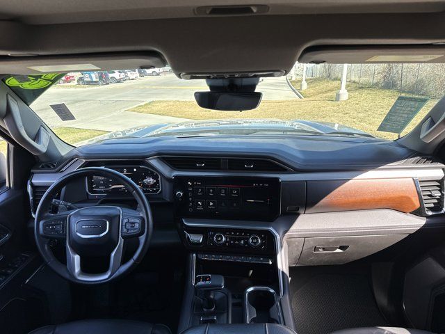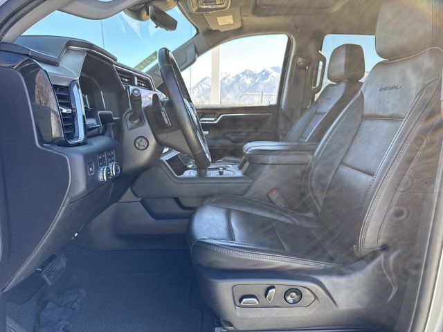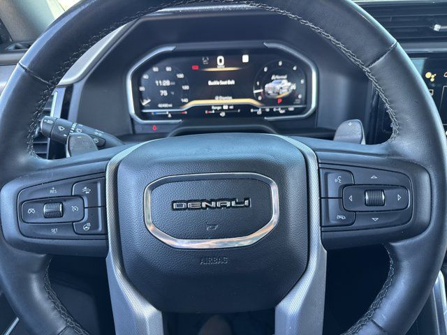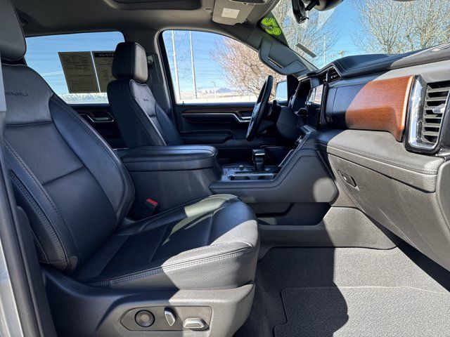 Navigation System,Denali Reserve Package,Preferred Equipment Group 5SA,Technology Package,Trailering Package,2 USB Ports,7 Speakers,AM/FM radio,Premium audio system: GMC Infotainment System,Premium Bose 7-Speaker Sound System,Radio data system,Radio: Premium GMC Infotainment Audio System,SiriusXM w/360L,Steering Wheel Audio Controls,Air Conditioning,Automatic temperature control,Electric Rear-Window Defogger,Front dual zone A/C,Rear window defroster,120-Volt Bed Mounted Power Outlet,120-Volt Instrument Panel Power Outlet,Driver Memory,Memory seat,Power driver seat,Power Front Passenger Windows w/Express Up/Down,Power Front Windows w/Driver Express Up/Down,Power Rear Windows w/Express Down,Power steering,Power windows,Push Button Start,Remote keyless entry,Remote Vehicle Starter System,Steering wheel mounted audio controls,Universal Home Remote,Adaptive suspension,Auto-Locking Rear Differential,Power Rake & Telescoping Steering Column,Speed-sensing steering,Traction control,4-Wheel Disc Brakes,ABS brakes,Dual front impact airbags,Dual front side impact airbags,Electrical Steering Column Lock,Emergency communication system: OnStar and GMC connected services capable,Front anti-roll bar,Front wheel independent suspension,Keyless Open & Start,Low tire pressure warning,Not Equipped w/Steering Column Lock,Occupant sensing airbag,Overhead airbag,Power Door Locks,Power Sunroof,Brake assist,Electronic Stability Control,Hill Descent Control,Auto High-beam Headlights,Delay-off headlights,Front fog lights,Fully automatic headlights,Perimeter Lighting,Panic alarm,Security system,Theft Deterrent System (Unauthorized Entry),Adaptive Cruise Control,Speed control,170 Amp Alternator,Auxiliary External Transmission Oil Cooler,Heavy-Duty Air Filter,Auto-dimming door mirrors,Bumpers: body-color,Chrome Header w/Signature Denali Chrome Grille,Chrome Wheel To Wheel Assist Steps,Denali Premium Suspension w/Adaptive Ride Control,Front License Plate Kit,GMC MultiPro Power Steps,Heated door mirrors,IntelliBeam Automatic High Beam On/Off,LED Cargo Area Lighting,Power door mirrors,Rear step bumper,Rear Wheelhouse Liners,Spray-On Pickup Bed Liner w/Denali Logo,2 Charge/Data USB Ports Inside Center Console,2 Type-C Charge-Only Rear USB Ports,Apple CarPlay/Android Auto,Auto-dimming Rear-View mirror,Automatic Emergency Braking,Bed View Camera,Buckle to Drive,Color-Keyed Carpeting Floor Covering,Compass,Driver door bin,Driver vanity mirror,Floor-Mounted Center Console,Following Distance Indicator,Forward Collision Alert,Front Pedestrian Braking,Front reading lights,Garage door transmitter,Genuine wood console insert,Genuine wood dashboard insert,Genuine wood door panel insert,GMC Connected Access Capable,HD Surround Vision,Heated steering wheel,Illuminated entry,Lane Keep Assist w/Lane Departure Warning,Multicolor 15 inch Diagonal Head-Up Display,OnStar & GMC Connected Services Capable,Outside temperature display,Overhead console,Passenger vanity mirror,Rear Camera Mirror,Rear Cross Traffic Braking,Rear Pedestrian Detection,Rear reading lights,Rear seat center armrest,Safety Alert Seat,Tachometer,Telescoping steering wheel,Tilt steering wheel,Trailer Camera Provisions,Trailer Side Blind Zone Alert,Trip computer,Ultrasonic Front & Rear Park Assist,Voltmeter,Wi-Fi Hotspot Capable,Wireless Charging,Wireless Phone Projection,10-Way Power Driver Seat Adjuster w/Lumbar,10-Way Power Passenger Seat Adjuster w/Lumbar,Forge Perforated Leather Seat Trim,Front Bucket Seats,Front Center Armrest,Heated 2nd Row Outboard Seats,Heated Driver & Front Outboard Passenger Seating,Heated front seats,Heated rear seats,Power passenger seat,Split folding rear seat,Ventilated Driver & Front Passenger Seats,Ventilated front seats,Passenger door bin,Chrome Recovery Hooks,Hitch Guidance,Hitch Guidance w/Hitch View,In-Vehicle Trailering App,Integrated Trailer Brake Controller,Trailer Tire Pressure Monitor System,Alloy wheels,Wheel Locks (Set of 4) (LPO),Wheels: 20 inch x 9 inch Multi-Dimensional Polished Alum,Wheels: 22 inch x 9 inch Painted Aluminum,Deep-Tinted Glass,Front Rainsensing Wipers,Power Sliding Rear Window w/Rear Defogger,Rain sensing wipers,Variably intermittent wipers,3.23 Rear Axle Ratio,1 Owner,Accident Free,ADAPTIVE CRUISE CONTROL,REAR CAMERA MIRROR INSIDE REARVIEW AUTO-DIMMING with full camera display,TRAILER TIRE PRESSURE MONITOR SENSORS includes set of 4 sensors.,TECHNOLOGY PACKAGE includes (DRZ) Rear Camera Mirror and (UV6) Multicolor 15 Diagonal Head-Up Display (Includes (KSG) Adaptive Cruise Control.,REAR AXLE 3.23 RATIO,LICENSE PLATE KIT FRONT,TRANSMISSION 10-SPEED AUTOMATIC WITH ELECTRONIC PRECISION SHIFT ELECTRONICALLY CONTROLLED with overdrive and tow/haul mode and steering column paddle shifters. Includes Cruise Grade Braking and Powertrain Grade Braking (STD),AUDIO SYSTEM 13.4 DIAGONAL PREMIUM GMC INFOTAINMENT SYSTEM WITH GOOGLE BUILT IN APPS SUCH AS NAVIGATION AND VOICE ASSISTANCE INCLUDES COLOR TOUCH-SCREEN MULTI-TOUCH DISPLAY AM/FM STEREO Bluetooth streaming audio for music and most phones; featuring wireless Android Auto and Apple CarPlay capability for compatible phones (STD),WHEELS 22 X 9 (55.9 CM X 22.9 CM) PAINTED ALUMINUM WHEEL with Machining and Bright Chrome Inserts Includes (SFE) Wheel locks LPO.),GMC MULTIPRO POWER STEPS REARWARD ARTICULATING (providing bed access). Foot activated running side board.,DENALI PREFERRED EQUIPMENT GROUP includes standard equipment,DENALI RESERVE PACKAGE includes (CWM) Technology Package (CF5) sunroof (BRS) GMC MultiPro Power Steps and (SH0) 22 Painted Aluminum Wheel with Machining and Bright Chrome Inserts,SUNROOF POWER,SEATS FRONT BUCKET with center console (STD),STERLING METALLIC,GVWR 7100 LBS. (3221 KG) (STD),JET BLACK FORGE PERFORATED LEATHER SEAT TRIM,NOT EQUIPPED WITH STEERING COLUMN LOCK SEE DEALER FOR DETAILS (Beginning with start of production vehicles will be forced to include (R7N) Not Equipped with Steering Column Lock which removes Steering Column Lock. See dealer for 