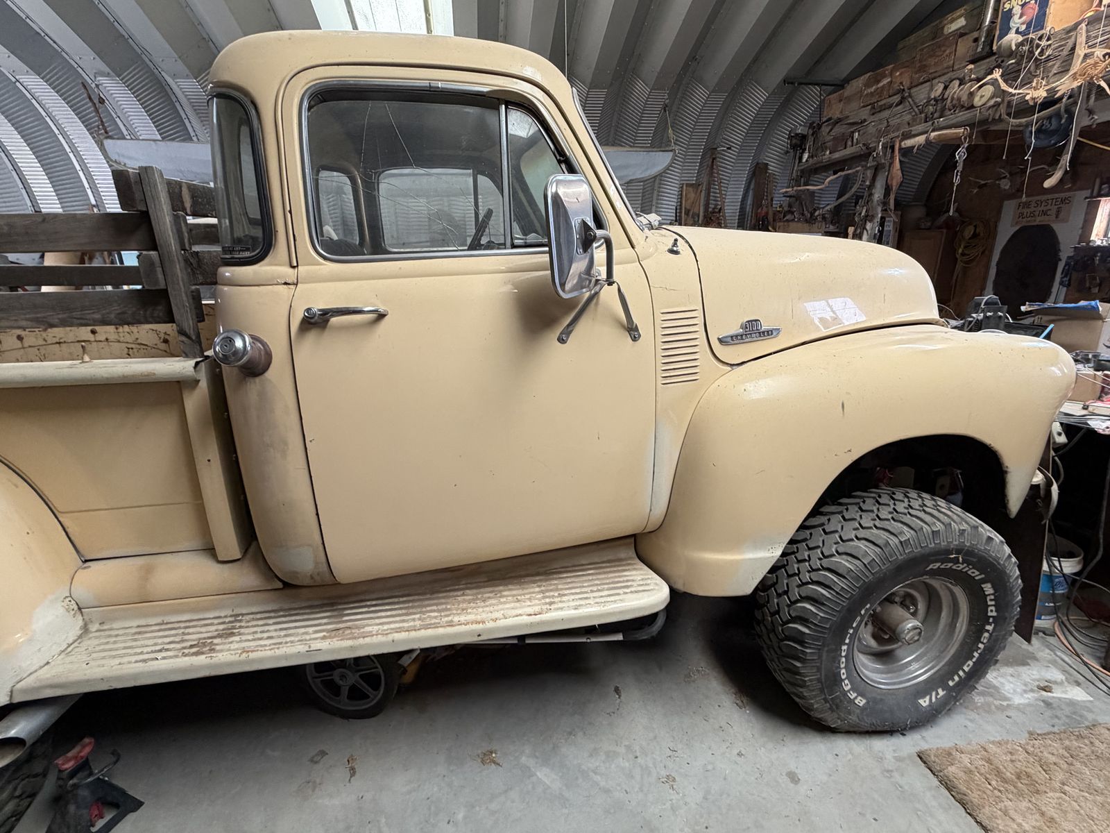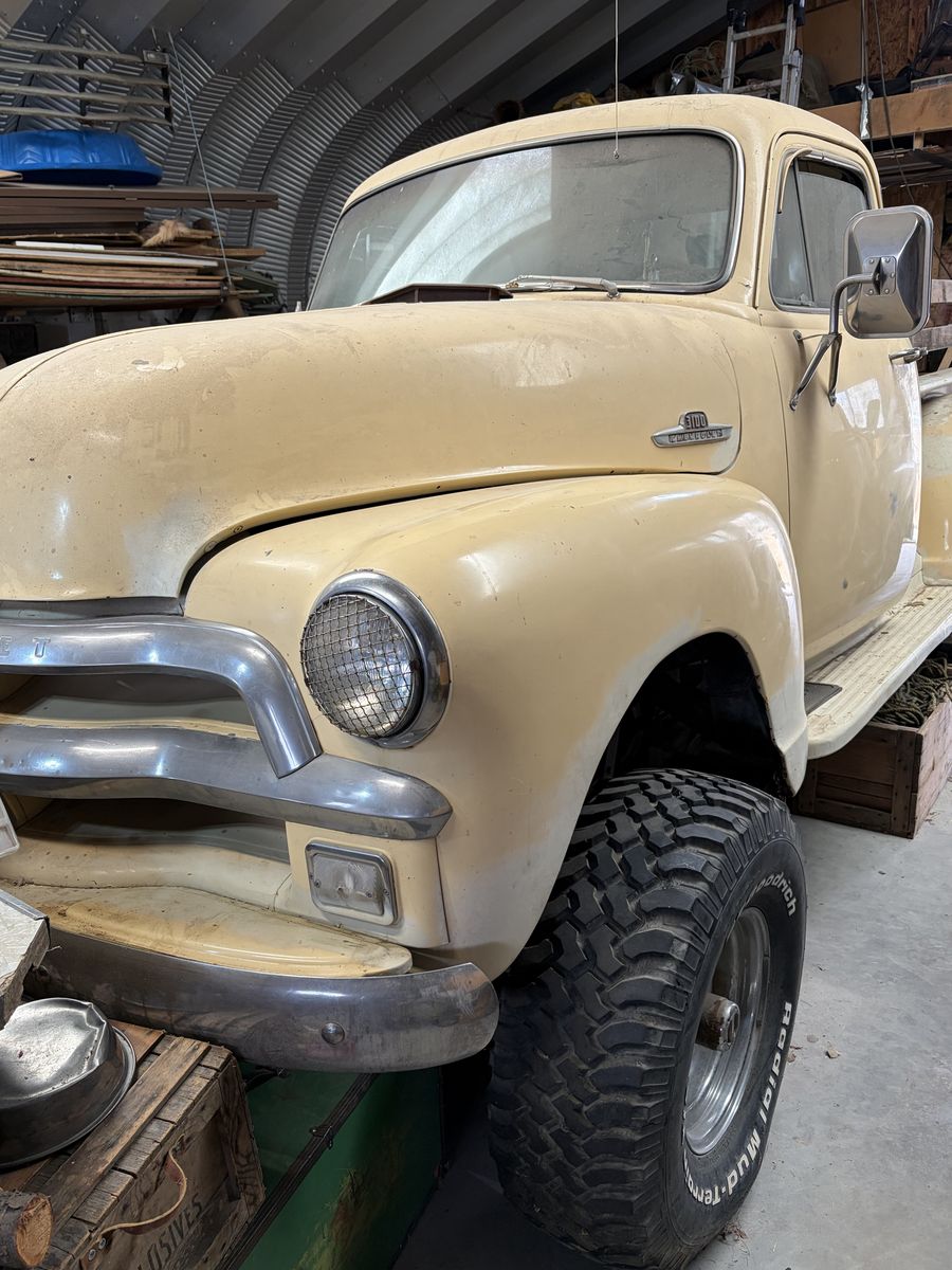 1955 Chevy body sitting on a 1978 Chevy Blazer. This is a “garage find” truck. This has been stored in my father’s garage for over 20 years. He drove this beast in the 80’s and 90’s until he decided to start fixing it up and never finished it.