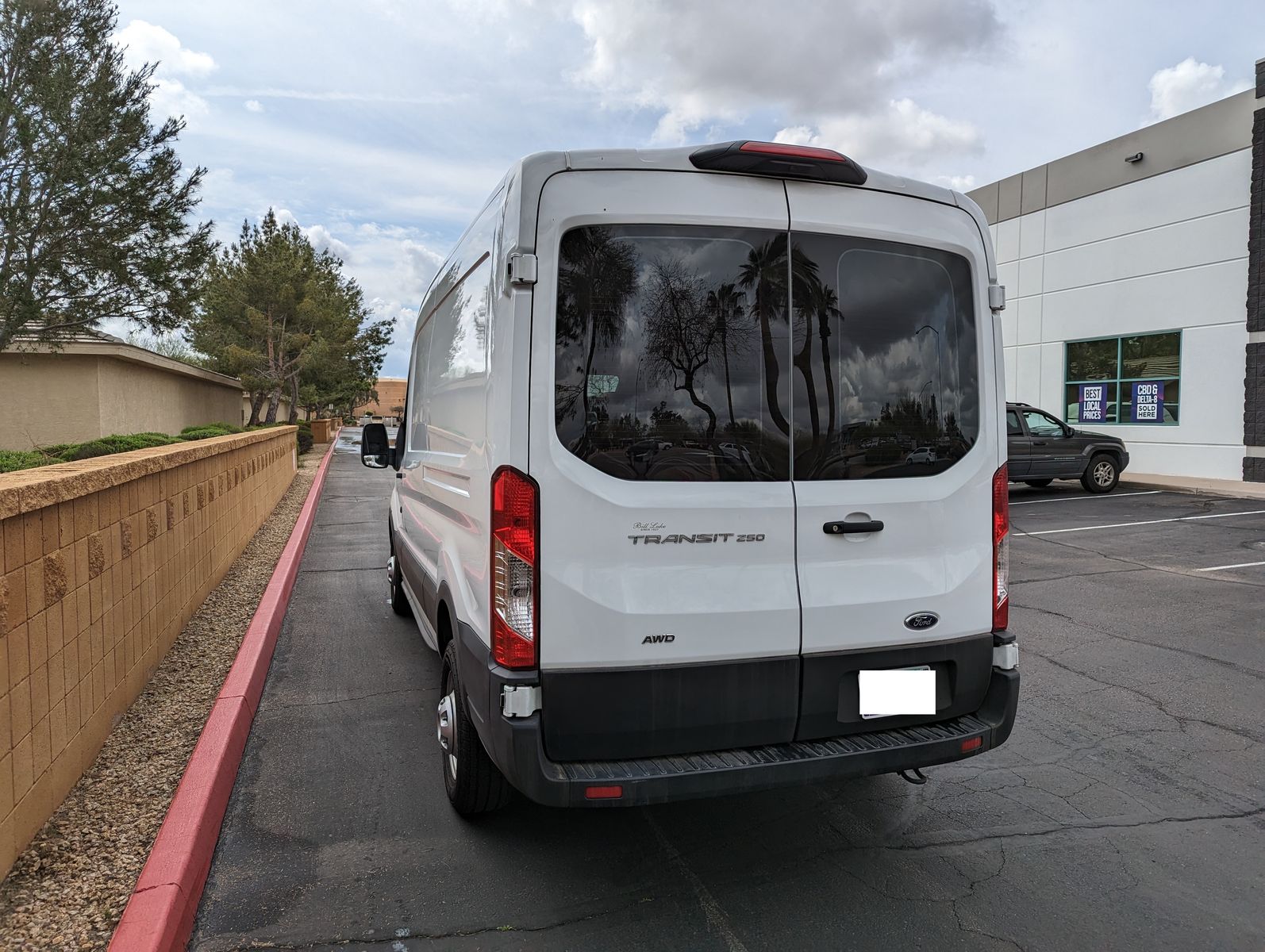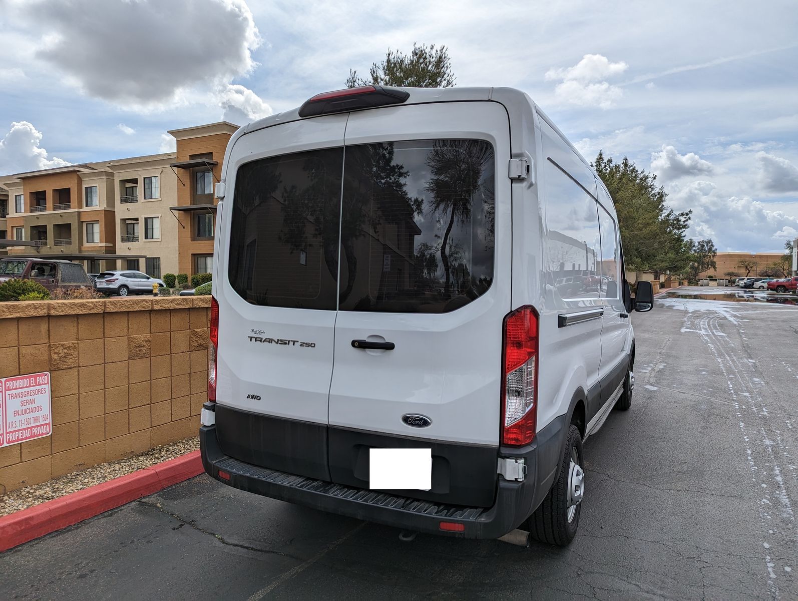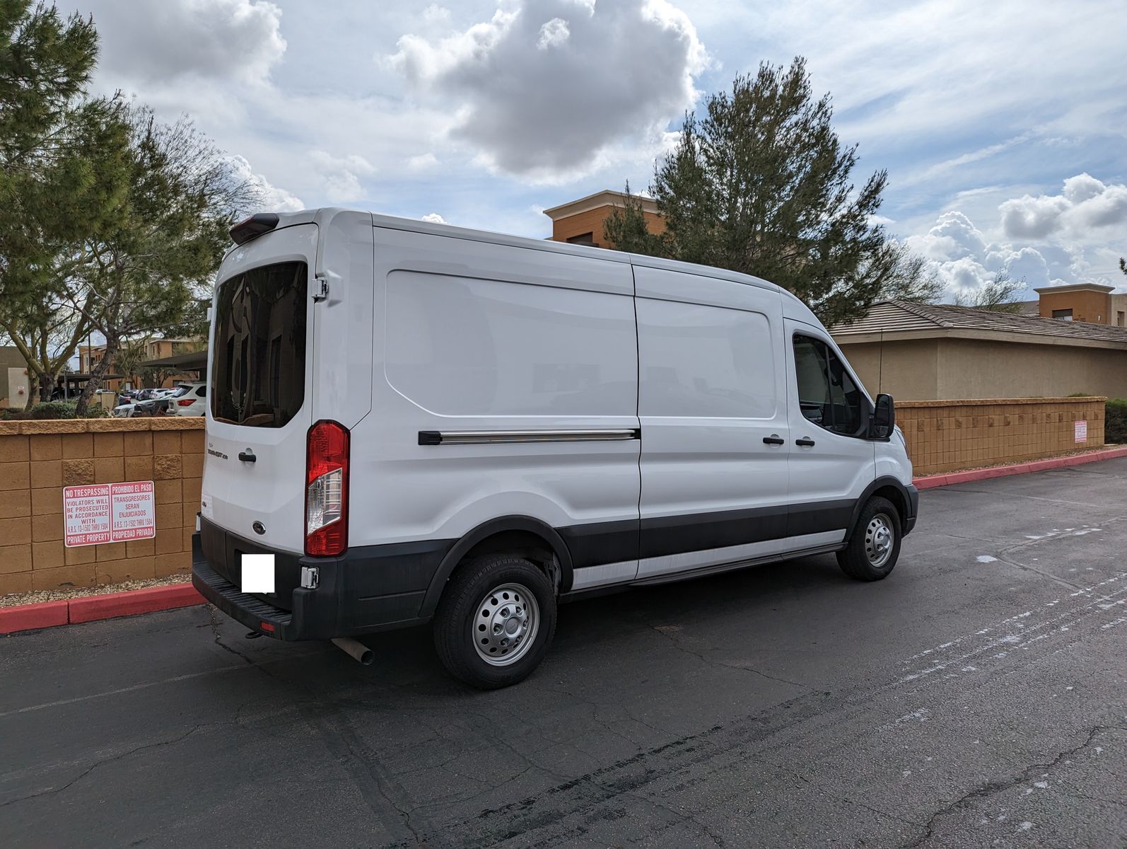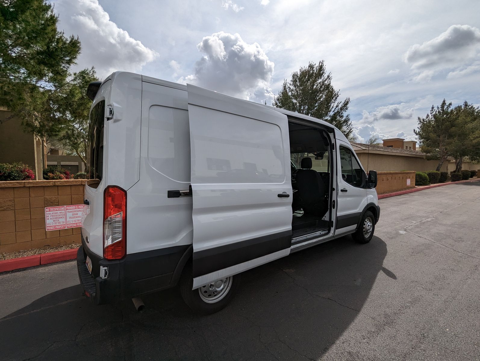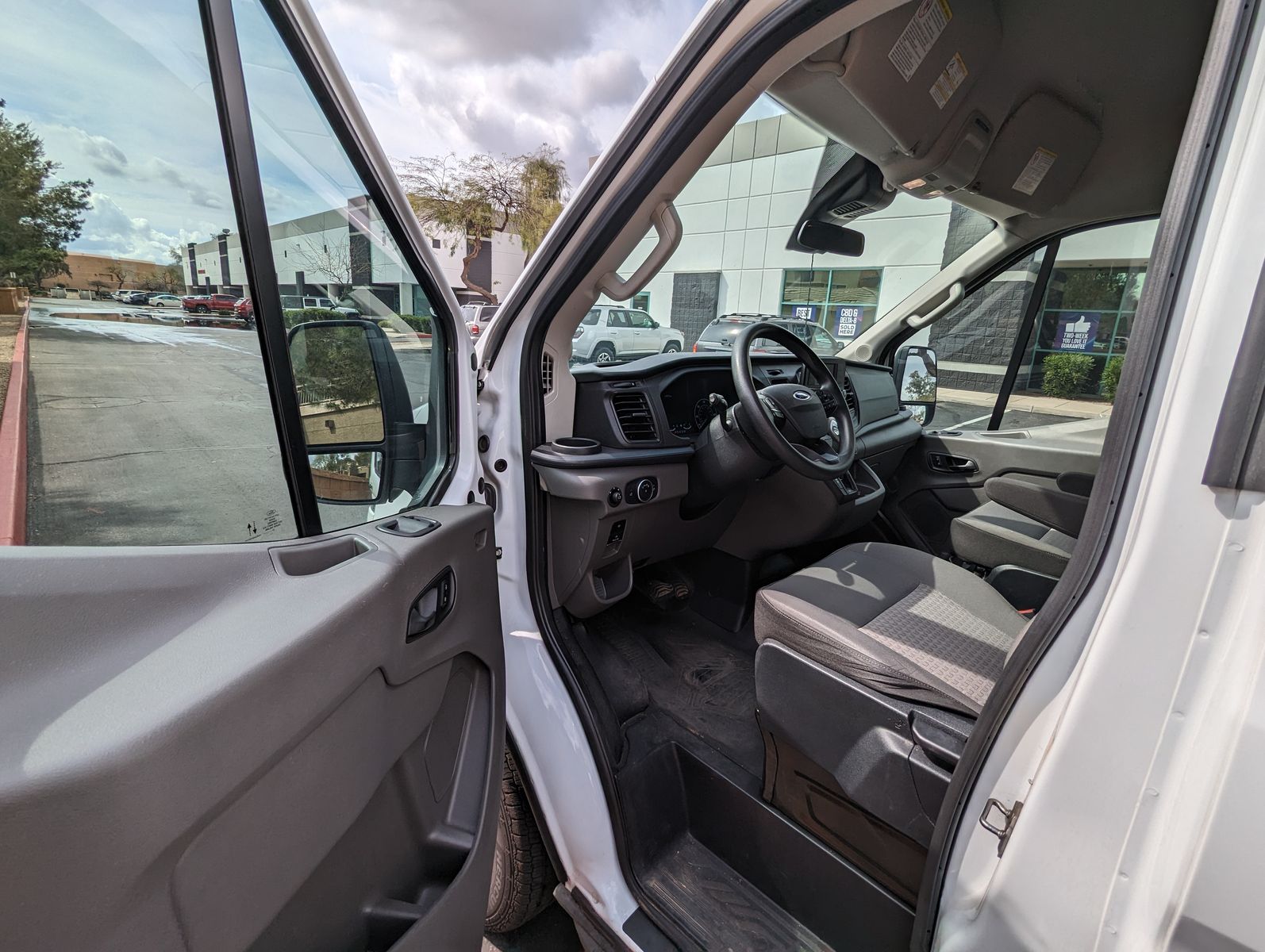 There is a small dent on the passenger side that is not very noticeable from a distance and would be an easy fix if desired. It would also be largely hidden if the van is wrapped for business branding.
