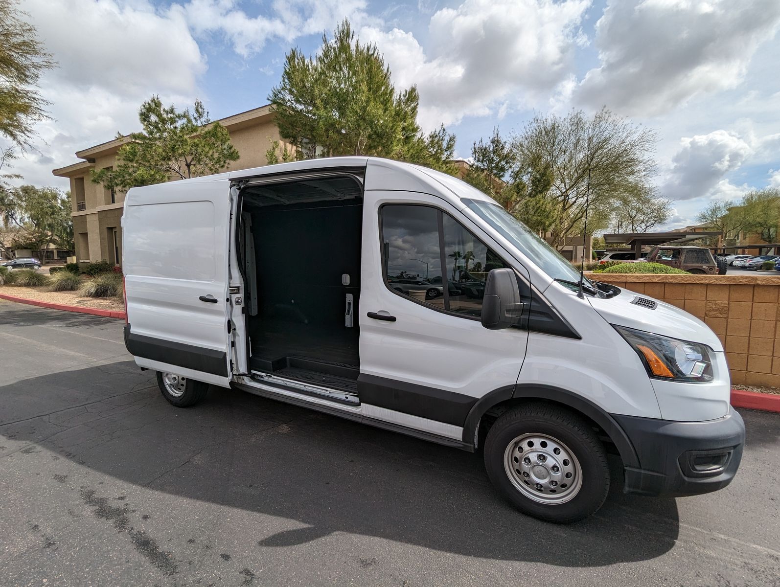 This 2021 Ford Transit 250 High Roof cargo van is a dependable and well-maintained vehicle ready for work or business use. The high roof configuration allows for comfortable standing room in the cargo area, making it ideal for contractors, delivery services, mobile businesses, or camper conversions.