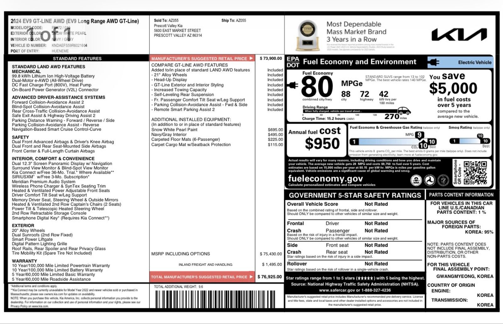 Clean Title 2024 Kia EV9 GT-Line AWD-Fully Loaded