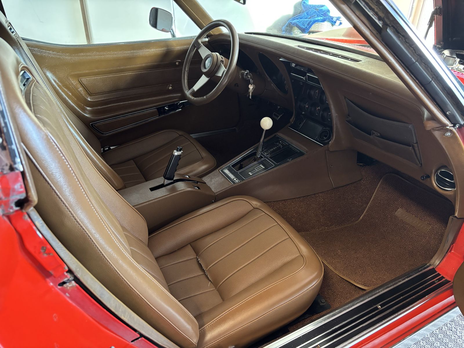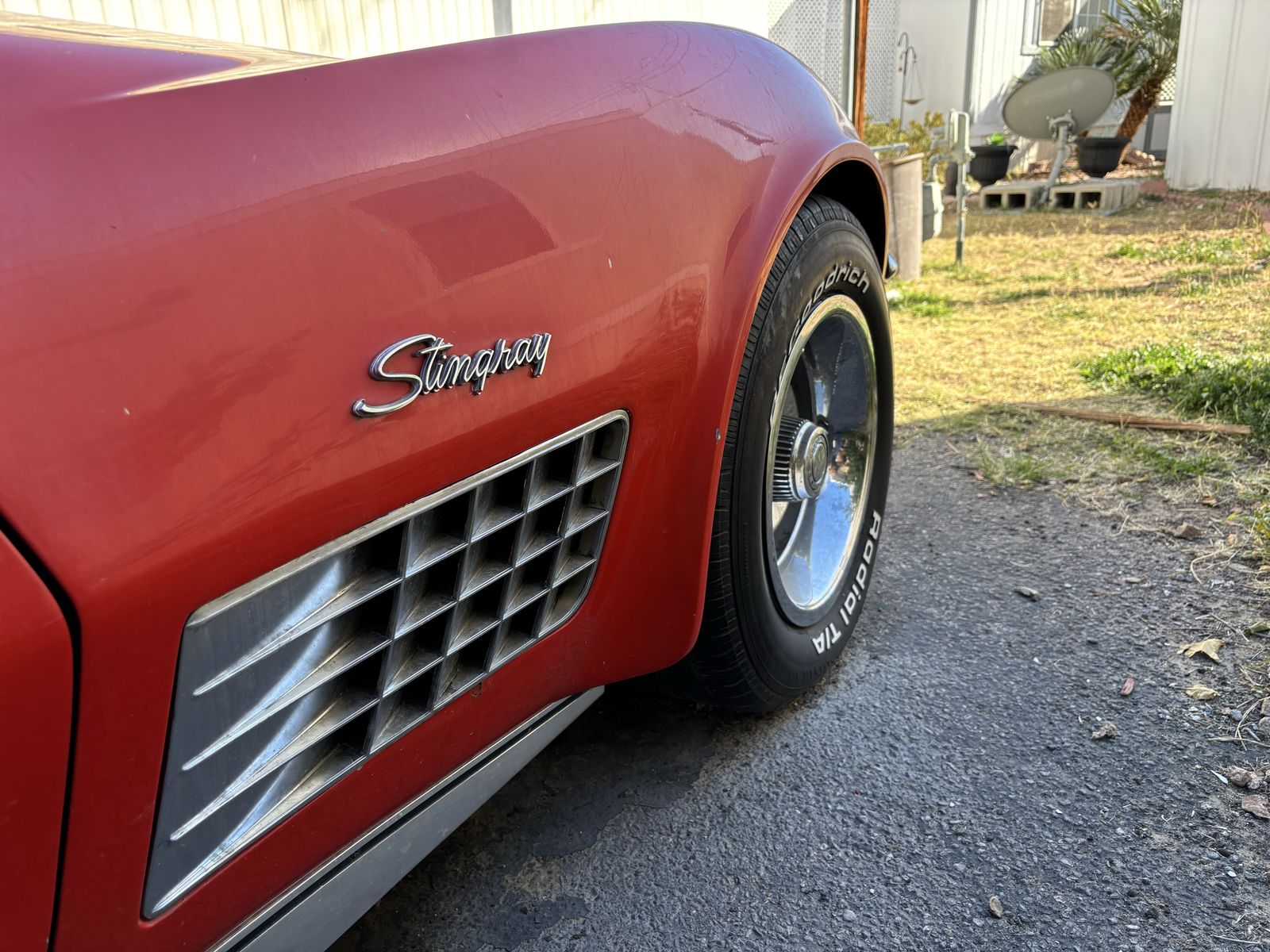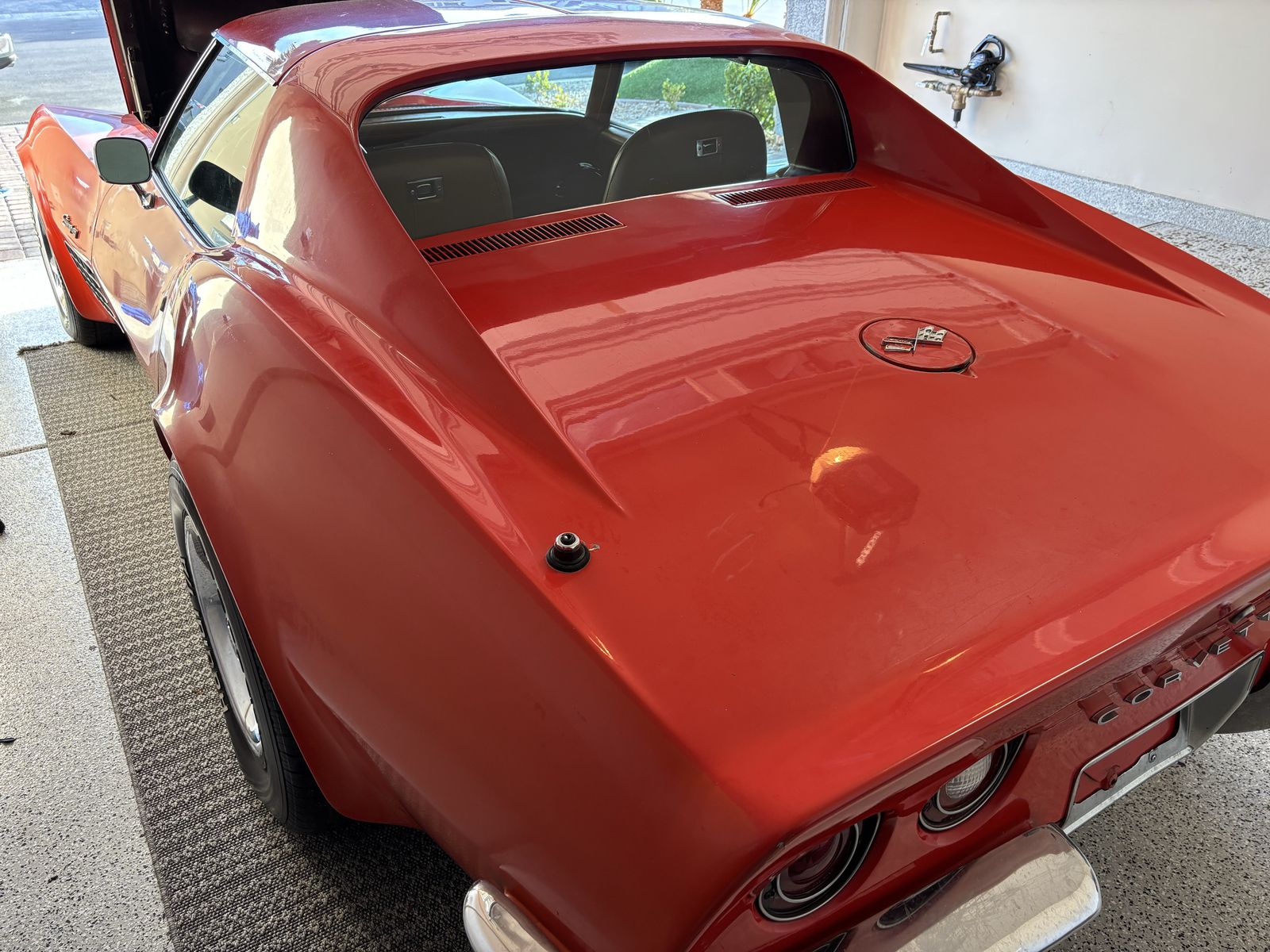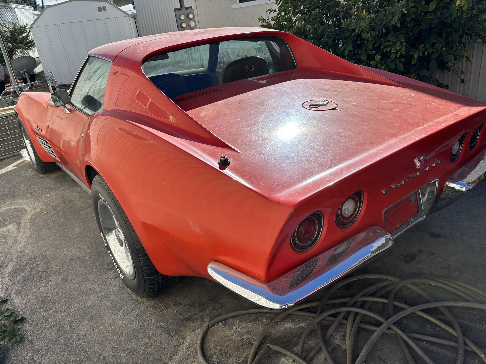 1972 corvette stingray. Factory red car with T-tops. Tan leather interior. original 454ci V8 paired with the original M-21 muncie four speed manual transmission. 411 rear end. A/C car. 4 wheel disc brakes. Power steering. Power windows. Excellent specimen of what it is. What you see is what you get no BS nothing to hide. No rust in the birdcage. No accidents. Few very minor stress cracks otherwise solid car. Now for the cons: needs tires. ( 7 0 2 ) 8 1 7 - 8 8 2 1 - Jake
