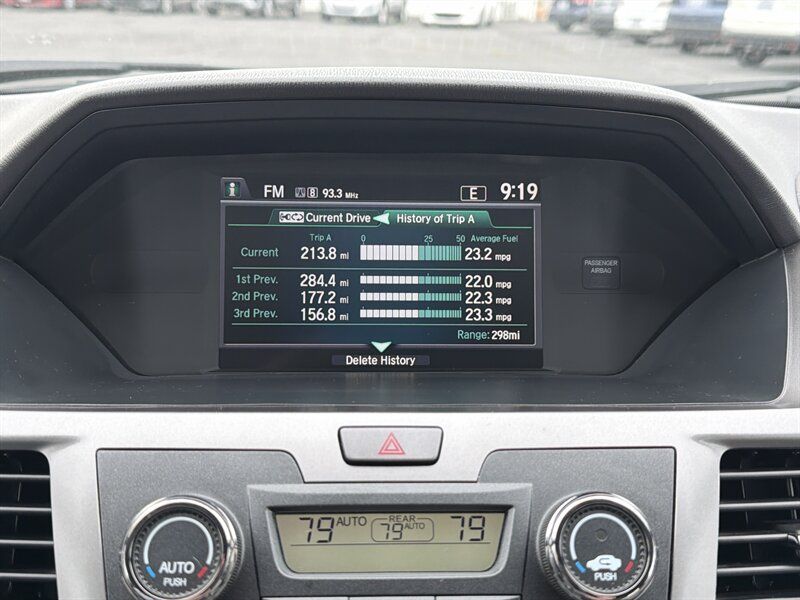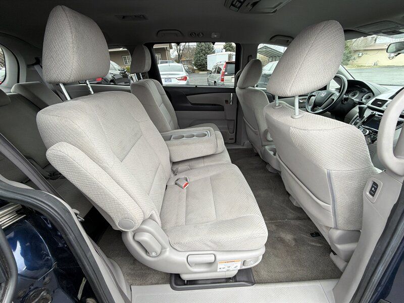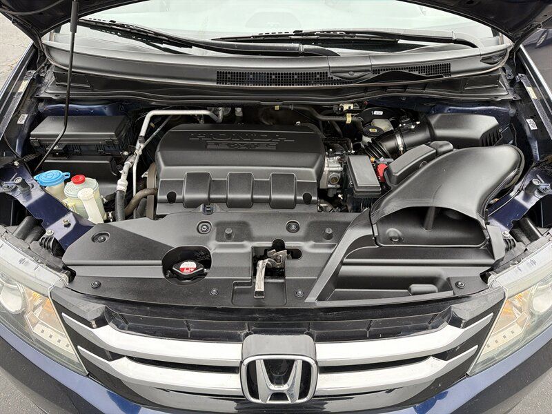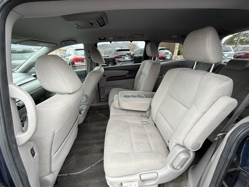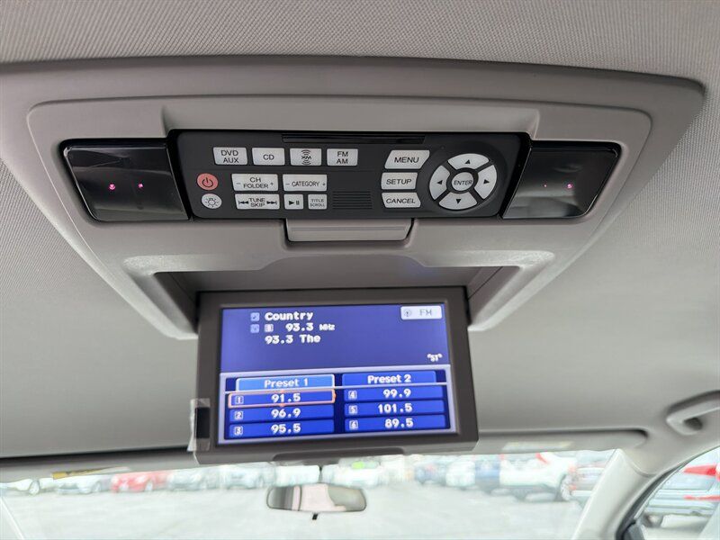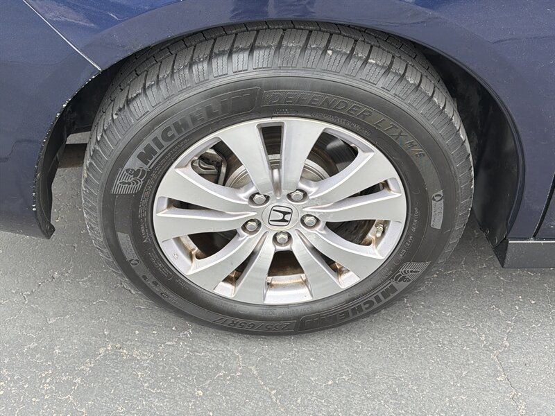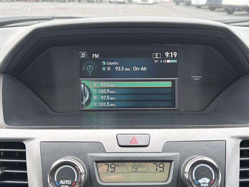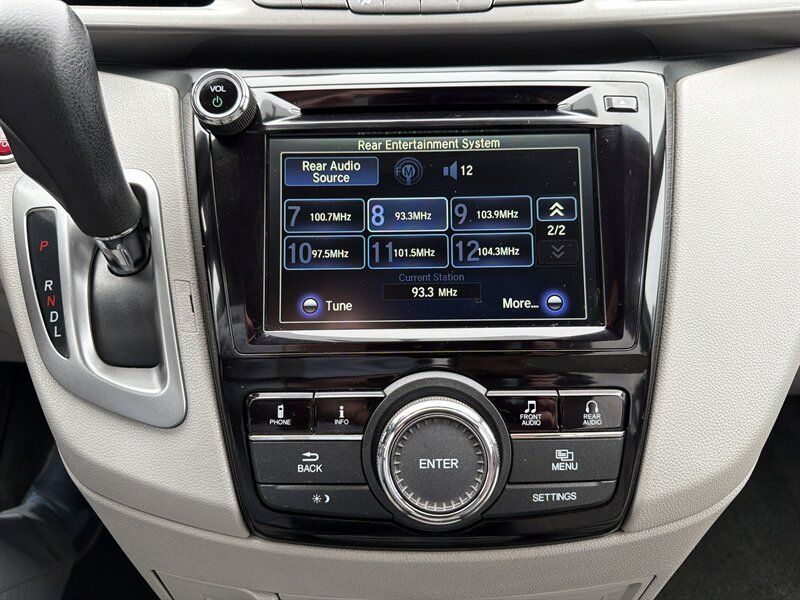 INSTALLED FEATURES: Air filtration, Front air conditioning: automatic climate control, Front air conditioning zones: dual, Humidity/dewpoint sensors, Rear air conditioning: automatic climate control / independently controlled, Rear air conditioning zones: single, Airbag deactivation: occupant sensing passenger, Front airbags: dual, Side airbags: front, Side curtain airbags: front / rear / third row, Antenna type: diversity / element, Auxiliary audio input: Bluetooth / jack / USB, Headphones: wireless, In-Dash CD: MP3 Playback / single disc, Internet radio app: AHA / Pandora, Radio: AM/FM / touch screen display, Radio data system, Rear audio: separate, Remote control: audio / video, Satellite radio: SiriusXM, Speed sensitive volume control, Subwoofer: 1, Total speakers: 6, Watts: 270, ABS: 4-wheel, Braking assist, Electronic brakeforce distribution, Front brake type: ventilated disc, Power brakes, Rear brake type: disc, Armrests: dual front / rear folding, Dash trim: simulated alloy, Floor mat material: carpet, Floor material: carpet, Floor mats: front / rear / third row, Shift knob trim: urethane, Steering wheel trim: urethane, Assist handle: front / rear, Cargo area light, Center console: front console with storage, Conversation mirror, Courtesy lights: door, Cruise control, Cupholders: front / rear / third row, Easy entry: manual rear seat, Multi-function remote: proximity entry system, One-touch windows: 2, Overhead console: front, Power outlet(s): 115V rear / 12V cargo area / 12V front, Power steering: variable/speed-proportional, Power windows: lockout button, Push-button start, Reading lights: front / rear / third row, Rearview mirror: manual day/night, Steering wheel: tilt and telescopic, Steering wheel mounted controls: audio / cruise control / multi-function / phone, Storage: accessory hook / cargo tie-down anchors and hooks / door pockets / front seatback / grocery bag holder / in dash / in floor / rear seatback / sunglasses holder, Sunshade: side window, Universal remote transmitter: Homelink - garage door opener, Vacuum, Vanity mirrors: dual illuminating, Door handle color: chrome, Front bumper color: body-color, Grille color: black surround / chrome, Mirror color: body-color, Rear bumper color: body-color, Rear spoiler: roofline, Rear spoiler color: black, Rear trunk/liftgate: liftgate, Side door type: dual power sliding, Window trim: chrome, Infotainment: HondaLink, Infotainment screen size: 7 in. and 8 in. (dual), Video monitor, Video monitor location: rear, Video system: auxiliary audio/video input / DVD player, Clock, Compass, Digital odometer, External temperature display, Fuel economy display: MPG / range, Gauge: tachometer, Multi-function display, Trip odometer, Warnings and reminders: low battery / low fuel level / maintenance due, Daytime running lights, Headlights: auto on/off / halogen / wiper activated, Taillights: LED, Side mirror adjustments: manual folding / power, Side mirrors: heated, Cylinder deactivation, OEM roof height: undefined, Active head restraints: dual front, Blind spot safety: camera display, Camera system: rearview, Child safety door locks, Child seat anchors: LATCH system, Crumple zones: front, Rearview monitor: in dash, Emergency locking retractors: front / rear, Front seatbelts: 3-point, Rear seatbelts: 3-point, Seatbelt force limiters: front, Seatbelt pretensioners: front, Seatbelt warning sensor: front, Third row seatbelts: 3-point, Driver seat power adjustments: 10 / height / lumbar / reclining, Front headrests: 2 / adjustable, Front seat type: captains chairs, Passenger seat power adjustments: 4 / reclining, Rear headrests: 3 / adjustable, Rear seat folding: split, Rear seat manual adjustments: reclining, Rear seat type: folding removable center seat / removable captains chairs, Third row headrests: 3 / adjustable, Third row seat folding: flat / split, Third row seat type: 40-60 split bench, Upholstery: cloth, Anti-theft system: alarm / vehicle immobilizer, Power door locks: anti-lockout / auto-locking, Stability control, Traction control, Front shock type: gas, Front spring type: coil, Front stabilizer bar: diameter 25 mm, Front struts: MacPherson, Front suspension classification: independent, Front suspension type: lower control arms, Rear shock type: gas, Rear spring type: coil, Rear suspension classification: independent, Rear suspension type: trailing arms, Electronic messaging assistance: with read function, Wireless data link: Bluetooth, Spare tire mount location: inside, Spare tire size: temporary, Spare wheel type: steel, Tire Pressure Monitoring System, Wheels: aluminum alloy, Front wipers: variable intermittent, Liftgate window: fixed, Power windows, Rear privacy glass, Rear wiper: auto-on in reverse / intermittent / with washer, Window defogger: rear