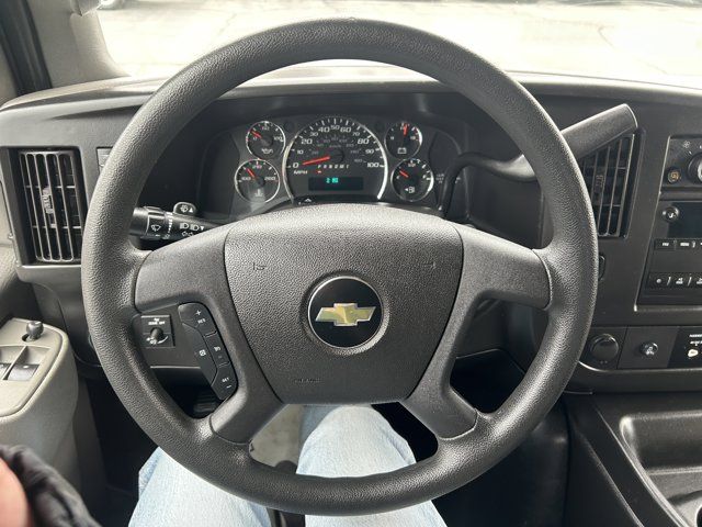 GVWR 9900 LBS. (4490 KG),SEATS FRONT BUCKET WITH CUSTOM CLOTH TRIM head restraints and inboard armrests Includes (BA3) console with swing-out storage bin.),REAR AXLE 3.42 RATIO,CRUISE CONTROL,TRAILERING PROVISIONS TRAILERING WIRE HARNESS ONLY,3500 VAN PREFERRED EQUIPMENT GROUP includes Standard Equipment,SUMMIT WHITE,TIRE SPARE LT245/75R16E ALL-SEASON BLACKWALL located at rear underbody of vehicle (STD),ALTERNATOR 150 AMPS,ENGINE 2.8L DURAMAX TURBO-DIESEL DI 4-CYLINDER (181 hp [135.0 kW] @ 3400 rpm 369 lb-ft of torque [498.2 N-m] @ 2000 rpm) includes exhaust brake that activates tow-haul mode,FUEL DIESEL B-20,MIRROR INSIDE REARVIEW includes Rear Vision Camera display,BODY STANDARD (STD),VISORS DRIVER AND FRONT PASSENGER vinyl in lieu of standard cloth,REMOTE KEYLESS ENTRY with 2 transmitters and remote panic button,MIRRORS OUTSIDE HEATED POWER-ADJUSTABLE BLACK MANUAL-FOLDING,TRANSMISSION 8-SPEED AUTOMATIC ELECTRONICALLY CONTROLLED with overdrive and tow/haul mode includes cruise grade braking and powertrain grade braking,SEATING ARRANGEMENT DRIVER AND FRONT PASSENGER HIGH-BACK BUCKETS with head restraints and vinyl or cloth trim (STD),PAINT SOLID,AUDIO SYSTEM FEATURE USB PORT,REAR VISION CAMERA display integrated into rearview mirror,TRAILERING EQUIPMENT HEAVY-DUTY 4-pin/7-pin sealed connector (Includes (UY7) trailering provisions trailering wire harness only.),AIR CONDITIONING SINGLE-ZONE MANUAL (STD),MEDIUM PEWTER CUSTOM CLOTH SEAT TRIM,CONVENIENCE PACKAGE TILT-WHEEL AND (K34) CRUISE CONTROL,CONSOLE ENGINE COVER WITH SWING-OUT STORAGE BIN,DOOR SLIDING PASSENGER-SIDE (Includes trim panel standard on sliding door only.,AUDIO SYSTEM AM/FM STEREO WITH MP3 PLAYER AND USB PORT includes seek-and-scan digital clock TheftLock random select auxiliary jack and 2 front door speakers,Power Door Locks,Power Windows,Rear Wheel Drive,Power Steering,ABS,4-Wheel Disc Brakes,Steel Wheels,Conventional Spare Tire,Tires - Front All-Season,Tires - Rear All-Season,Intermittent Wipers,AM/FM Stereo,MP3 Capability,Auxiliary Audio Input,Bucket Seats,Bucket Seats,A/C,Tire Pressure Monitor,Trip Computer,Power Door Locks,Power Windows,Immobilizer,Power Outlet,Power Outlet,Traction Control,Stability Control,Daytime Running Lights,Driver Air Bag,Passenger Air Bag,Passenger Air Bag On/Off Switch,Front Side Air Bag,Front Head Air Bag,Passenger Air Bag On/Off Switch,Tire Pressure Monitor