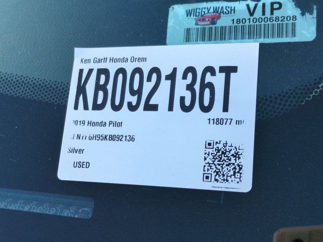 Ken Garff Honda is very proud to offer this gorgeous 2019 Honda Pilot Touring in Lunar Silver Metallic.CLEAN CARFAX, HondaTrue Used Certified, AWD, 10 Speakers, 3rd row seats: split-bench, 4-Wheel Disc Brakes, 4.334 Axle Ratio, A/V remote: CabinControl, ABS brakes, Air Conditioning, Alloy wheels, AM/FM radio: SiriusXM, Apple CarPlay/Android Auto, Auto High-beam Headlights, Auto-dimming Rear-View mirror, Automatic temperature control, Blind Spot Information (BSI) System warning, Brake assist, Bumpers: body-color, Compass, Delay-off headlights, Driver door bin, Driver vanity mirror, Dual front impact airbags, Dual front side impact airbags, Electronic Stability Control, Emergency communication system: HondaLink, Exterior Parking Camera Rear, Forward collision: Collision Mitigation Braking System (CMBS) FCW mitigation, Four wheel independent suspension, Front anti-roll bar, Front Bucket Seats, Front Center Armrest, Front dual zone A/C, Front fog lights, Front reading lights, Fully automatic headlights, Garage door transmitter: HomeLink, Headphones, Heated door mirrors, Heated Front Bucket Seats, Heated front seats, Heated rear seats, Illuminated entry, Lane departure: Lane Keeping Assist System (LKAS) active, Leather-Trimmed Seats, Low tire pressure warning, Memory seat, Navigation system: Honda Satellite-Linked Navigation System, Occupant sensing airbag, Outside temperature display, Overhead airbag, Overhead console, Panic alarm, Passenger door bin, Passenger vanity mirror, Power door mirrors, Power driver seat, Power Liftgate, Power moonroof, Power passenger seat, Power steering, Power windows, Radio data system, Radio: AM/FM Premium Audio System, Rear air conditioning, Rear anti-roll bar, Rear reading lights, Rear seat center armrest, Rear window defroster, Rear window wiper, Reclining 3rd row seat, Remote keyless entry, Roof rack: rails only, Security system, Speed control, Speed-sensing steering, Speed-Sensitive Wipers, Split folding rear seat, Spoiler, Steering wheel mounted audio controls, Tachometer, Telescoping steering wheel, Tilt steering wheel, Traction control, Trip computer, Turn signal indicator mirrors, Variably intermittent wipers, Wheels: 20 Machine-Finished Alloy, AWD.Certified.HondaTrue Used Details: * Honda Care Roadside Assitance for 1 year/12,000 miles whichever comes first). Trip Interruption and Concierge Service for 1 year/12,000 miles (whichever occurs first) beginning at the expiration of the New Vehicle Limited Warranty, or from the date of sale of the vehicle if the New Vehicle Limited Warranty has expired at the time of sale. 2015 and newer models, Honda Roadside Assistance is available throughout the New Vehicle Limited Warranty period. One complimentary oil change within the first year of ownership. SiriusXM 90-Day free trial. * Vehicle History * Warranty Deductible: $0 * Roadside Assistance * Powertrain Limited Warranty: 5,000 Mile 100-days/5000 miles(whichever comes first) after new car warranty expires or from certified purchase date * Transferable Warranty * Limited Warranty: 5,000 Mile 100-days/5000 miles(whichever comes first) after new car warranty expires or from certified purchase date * 112 Point Inspection19/26 City/Highway MPGAwards: * ALG Residual Value Awards, Residual Value AwardsIn addition to transparent, no hassle pricing and upfront no hassle trade evaluation.....We provide an enjoyably brief and easy Sales Experience...Your Pace...Your Deal...No Exceptions!
