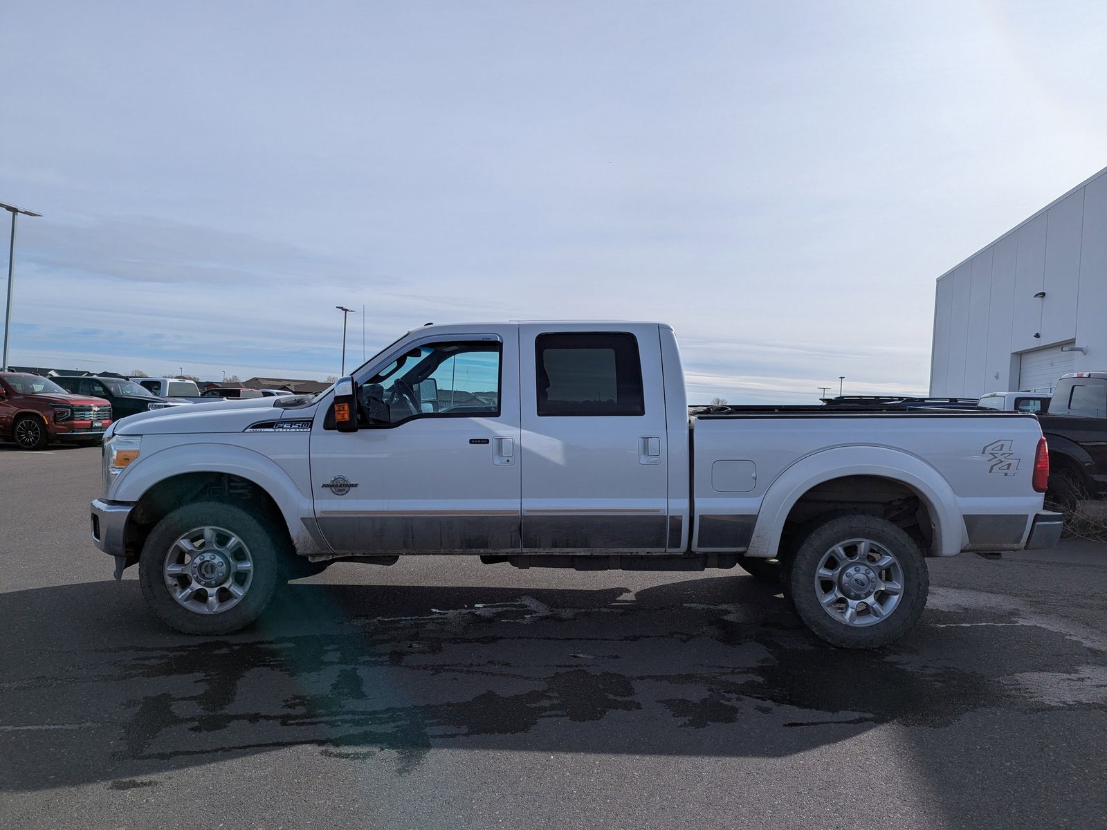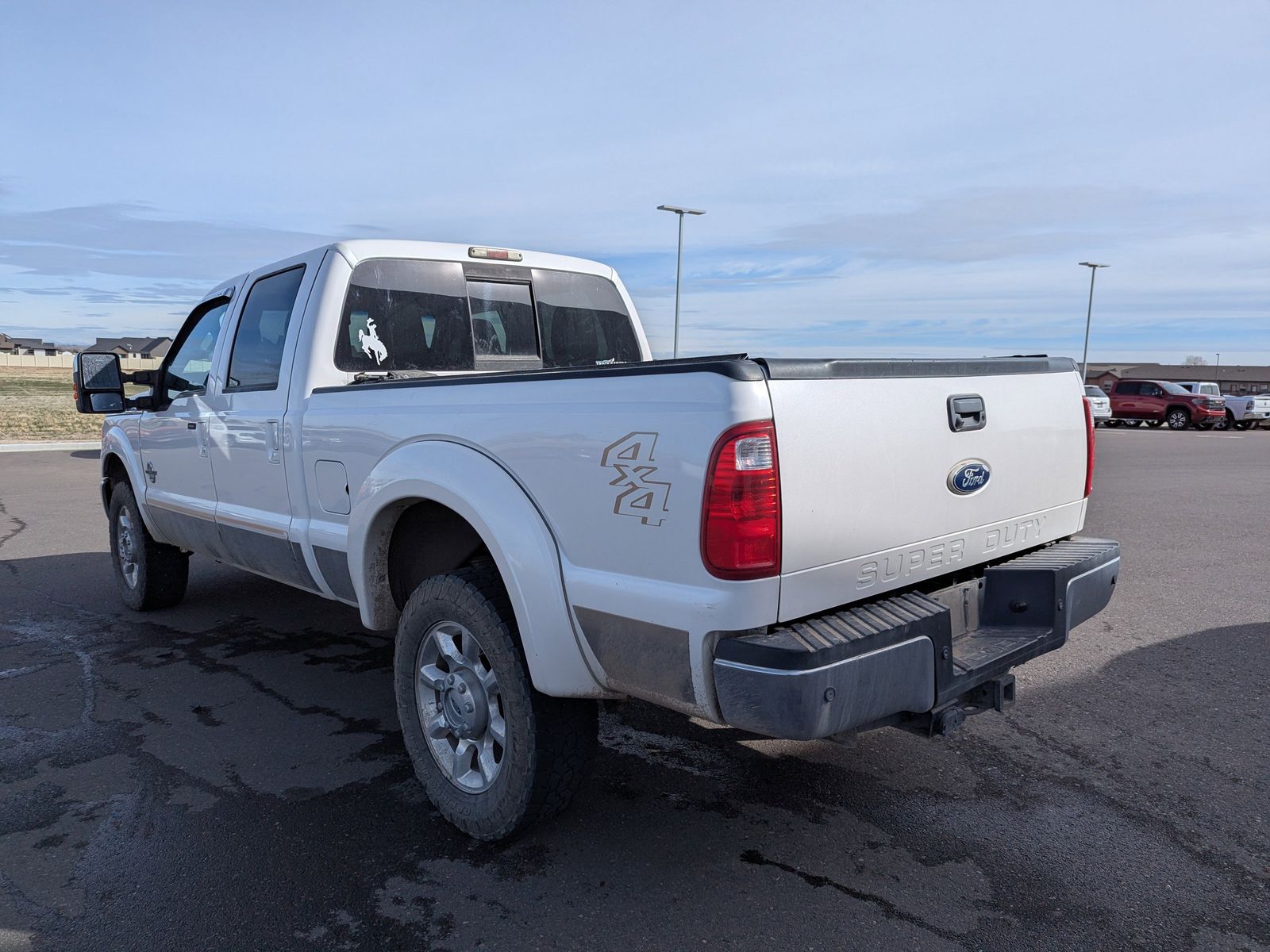 Power Stroke 6.7L V8 DI 32V OHV Turbodiesel, 4WD, 18 Bright Machined 6-Spoke Cast Alum Wheels, 3.73 Axle Ratio, 4-Wheel Disc Brakes, 9 Speakers, ABS brakes, Adjustable pedals, Air Conditioning, Alloy wheels, AM/FM radio: SIRIUS, Auto-dimming Rear-View mirror, Automatic temperature control, Brake assist, Bumpers: chrome, CD player, Compass, Delay-off headlights, Driver door bin, Driver vanity mirror, Dual front impact airbags, Dual front side impact airbags, Electronic Stability Control, Front anti-roll bar, Front Bucket Seats, Front Center Armrest, Front dual zone A/C, Front fog lights, Front reading lights, Fully automatic headlights, Heated door mirrors, Illuminated entry, Leather steering wheel, Low tire pressure warning, Outside temperature display, Overhead airbag, Overhead console, Panic alarm, Passenger door bin, Passenger vanity mirror, Power door mirrors, Power driver seat, Power passenger seat, Power steering, Power windows, Premium Leather Seating Surfaces 40/Console/40, Radio data system, Radio: Premium AM/FM Stereo w/Single CD/MP3 Player, Rear Parking Sensors, Rear reading lights, Rear seat center armrest, Rear step bumper, Remote keyless entry, Satellite Radio, Security system, Speed control, Split folding rear seat, Steering wheel mounted audio controls, Tachometer, Telescoping steering wheel, Tilt steering wheel, Traction control, Trip computer, Turn signal indicator mirrors, Variably intermittent wipers, Power Stroke 6.7L V8 DI 32V OHV Turbodiesel, 4WD.