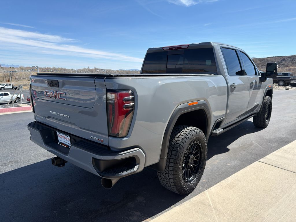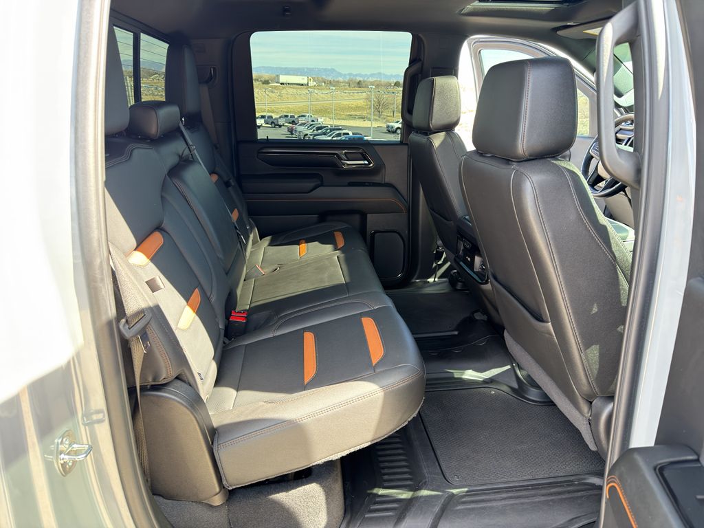 AT4 Premium Plus Package: Power Sunroof,Preferred Equipment Group 4SB: LED Cargo Area Lighting; Trailer Side Blind Zone Alert; SiriusXM with 360L; Remote Vehicle Starter System; Safety Alert Seat; Trailer Camera Provisions; Electric Rear-Window Defogger; Floor-Mounted Center Console; Gloss Black Header and Grille Insert Bars; Unauthorized Entry Theft-Deterrent System; Bed View Camera with Two Trailer Camera Provisions; Front Rain-Sensing Wipers; Sierra HD Pro Safety; Wireless Phone Projection; 2 USB Ports; Rear Cross Traffic Alert; 120-Volt Instrument Panel Power Outlet; 2 Charge/data USB Ports Inside Center Console; Heated Driver and Front Outboard Passenger Seats; Wireless Charging; X31 Off-Road Package; Premium Front Floor Liners with Removable Carpet Insert; Steering Wheel Audio Controls; Premium Rear Floor Liners with Removable Carpet Insert; 2 Charge-Only Rear USB Ports; 120-Volt Bed Mounted Power Outlet; Heated 2nd Row Outboard Seats; Power Front Windows with Passenger Express Up/down; Bose Premium 7-Speaker Sound System; 2-Speed Active Transfer Case; Deep-Tinted Glass; Spray-On Pickup Bedliner with AT4 Logo; Integrated Trailer Brake Controller; HD Surround Vision; Ventilated Driver and Front Passenger Seats; Manual Tilt-Wheel/telescoping Steering Column; Keyless Open and Start; ProGrade Trailering System; Push Button Start; Rear Wheelhouse Liners,Technology Package: Multicolor 15" Diagonal Head-Up Display; Auto-Dimming Inside Rearview Mirror with Camera,AT4 Preferred Package: Power Sliding Rear Window with Defogger; LED Smoked Amber Roof Marker Lamps; Universal Home Remote; Adaptive Cruise Control,Black Power-Retractable Assist Steps,Power Sunroof,Gooseneck/5th Wheel Prep Package,Thunderstorm Gray,LED Smoked Amber Roof Marker Lamps,Trailer Tire Pressure Monitor Sensors,Apple CarPlay/Android Auto smart device wireless mirroring,Forward Collision Alert with Automatic Braking,Front Pedestrian Braking,Wi-Fi Hotspot capable mobile hotspot internet access,HD Rear Vision Camera w/Hitch View rear mounted camera,Adaptive cruise control,Head-up display,Automatic Emergency Braking predictive brake assist system,Cruise control with steering wheel mounted controls,Ventilated driver and front passenger seats,Keyfob remote start,Heated steering wheel,Heated driver and front passenger seats,Heated rear seats,Leather front seat upholstery,Primary monitor touchscreen,Lane Departure Warning,Rear Cross-Traffic Alert collision warning,First-row sliding and tilting glass sunroof with express open/close activation sunshade,Driver seat power reclining, lumbar support, cushion tilt, fore/aft control and height adjustable control,AutoTrac part and full-time 4WD,Duramax 6.6L V-8 diesel direct injection, intercooled turbo, diesel, engine with 470HP,Duramax 6.6L V-8,Front wireless smart device charging,Google Built-In built-in virtual assistant,Teen Driver restricted driving mode/alerts,Keyless Open/Keyless Start with hands-free access and push button start,Keyfob window control,HD Surround Vision w/Hitch View aerial view camera,Smart device remote start,Push-button,GCW Alert weight capacity alert,Video-feed rearview mirror,Bluetooth wireless audio streaming,Hitch Guidance with Hitch View vehicle to trailer hitching assist,Gauge cluster display size: 12.30,Front mounted camera with washer,Right side camera,Pickup box camera,Left side camera,Trailer Side Blind Zone Alert blind spot warning,Following Distance Indicator,GMC ProGrade Trailering System trailer tire pressure sensors,GMC ProGrade Trailering System trailer light test,GMC ProGrade Trailering System trailer light malfunction warning,GMC ProGrade Trailering System trailer theft alarm,Dual-zone front climate control,Full gauge cluster screen,IntelliBeam auto high-beam headlights,Immobilizer,6.6L V8 Turbo Diesel Engine,GMC Pro Safety Plus Pkg.,Towing/Camper Pkg,X31 Off-Road Pkg.,Adaptive Cruise Control,Aluminum/Alloy Wheels,Bed Liner,Fixed Running Boards,Univ Garage Door Opener,V8; Turbo Diesel; 6.6 Liter,Automatic; 10-Spd Allison,4WD,X31 Off-Road Pkg,Blind Zone Alert,Hill Descent Control,Hill Start Assist,Traction Control,StabiliTrak,ABS (4-Wheel),Theft Deterrent System,Keyless Entry,Push Button Start,Air Conditioning,Power Windows,Power Door Locks,Cruise Control,Power Tailgate Release,Power Steering,Tilt & Telescoping Wheel,AM/FM Stereo,USB Port,SiriusXM Satellite,Navigation System,Bluetooth Wireless,OnStar,Premium GMC Infotainment System,Backup Camera,Surround View Camera,Dual Air Bags,Side Air Bags,F&R Head Curtain Air Bags,Forward Collision Alert,Lane Departure Warning System,Heated & Ventilated Seats,Dual Power Seats,Leather,Daytime Running Lights,LED Headlamps,Fog Lights,Towing Pkg,Alloy Wheels