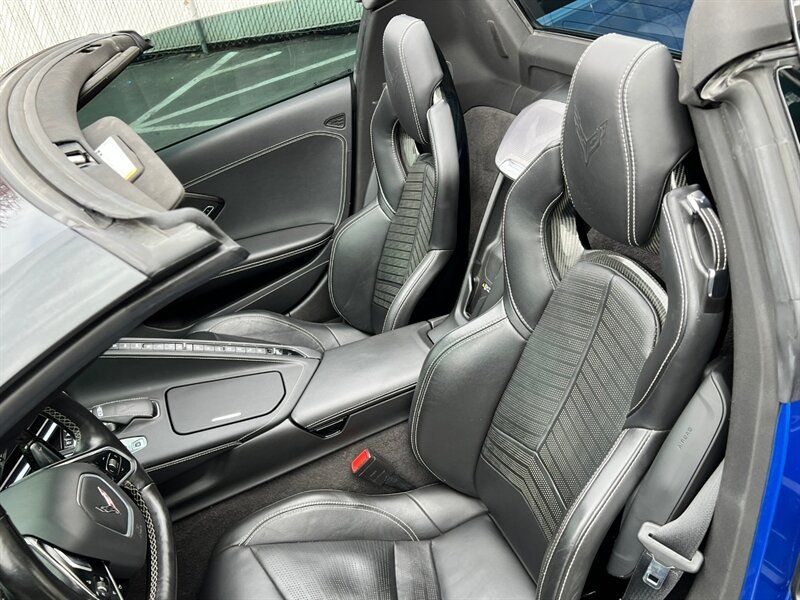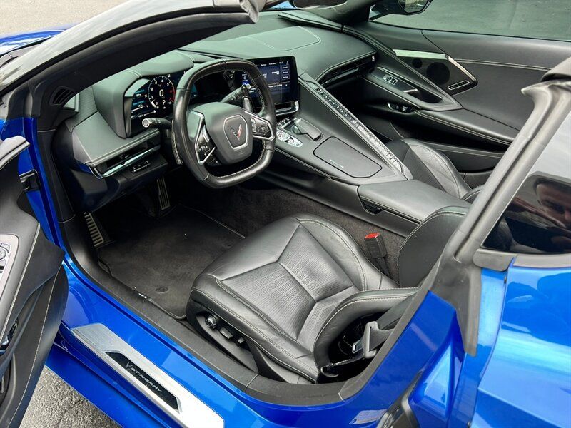 INSTALLED FEATURES: Air filtration, Front air conditioning: automatic climate control, Front air conditioning zones: dual, Airbag deactivation: occupant sensing passenger, Front airbags: dual, Side airbags: front, Antenna type: diversity / element, Auxiliary audio input: Bluetooth / iPod/iPhone / jack / USB, Digital sound processing, Premium brand: Bose, Radio: AM/FM / HD radio / touch screen display / voice operated, Radio data system, Satellite radio: SiriusXM, Speed sensitive volume control, Subwoofer: 2, Surround sound, Total speakers: 12, ABS: 4-wheel, Braking assist, Electronic brakeforce distribution, Electronic parking brake: auto off, Front brake type: ventilated disc, Painted brake calipers, Power brakes, Rear brake type: ventilated disc, Floor mat material: carpet, Floor material: carpet, Floor mats: front, Heated steering wheel, Steering wheel trim: leather, Ambient lighting, Cargo area light, Center console: front console with armrest and storage, Cruise control, Cupholders: covered / front, Memorized settings: 2 driver / driver seat / passenger seat / side mirrors / steering wheel, Multi-function remote: panic alarm / proximity entry system / trunk release / vehicle and key memory, One-touch windows: 2, Power outlet(s): 12V cargo area / 12V front / USB front / USB-C front, Power steering: variable/speed-proportional, Push-button start, Reading lights: front, Rearview mirror: auto-dimming / camera-based, Remote engine start, Steering wheel: power tilt and telescopic, Steering wheel mounted controls: audio / cruise control / multi-function / paddle shifter / phone / voice control, Storage: cargo net / cargo tie-down anchors and hooks / door pockets / in dash / rear bulkhead, Universal remote transmitter: Homelink - garage door opener, Vanity mirrors: dual illuminating, Wireless charging station: front, Door handle color: black, Exhaust: quad tip, Exhaust tip color: stainless steel, Front bumper color: body-color, Grille color: black, Mirror color: body-color, Rear bumper color: body-color, Rear trunk/liftgate: soft close, Window trim: black, Connected in-car apps: app marketplace integration / driving performance / Google POIs / Google search, Infotainment: Chevrolet Infotainment System, Infotainment screen size: 8 in., Smartphone integration: wireless Android Auto / wireless Apple CarPlay, Clock, Compass, Customizable instrument cluster, Digital odometer, External temperature display, Fuel economy display: MPG / range, Gauge: oil pressure / tachometer, Head-up display, Instrument cluster screen size: 12 in., Multi-function display, Trip odometer, Warnings and reminders: low fuel level / low oil level / maintenance due, Daytime running lights: LED, Exterior entry lights: approach lamps, Headlights: auto delay off / auto on/off / LED / wiper activated, Taillights: LED, Side mirror adjustments: power / power folding / reverse gear tilt, Side mirrors: driver side auto-dimming / heated / integrated turn signals, Auxiliary oil cooler, Battery: maintenance-free, Battery saver, Cylinder deactivation, Drive mode selector, Limited slip differential: rear, Mid-mounted engine, Convertible rear window: glass, Convertible roof: power retractable hard top / remote operation, Blind spot safety: sensor/alert, Camera system: front / rearview, Cross traffic alert: rear, Crumple zones: front / rear, Dash camera: front recording, Emergency interior trunk release, Parking sensors: rear, Programmable safety key, Rearview monitor: in dash, Emergency locking retractors: front, Front seatbelts: 3-point, Seatbelt pretensioners: front, Seatbelt warning sensor: front, Driver seat: heated / ventilated, Driver seat power adjustments: 8 / height / lumbar / reclining, Front headrests: 2 / integrated, Front seat type: sport bucket, Passenger seat: heated / ventilated, Passenger seat power adjustments: 8 / height / lumbar / reclining, Upholstery: leather, Upholstery accents: perforated, Anti-theft system: alarm / anti-tow sensor / interior motion sensor / vehicle immobilizer, Power door locks: anti-lockout / auto-locking, Hill holder control, Stability control, Traction control, Front shock type: monotube, Front spring type: coil, Front stabilizer bar, Front struts, Front suspension classification: independent, Front suspension type: short and long arm, Rear shock type: monotube, Rear spring type: coil, Rear stabilizer bar, Rear struts, Rear suspension classification: independent, Rear suspension type: short and long arm, Tuned suspension: sport, Driver assistance app: roadside assistance, Electronic messaging assistance: voice operated / with read function, Hands-free phone call integration: voice operated, Navigation data: real time traffic / send destination to vehicle, Navigation system: touch screen display / voice operated, Satellite communications: OnStar / voice guided directions, Smart device app compatibility: myChevrolet with Connected Access, Smart device app function: horn/light operation / lock operation / maintenance status, Wi-Fi: hotspot, Wireless data link: Bluetooth, Run flat tires, Tire Pressure Monitoring System, Wheels: painted aluminum alloy, Front wipers: variable intermittent, Power windows: safety reverse, Solar-tinted glass, Window defogger: rear