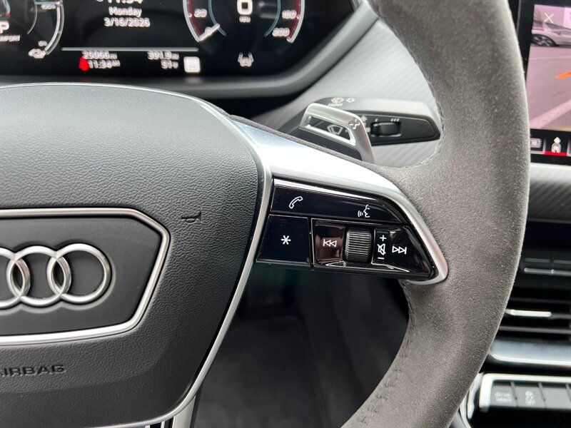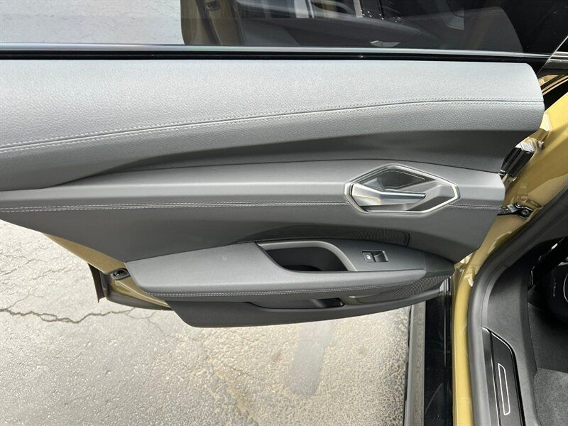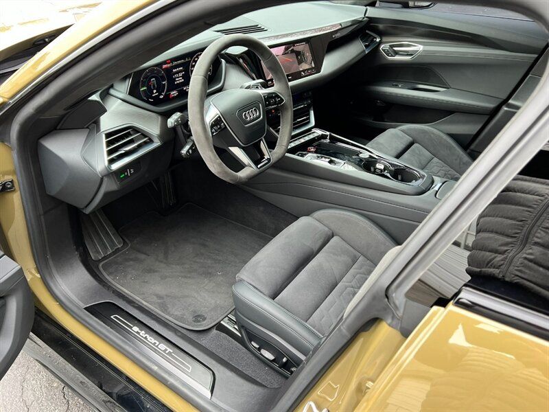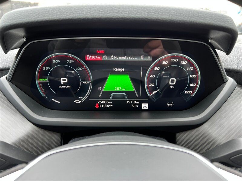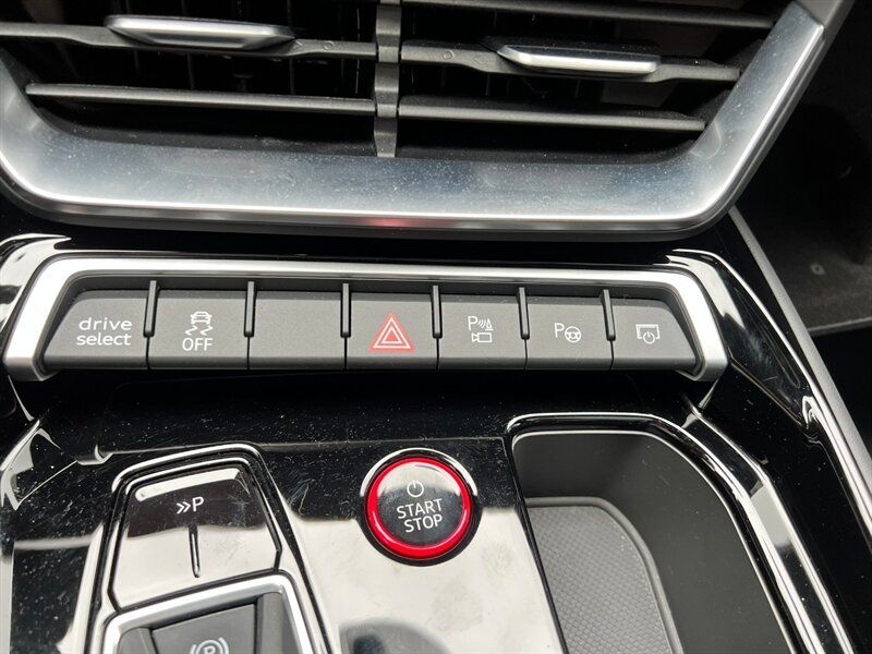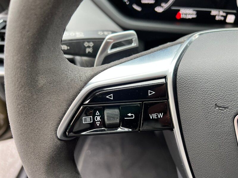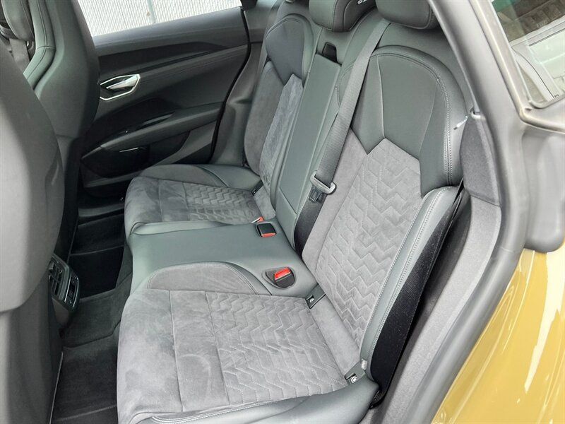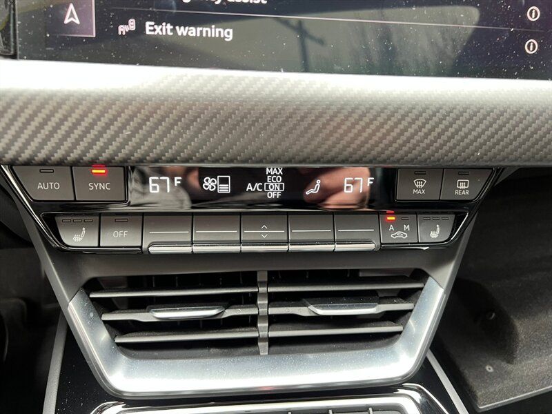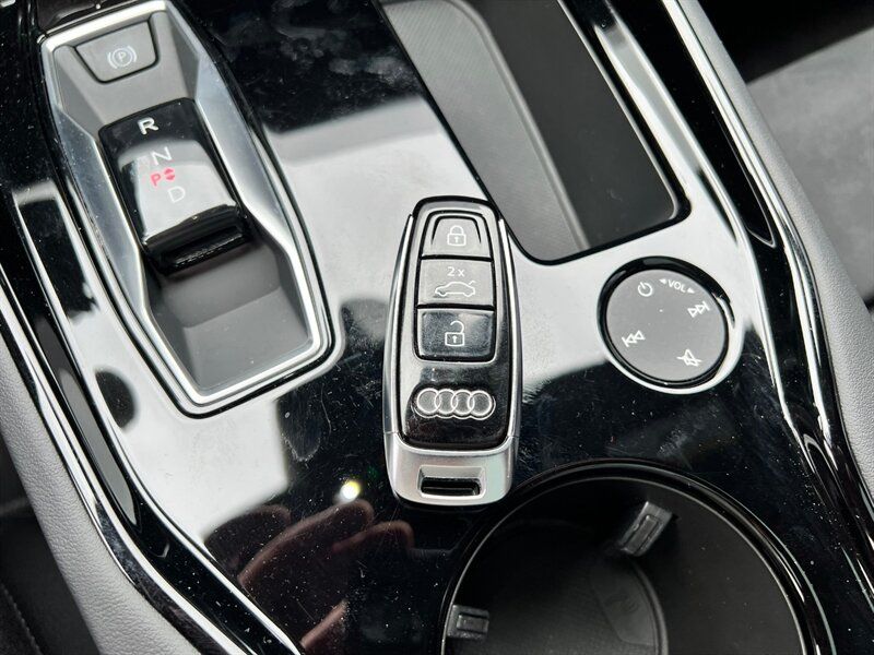 INSTALLED FEATURES: Air filtration, Front air conditioning: automatic climate control, Front air conditioning zones: dual, Rear air conditioning: automatic climate control / independently controlled, Rear air conditioning zones: single, Airbag deactivation: occupant sensing passenger, Front airbags: dual, Knee airbags: dual front, Side airbags: front / rear, Side curtain airbags: front / rear, Antenna type: diversity, Auxiliary audio input: Bluetooth / iPod/iPhone / USB, Digital sound processing, Internet radio app: iHeartRadio / Spotify / TuneIn, Premium brand: Bang & Olufsen, Radio: FM / HD radio / touch screen display / voice operated, Radio data system, Satellite radio: SiriusXM, Speed sensitive volume control, Subwoofer: 1, Surround sound: 5.1, Total speakers: 15, Watts: 710, ABS: 4-wheel, Brake drying, Braking assist, Cornering brake control, Electronic brakeforce distribution, Electronic parking brake: auto off, Emergency braking preparation, Front brake type: ventilated disc, Painted brake calipers, Power brakes, Rear brake type: ventilated disc, Regenerative braking system, Armrests: rear center folding with storage and pass-thru, Center console trim: leatherette, Dash trim: leatherette / wood, Door sill trim: aluminum / illuminated scuff plate, Door trim: leatherette / wood, Floor mat material: carpet, Floor material: carpet, Floor mats: front / rear, Headliner trim: faux suede, Interior accents: aluminum / faux suede, Shift knob trim: alloy, Steering wheel trim: faux suede, Active parking system: semi-automatic, Adaptive cruise control, Adaptive stop and go cruise control: semi-automatic, Ambient lighting: color-adjustable, Assist handle: front, Autonomous lane guidance: lane centering, Cargo area light, Center console: front console with armrest and storage, Cupholders: front / rear, Footwell lights: color-adjustable, Memorized settings: 2 driver / climate control / driver seat / side mirrors, Multi-function remote: panic alarm / proximity entry system / trunk release / vehicle and key memory, One-touch windows: 4, Overhead console: front, Power outlet(s): 12V front / 12V rear / USB front, Power steering: variable/speed-proportional, Power windows: lockout button, Push-button start, Reading lights: front / rear, Rearview mirror: auto-dimming, Remote parking assist: parallel / perpendicular / smartphone operated, Steering wheel: power tilt and telescopic, Steering wheel mounted controls: audio / cruise control / multi-function / phone / voice control, Storage: door pockets / front seatback, Touch-sensitive controls, Universal remote transmitter: Homelink - garage door opener, Vanity mirrors: dual illuminating, Wireless charging station: front, Door handle color: body-color, Front bumper color: black, Grille color: body-color, Mirror color: body-color, Rear bumper color: body-color, Rear trunk/liftgate: power operated, Rocker panel color: black, Window trim: black, Connected in-car apps: Amazon Alexa / app marketplace integration / Apple Music / Google POIs / Google search / Yelp, Infotainment: Audi MMI Connect, Infotainment screen size: 10.1 in., Smartphone integration: Android Auto / wireless Apple CarPlay, Clock, Compass, Customizable instrument cluster, Digital odometer, External temperature display, Fuel economy display: range, Head-up display, Instrument cluster screen size: 12.3 in., Multi-function display, Trip odometer, Warnings and reminders: coolant temperature warning / lamp failure / low battery / low washer fluid / maintenance due, Daytime running lights: LED, Exterior entry lights: approach lamps, Headlights: auto delay off / auto high beam dimmer / auto on/off / LED, Taillights: LED, Side mirror adjustments: power / power folding / reverse gear tilt, Side mirrors: auto-dimming / heated / integrated turn signals, 4WD type: on demand, Battery saver, Drive mode selector, Electric charge cord: auto switching 110V/240V, Electric motor battery type: lithium ion, Electric motor charger: DC fast charging, Electric motor charger connector: SAE Combo CCS, Electric motor charging time (240V): 10.5 hours, Electric motor miles per charge: 249, EV battery capacity: 83.7 kWh, EV on-board charger rating: 9.6 kW, Moonroof / Sunroof: panoramic, Automatic emergency braking: front / front pedestrian / rear, Automatic hazard warning lights, Blind spot safety: sensor/alert, Camera system: surround view, Child safety door locks, Child seat anchors: LATCH system, Cross traffic alert: front / rear, Crumple zones: front / rear, Emergency interior trunk release, Impact sensor: battery disconnect / door unlock / post-collision safety system, Lane deviation sensors, Lane keeping assist, Parking sensors: front / rear, Pedestrian safety sound generation, Pre-collision warning system: audible warning / pedestrian detection / visual warning, Rearview monitor: in dash, Traffic sign recognition, Vehicle exit safety system, Emergency locking retractors: front / rear, Front seatbelts: 3-point, Rear seatbelts: 3-point, Seatbelt force limiters: front, Seatbelt pretensioners: front, Seatbelt warning sensor: front, Driver seat: heated, Driver seat power adjustments: 14 / 4-way power lumbar / height / reclining, Front headrests: 2 / integrated, Front seat type: sport bucket, Passenger seat: heated, Passenger seat power adjustments: 14 / 4-way power lumbar / height / reclining, Rear headrests: 3 / adjustable, Rear seat: heated, Rear seat folding: split, Rear seat manual adjustments: reclining, Rear seat type: 60-40 split bench, Upholstery: leatherette, Upholstery accents: faux suede, Anti-theft system: alarm / anti-tow sensor / interior motion sensor / perimeter alarm / vehicle immobilizer, Power door locks: anti-lockout / auto-locking, Hill holder control, Stability control, Traction control, Active suspension, Air suspension, Driver adjustable suspension: height / ride control, Front shock type: gas, Front spring type: pneumatic, Front stabilizer bar, Front struts, Front suspension classification: inde