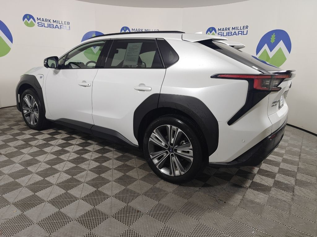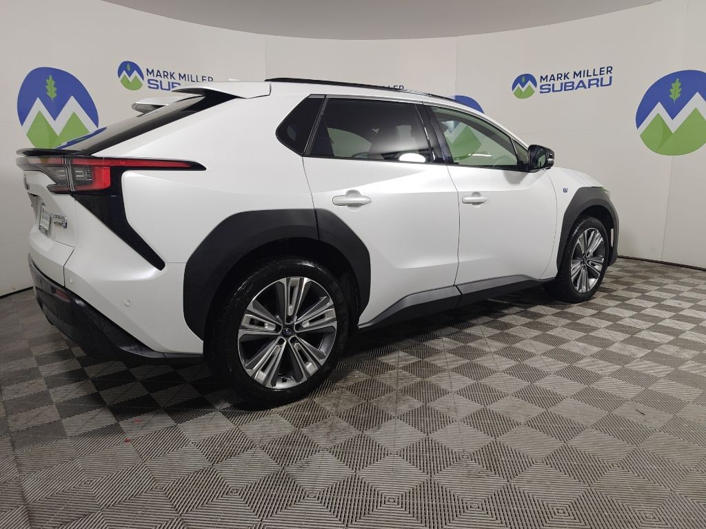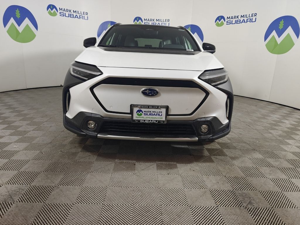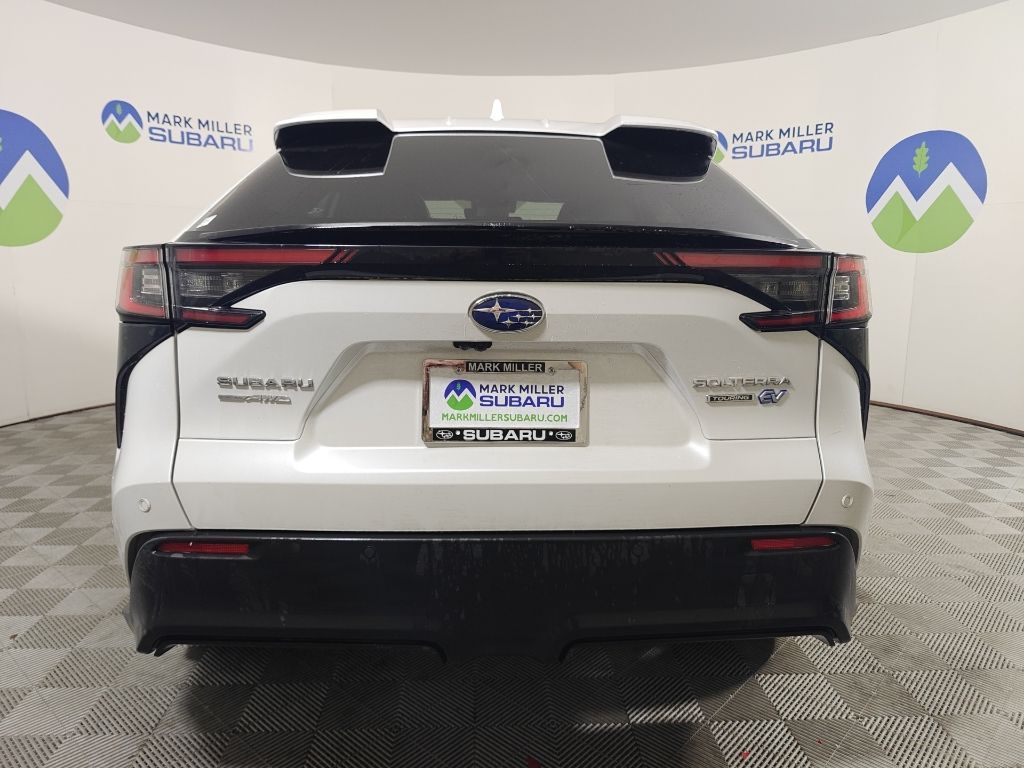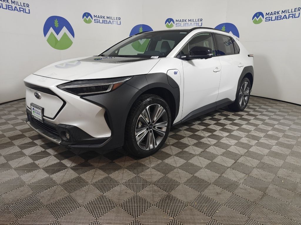 This 2023 Cosmic White Pearl Subaru Solterra Touring AWD is well equipped and includes these features and benefits: Standard Model, Subaru Certified Pre-Owned Certified, 11 Speakers, 13.8 Axle Ratio, 4-Wheel Disc Brakes, ABS brakes, Air Conditioning, All-Weather Floor Liners, Alloy wheels, AM/FM radio: SiriusXM, Auto High-beam Headlights, Auto-dimming Rear-View mirror, Automatic temperature control, Brake assist, Bumpers: body-color, Cargo Net, Cargo Tray, Driver door bin, Driver vanity mirror, Dual front impact airbags, Dual front side impact airbags, Electronic Stability Control, Emergency communication system: Subaru Solterra Connect - Safety Connect (1 year trial included), Four wheel independent suspension, Front anti-roll bar, Front Bucket Seats, Front Center Armrest, Front dual zone A/C, Front fog lights, Front reading lights, Fully automatic headlights, Garage door transmitter: HomeLink, harman/kardon® Speakers, Heated & Ventilated Front Bucket Seats, Heated door mirrors, Heated front seats, Heated rear seats, Heated steering wheel, Illuminated entry, Knee airbag, Leather steering wheel, Low tire pressure warning, Memory seat, Navigation system: Cloud Navigation System (Subscription required), Occupant sensing airbag, Outside temperature display, Overhead airbag, Overhead console, Panic alarm, Passenger door bin, Passenger vanity mirror, Power door mirrors, Power driver seat, Power Liftgate, Power steering, Power windows, Radio data system, Radio: Subaru Solterra Connect 12.3'' Multimedia System, Rain sensing wipers, Rear anti-roll bar, Rear reading lights, Rear seat center armrest, Rear window defroster, Remote keyless entry, Security system, Speed control, Speed-sensing steering, Split folding rear seat, Spoiler, StarTex Upholstery, Steering wheel mounted audio controls, Telescoping steering wheel, Tilt steering wheel, Traction control, Trip computer, Turn signal indicator mirrors, Variably intermittent wipers, Ventilated front seats, and Wheels: 20'' x 7.5'' J Aluminum-Alloy Gray Finish.