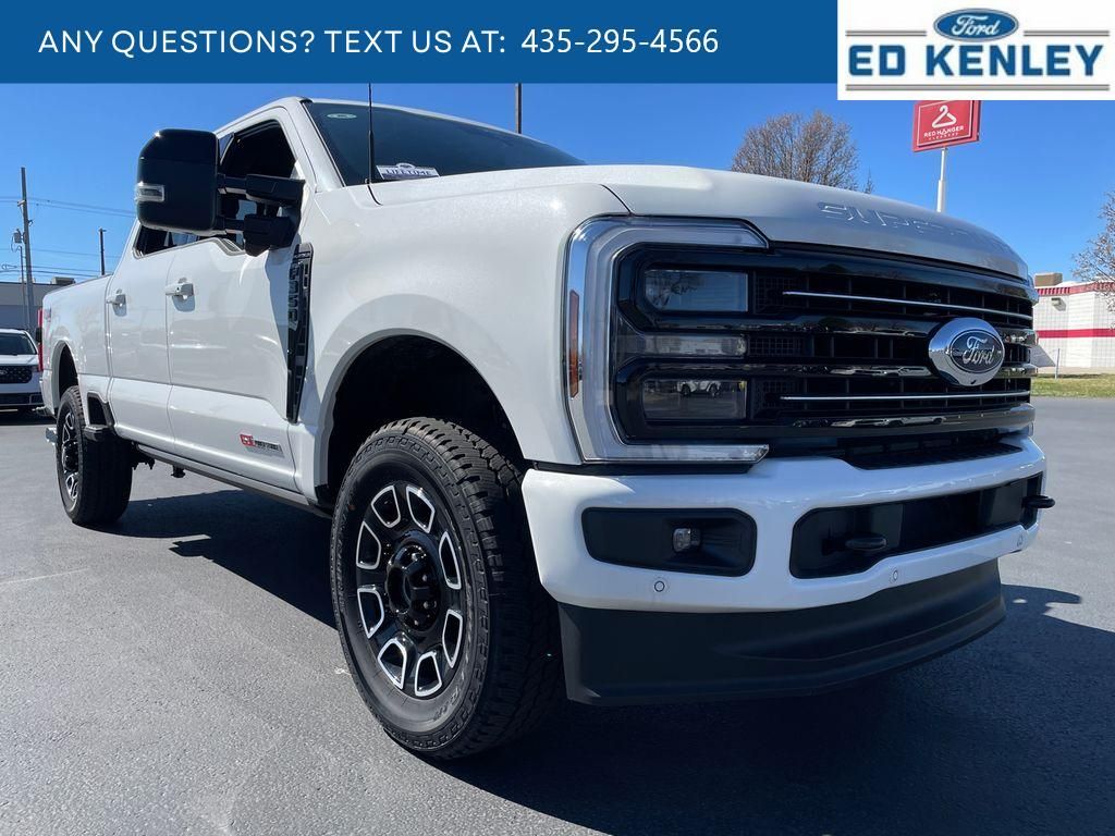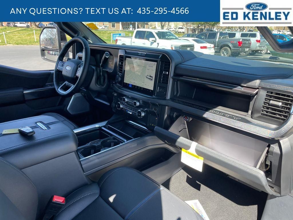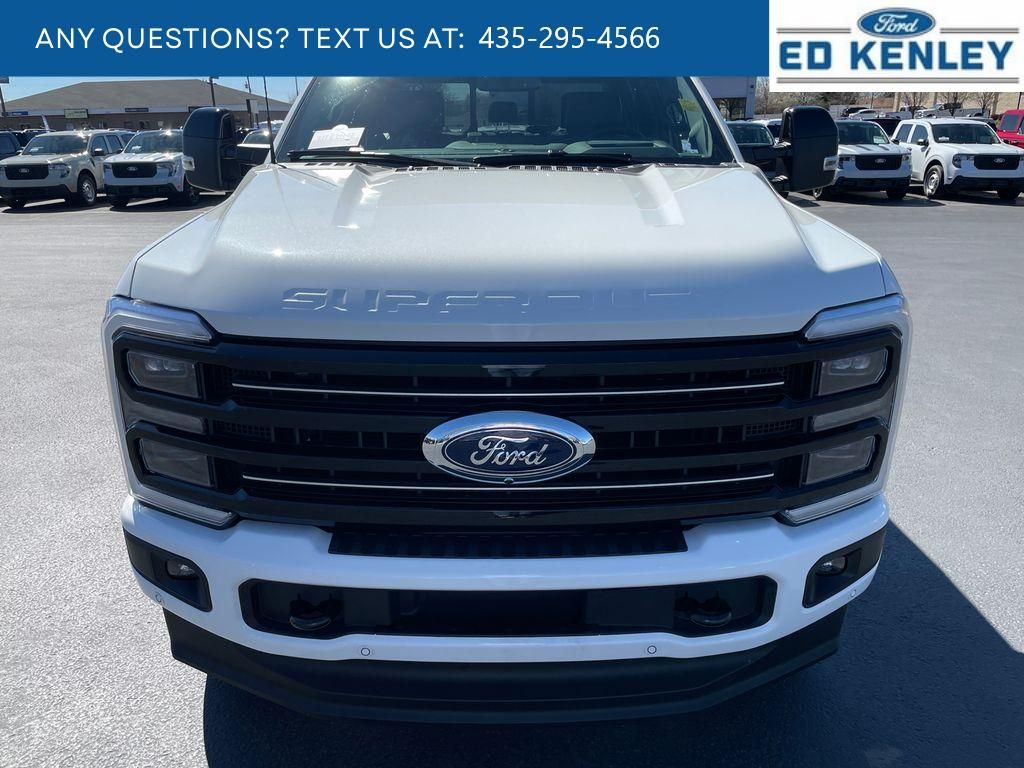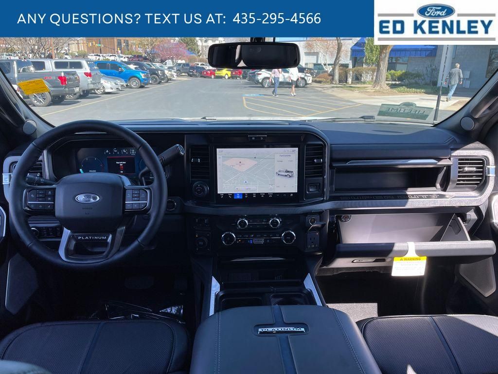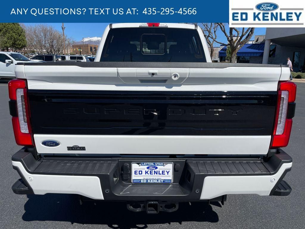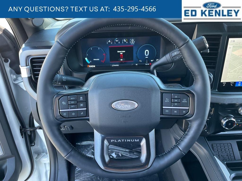 FX4 Off-Road Package: Transfer Case and Fuel Tank Skid Plates; Hill Descent Control; Off-Road Specifically Tuned Shock Absorbers; Unique FX4 Off-Road Box Decal,Order Code 713A: TorqShift 10-Speed Automatic Transmission; Unique Platinum Leather 40/console/40 Seats; LT275/65Rx20E BSW A/T (4) Tires; B&O Unleashed Sound System by Bang & Olufsen Radio,Star White Metallic TC,Star White Metallic TC,SecuriCode Keyless Entry Keypad (driver's Side),Electronic-Locking with 3.55 Axle Ratio,Snow Plow Prep Package,Front and Rear Wheel Well Liners,Upfitter Switches (6),All-Weather Floor Mats,Lane Centering hands-on cruise control,Predictive Speed Assist Automatic curve slowdown cruise control,5G Modem - Ford Connectivity Package mobile hotspot internet access,Reverse Camera rear mounted camera,Lane Keeping Alert,Reverse Brake Assist collision mitigation,Adaptive Cruise Control with Stop-and-Go,Head-up display,Brake assist system,Cruise control with steering wheel mounted controls,Power open and close tailgate,Ventilated driver and front passenger seats,Connected Navigation integrated navigation system with voice activation,Keyfob remote start,Heated steering wheel,Heated driver and front passenger seats,Heated rear seats,Leather front seat upholstery,Primary monitor touchscreen,Driver seat power reclining, lumbar support, cushion tilt, fore/aft control and height adjustable control,Part-time 4WD,Powerstroke 6.7L V-8 diesel direct injection, DEVCT intercooled turbo, diesel, engine with 500HP,Powerstroke 6.7L V-8,Front wireless smart device charging,SYNC 4 with Enhanced Voice Recognition (Alexa-Built-In) built-in virtual assistant,PCA with AEB and Intersection Assist forward collision mitigation with left turn assist,Driver Alert,SecuriCode external keypad door lock control,Intelligent Access with hands-free access and push button start,Aerial view camera,Smart device remote start,Push-button,Onboard scale,Weight capacity alert,Bluetooth wireless audio streaming,Pro Trailer Backup Assist vehicle and trailer reverse assist,Pro Trailer Hitch Assist automated vehicle to trailer hitching assist,Gauge cluster display size: 12.00,Front mounted camera,Right side camera,Pickup box camera,Left side camera,BLIS with Trailer Tow Coverage blind spot warning,Pedestrian detection warning,Traffic sign recognition,Dual-zone front climate control,SYNC 4 with Enhanced Voice Recognition voice-activated climate control,Auto high-beam headlights,Massaging driver seat,Massaging front passenger seat