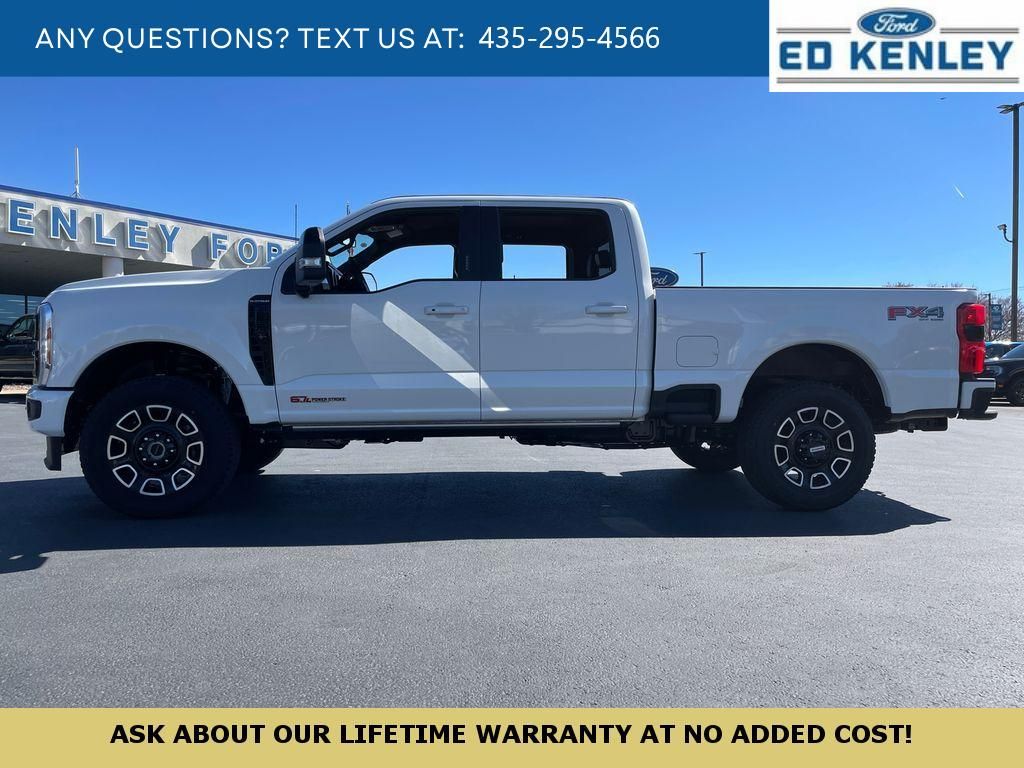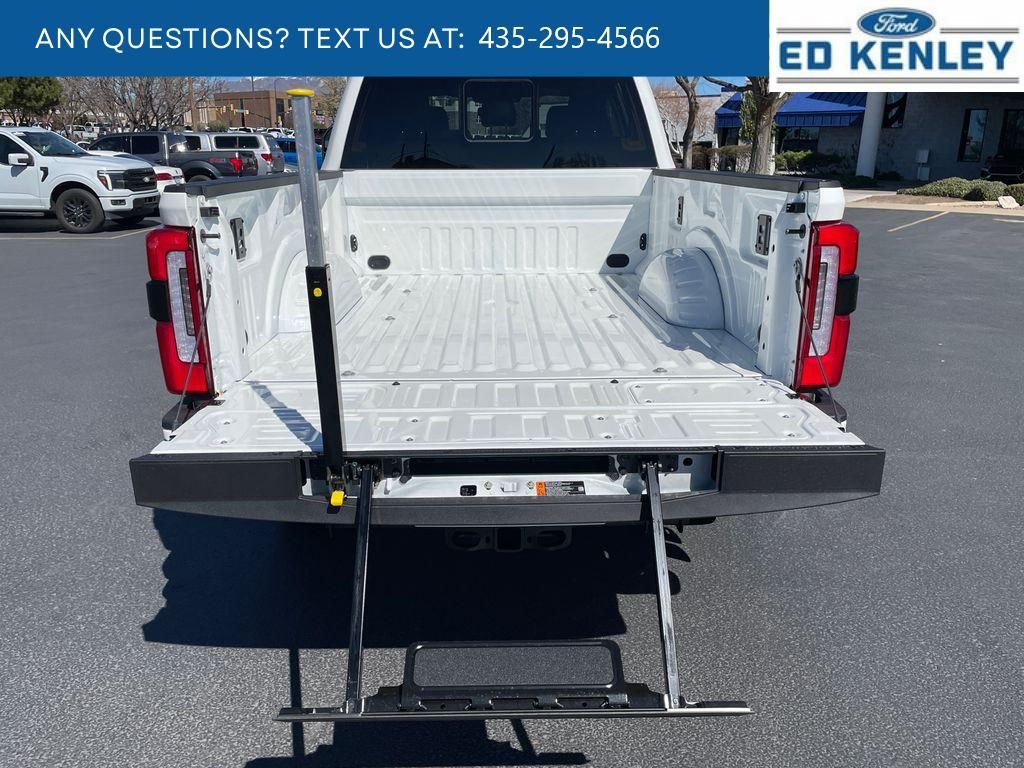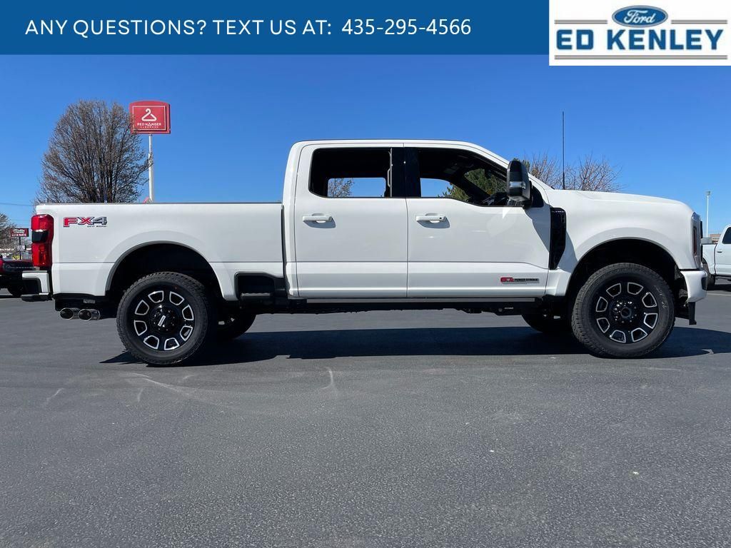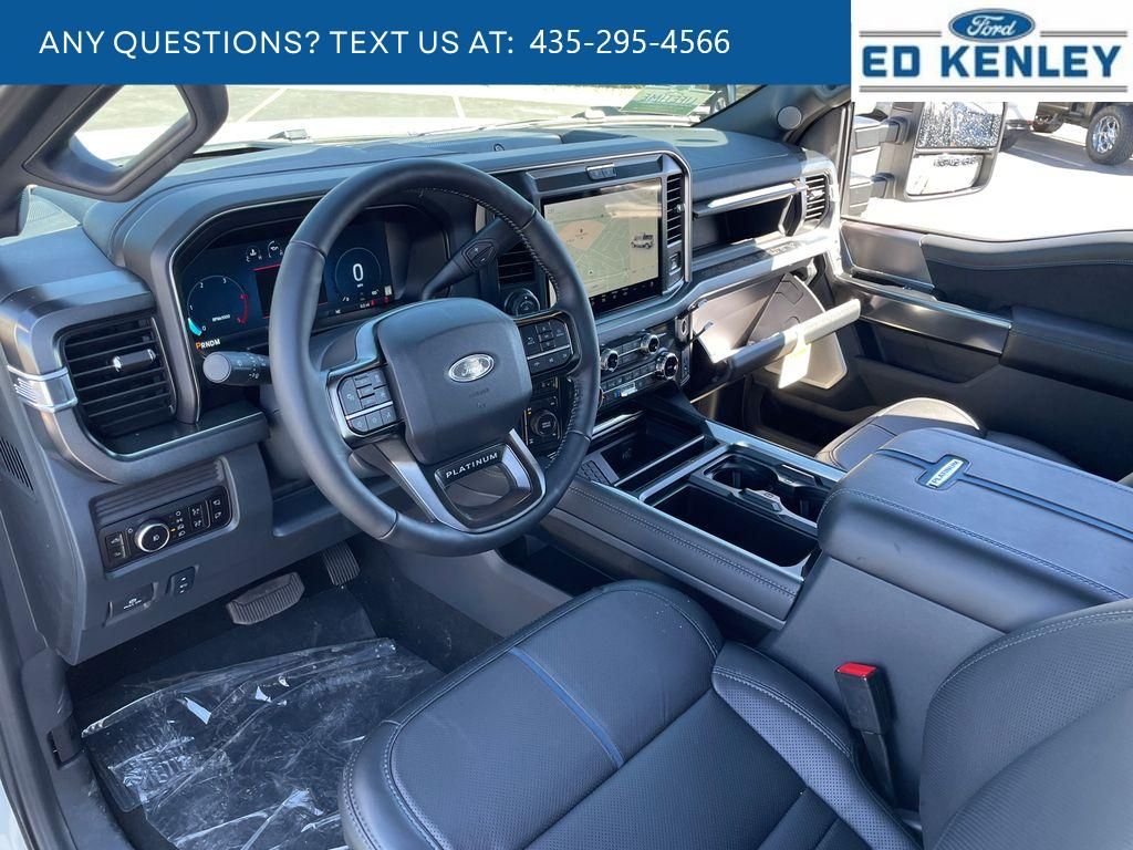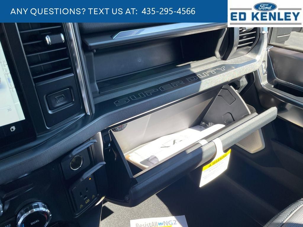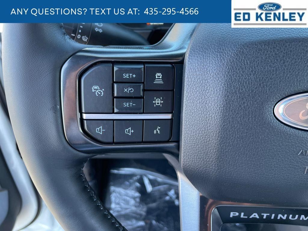 FX4 Off-Road Package: Transfer Case and Fuel Tank Skid Plates; Hill Descent Control; Off-Road Specifically Tuned Shock Absorbers; Unique FX4 Off-Road Box Decal,Order Code 713A: TorqShift 10-Speed Automatic Transmission; Unique Platinum Leather 40/console/40 Seats; LT275/65Rx20E BSW A/T (4) Tires; B&O Unleashed Sound System by Bang & Olufsen Radio,Star White Metallic TC,Star White Metallic TC,SecuriCode Keyless Entry Keypad (driver's Side),Electronic-Locking with 3.55 Axle Ratio,Snow Plow Prep Package,Front and Rear Wheel Well Liners,Upfitter Switches (6),All-Weather Floor Mats,Lane Centering hands-on cruise control,Predictive Speed Assist Automatic curve slowdown cruise control,5G Modem - Ford Connectivity Package mobile hotspot internet access,Reverse Camera rear mounted camera,Lane Keeping Alert,Reverse Brake Assist collision mitigation,Adaptive Cruise Control with Stop-and-Go,Head-up display,Brake assist system,Cruise control with steering wheel mounted controls,Power open and close tailgate,Ventilated driver and front passenger seats,Connected Navigation integrated navigation system with voice activation,Keyfob remote start,Heated steering wheel,Heated driver and front passenger seats,Heated rear seats,Leather front seat upholstery,Primary monitor touchscreen,Driver seat power reclining, lumbar support, cushion tilt, fore/aft control and height adjustable control,Part-time 4WD,Powerstroke 6.7L V-8 diesel direct injection, DEVCT intercooled turbo, diesel, engine with 500HP,Powerstroke 6.7L V-8,Front wireless smart device charging,SYNC 4 with Enhanced Voice Recognition (Alexa-Built-In) built-in virtual assistant,PCA with AEB and Intersection Assist forward collision mitigation with left turn assist,Driver Alert,SecuriCode external keypad door lock control,Intelligent Access with hands-free access and push button start,Aerial view camera,Smart device remote start,Push-button,Onboard scale,Weight capacity alert,Bluetooth wireless audio streaming,Pro Trailer Backup Assist vehicle and trailer reverse assist,Pro Trailer Hitch Assist automated vehicle to trailer hitching assist,Gauge cluster display size: 12.00,Front mounted camera,Right side camera,Pickup box camera,Left side camera,BLIS with Trailer Tow Coverage blind spot warning,Pedestrian detection warning,Traffic sign recognition,Dual-zone front climate control,SYNC 4 with Enhanced Voice Recognition voice-activated climate control,Auto high-beam headlights,Massaging driver seat,Massaging front passenger seat