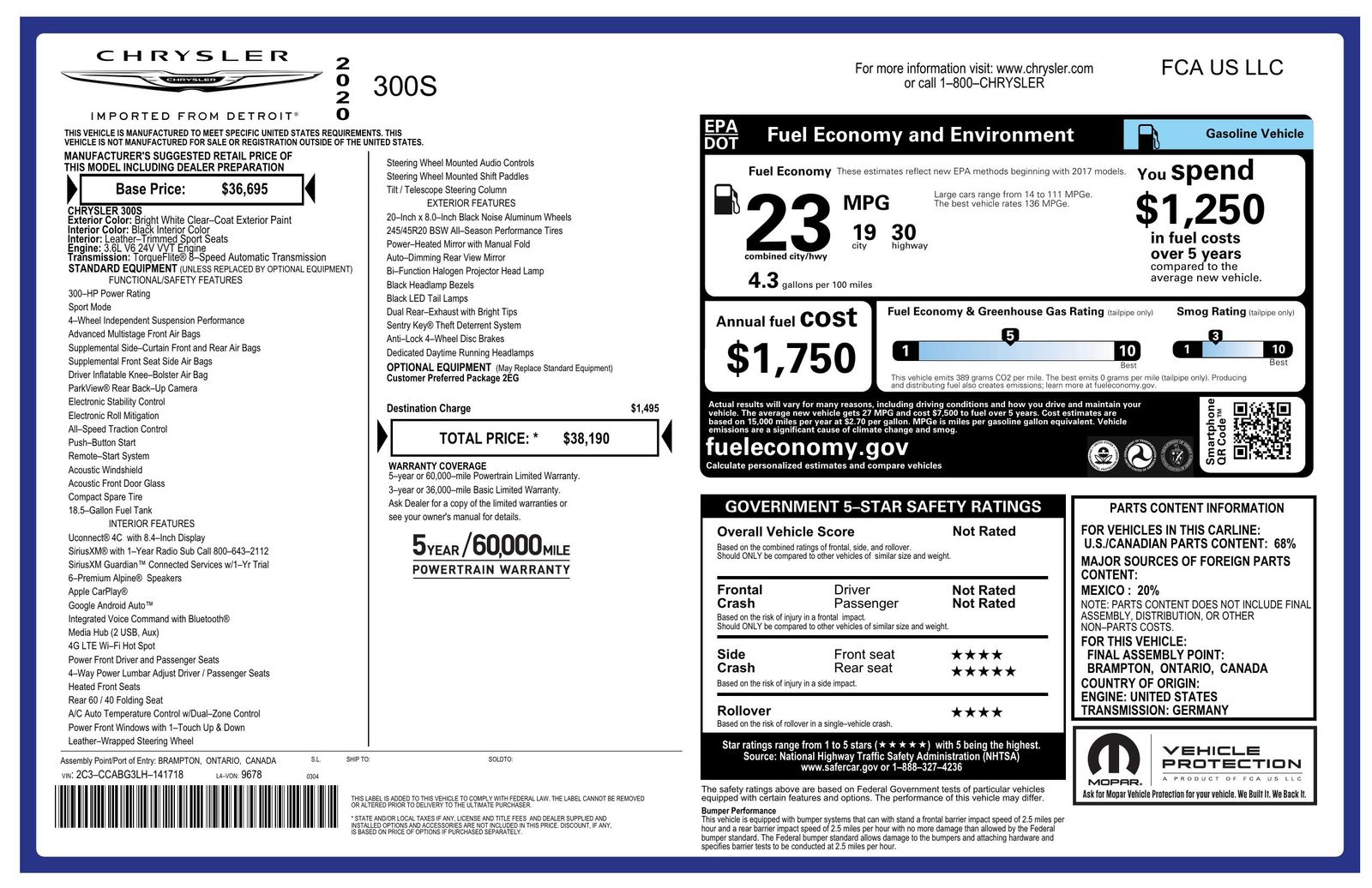 Inside- the Chrysler 300's interior features a stylish Black color scheme that exudes luxury and comfort with meticulous attention to detail. Premium leather-trimmed seats with 8-way power adjustments provide superior comfort for both driver and passengers- making long drives more enjoyable. The cabin is equipped with state-of-the-art technology- including a user-friendly infotainment system featuring a large touchscreen display and connectivity options that allow you to stay connected seamlessly. In terms of safety- the vehicle offers a host of advanced features designed to provide peace of mind on every journey.