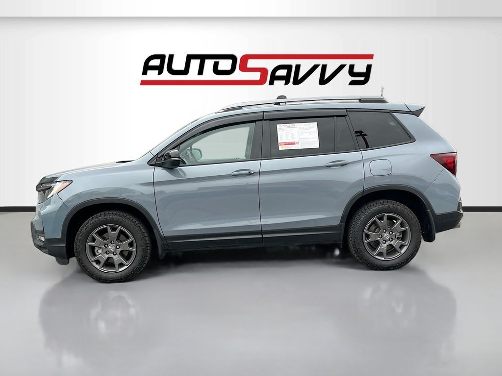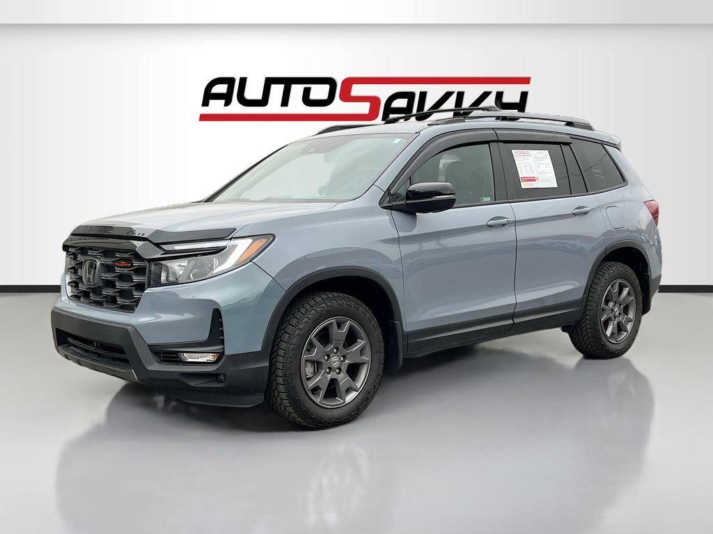 Discover the certified pre-owned 2024 Honda Passport AWD TrailSport at AutoSavvy Lindon, a dynamic SUV that blends rugged capability with premium comfort. With only 12,191 miles, this Light Blue beauty is powered by a robust 3.5L V-6 engine, boasting 280 horsepower and equipped with cylinder deactivation for enhanced fuel efficiency. The TrailSport trim is designed for adventure, featuring all-wheel drive, a 9-speed automatic transmission, and off-road suspension for unparalleled performance on any terrain. Inside, enjoy the luxury of leather front seat upholstery, heated front seats, and a power moonroof. Stay connected with Apple CarPlay and Android Auto, while the integrated navigation system ensures you never lose your way. Safety is a priority with features like Blind Spot Monitor, Adaptive Cruise Control, and Automatic Emergency Braking. This 2024 Honda Passport comes with a branded title, reflecting AutoSavvy's dedication to offering exceptional value without compromising quality. Each vehicle undergoes a meticulous inspection to meet stringent safety and performance standards, ensuring reliability and peace of mind. As a certified vehicle, it is backed by our 4-month/4,500 Mile Warranty, providing additional assurance for your investment. AutoSavvy Lindon is renowned for offering high-quality, low-mileage vehicles with premium features at substantial savings. Join the community of savvy buyers who appreciate the unique benefits of purchasing from AutoSavvy. Visit AutoSavvy Lindon today to explore this outstanding Honda Passport and experience the perfect blend of power, technology, and adventure-ready capability.