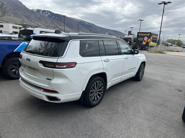 BLACK CLEARCOAT,BRIGHT WHITE CLEARCOAT,ENGINE: 3.6L V6 24V VVT UPG I W/ESS (STD),MOPAR FINISHING PACKAGE -inc: MOPAR Rear Splash Guards w/Jeep Logo MOPAR Paint Protection Film MOPAR Front Splash Guards,TRANSMISSION: 8-SPEED AUTOMATIC (850RE) (STD),QUICK ORDER PACKAGE 22U SUMMIT RESERVE -inc: Engine: 3.6L V6 24V VVT UPG I w/ESS Transmission: 8-Speed Automatic (850RE) Deluxe Headliner Trailer Tow Package Trailer Hitch Zoom Class IV Receiver Hitch 7 & 4 Pin Wiring Harness Palermo Leather Door Trim 950 Watt Amplifier Summit Reserve Badge Ventilated Rear Seats Summit Reserve,GLOBAL BLACK PALERMO LEATHER SEATS,TWO TONE PAINT GROUP,ADVANCED PROTECH GROUP IV -inc: Interior Rear Facing Camera Head Up Display Rearview Autodim Digital Display Mirror Night Vision/Pedestrian-Animal Detection,GVWR: 6 700 LBS (STD),FRONT LICENSE PLATE BRACKET,LUXURY TECH GROUP V -inc: Wireless Charging Pad 2nd Row Manual Window Shades,Four Wheel Drive,Air Suspension,Active Suspension,Power Steering,Air Suspension,Air Suspension,ABS,4-Wheel Disc Brakes,Brake Assist,Aluminum Wheels,Tires - Front Performance,Tires - Rear Performance,Conventional Spare Tire,Sun/Moonroof,Generic Sun/Moonroof,Panoramic Roof,Heated Mirrors,Power Mirror(s),Integrated Turn Signal Mirrors,Power Folding Mirrors,Rear Defrost,Privacy Glass,Intermittent Wipers,Variable Speed Intermittent Wipers,Rain Sensing Wipers,Rear Spoiler,Remote Trunk Release,Power Liftgate,Power Door Locks,Daytime Running Lights,Automatic Headlights,LED Headlights,Fog Lamps,Automatic Highbeams,AM/FM Stereo,Navigation System,Satellite Radio,Bluetooth Connection,HD Radio,Requires Subscription,MP3 Capability,Steering Wheel Audio Controls,Auxiliary Audio Input,Premium Sound System,Bluetooth Connection,Power Driver Seat,Power Passenger Seat,Mirror Memory,Driver Adjustable Lumbar,Seat Memory,Seat-Massage,Heated Front Seat(s),Cooled Front Seat(s),Power Driver Seat,Driver Adjustable Lumbar,Seat-Massage,Power Passenger Seat,Passenger Adjustable Lumbar,Seat-Massage,Bucket Seats,Rear Bucket Seats,Heated Rear Seat(s),Adjustable Steering Wheel,Trip Computer,Power Windows,WiFi Hotspot,3rd Row Seat,Leather Steering Wheel,Heated Steering Wheel,Keyless Entry,Power Door Locks,Keyless Start,Keyless Entry,Power Door Locks,Hands-Free Liftgate,Universal Garage Door Opener,Cruise Control,Adaptive Cruise Control,A/C,Rear A/C,Climate Control,Multi-Zone A/C,A/C,Woodgrain Interior Trim,Driver Vanity Mirror,Passenger Vanity Mirror,Driver Illuminated Vanity Mirror,Passenger Illuminated Visor Mirror,Auto-Dimming Rearview Mirror,Floor Mats,Remote Engine Start,Keyless Start,Navigation System,Mirror Memory,Seat Memory,Smart Device Integration,Power Door Locks,Power Windows,Trip Computer,Security System,Immobilizer,Traction Control,Stability Control,Traction Control,Front Side Air Bag,Telematics,Requires Subscription,Blind Spot Monitor,Cross-Traffic Alert,Rear Collision Mitigation,Front Collision Mitigation,Rear Parking Aid,Automatic Parking,Cross-Traffic Alert,Lane Departure Warning,Lane Keeping Assist,Lane Departure Warning,Aerial View Display System,Driver Monitoring,Tire Pressure Monitor,Driver Air Bag,Passenger Air Bag,Front Head Air Bag,Rear Head Air Bag,Passenger Air Bag Sensor,Knee Air Bag,Child Safety Locks