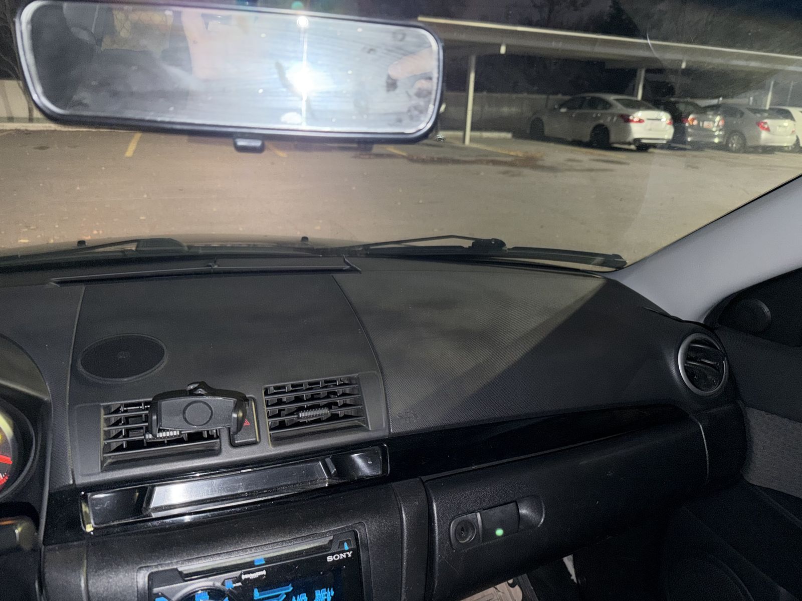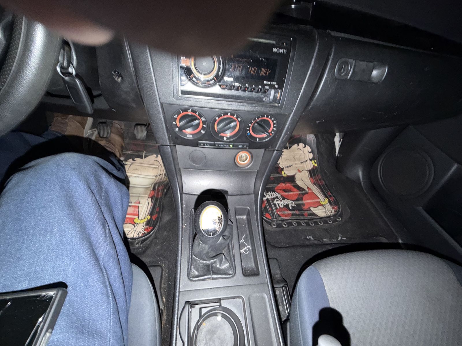 Clutch was replace at 167,000 miles and most of the miles put on it since have been highway miles (minimal shifting). Interior is in great shape with no tears or rips in the upholstery, and no cracks in the plastics or dash. Included are the original Mazda floor mats (both front and rear), as well as a set of very stylish Betty Boop floor mats for the front. The radio is an aftermarket Sony WX-900BT with CD, USB, and Bluetooth for hands free phone calls. The AC compressor was replaced a few years ago and the system just started leaking this past summer, adding refrigerant only lasts a couple of weeks. The fan stopped working on all speed settings, which it had done in the past and we were able to fix it by cleaning the speed selector switches (there are YouTube videos about it.