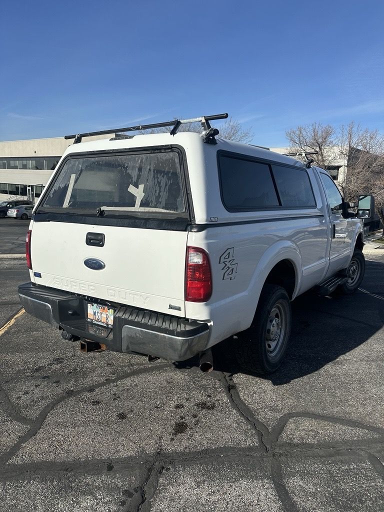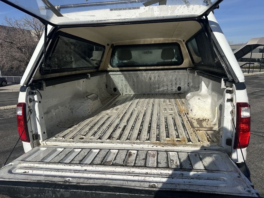 2011 Ford F-250 Super Duty 4x4 for sale. The truck drives great and has been regularly maintained. The tires have good tread, and it has a fresh oil change. The interior shows normal wear, including some wear on the steering wheel. The radio works properly, but the display has no pixels. It comes with a Leer fiberglass cab topper with roof bars (currently has a plastic rear window). The exterior has some dents and dings consistent with age and use, and all of the logos have been removed. Overall, it’s a solid truck and ready to go.