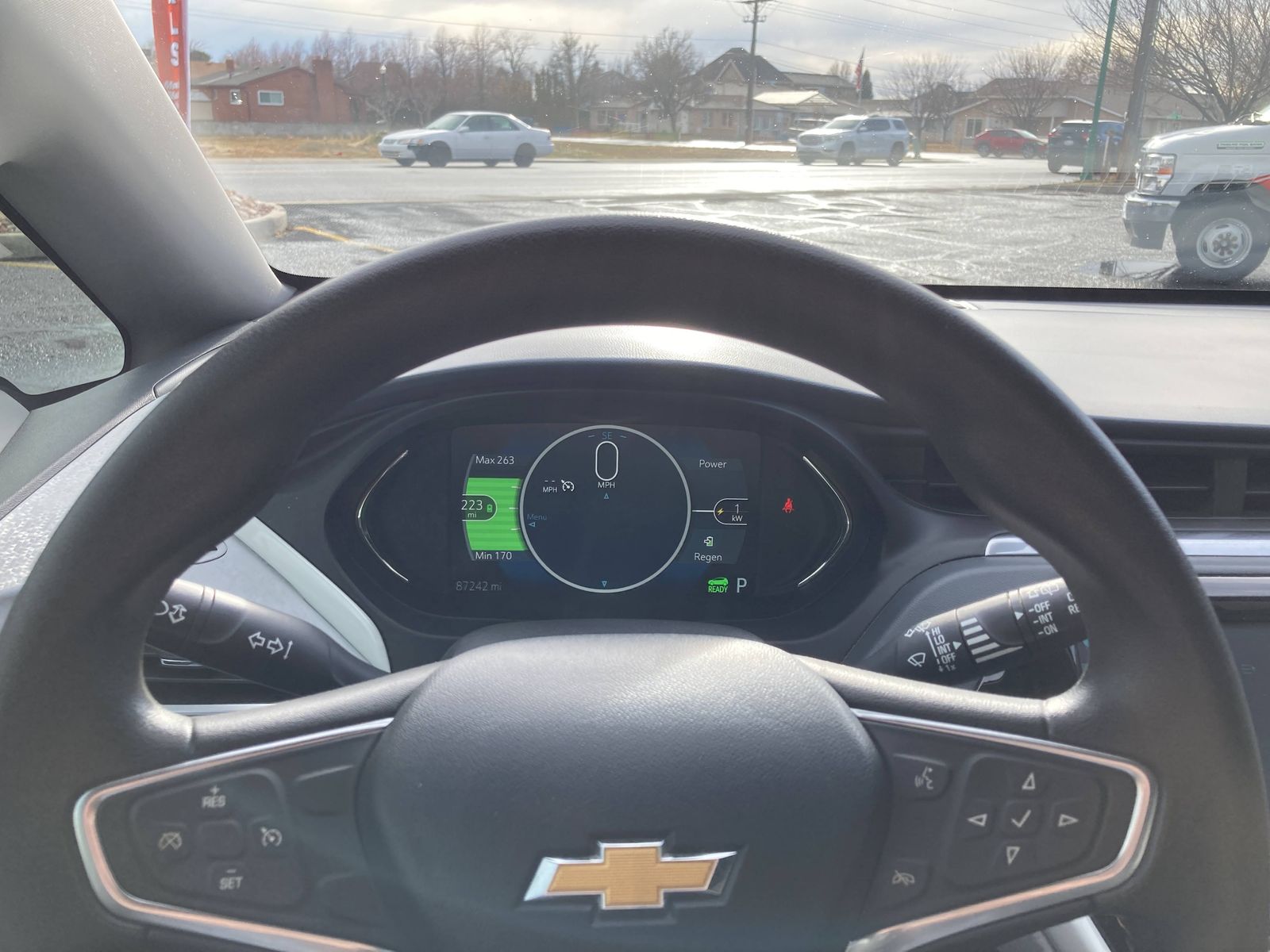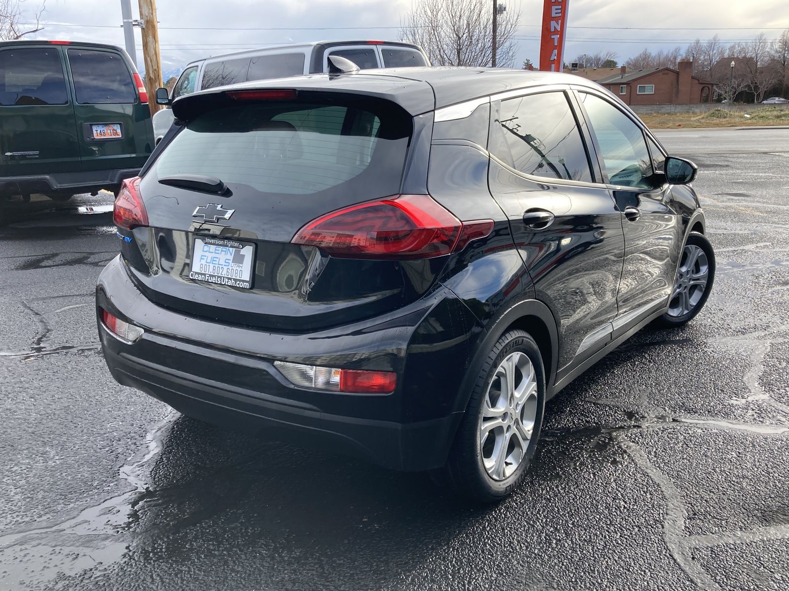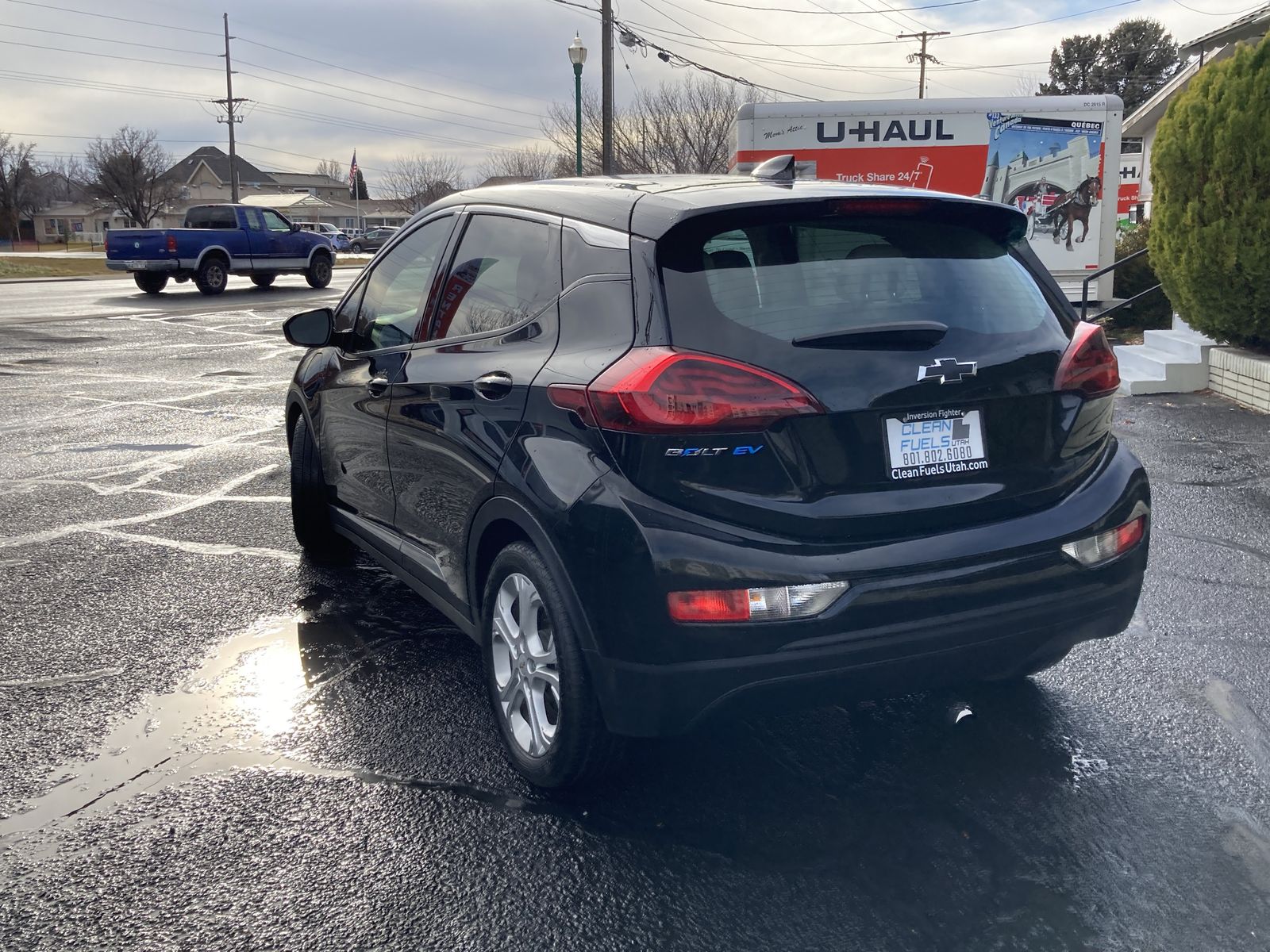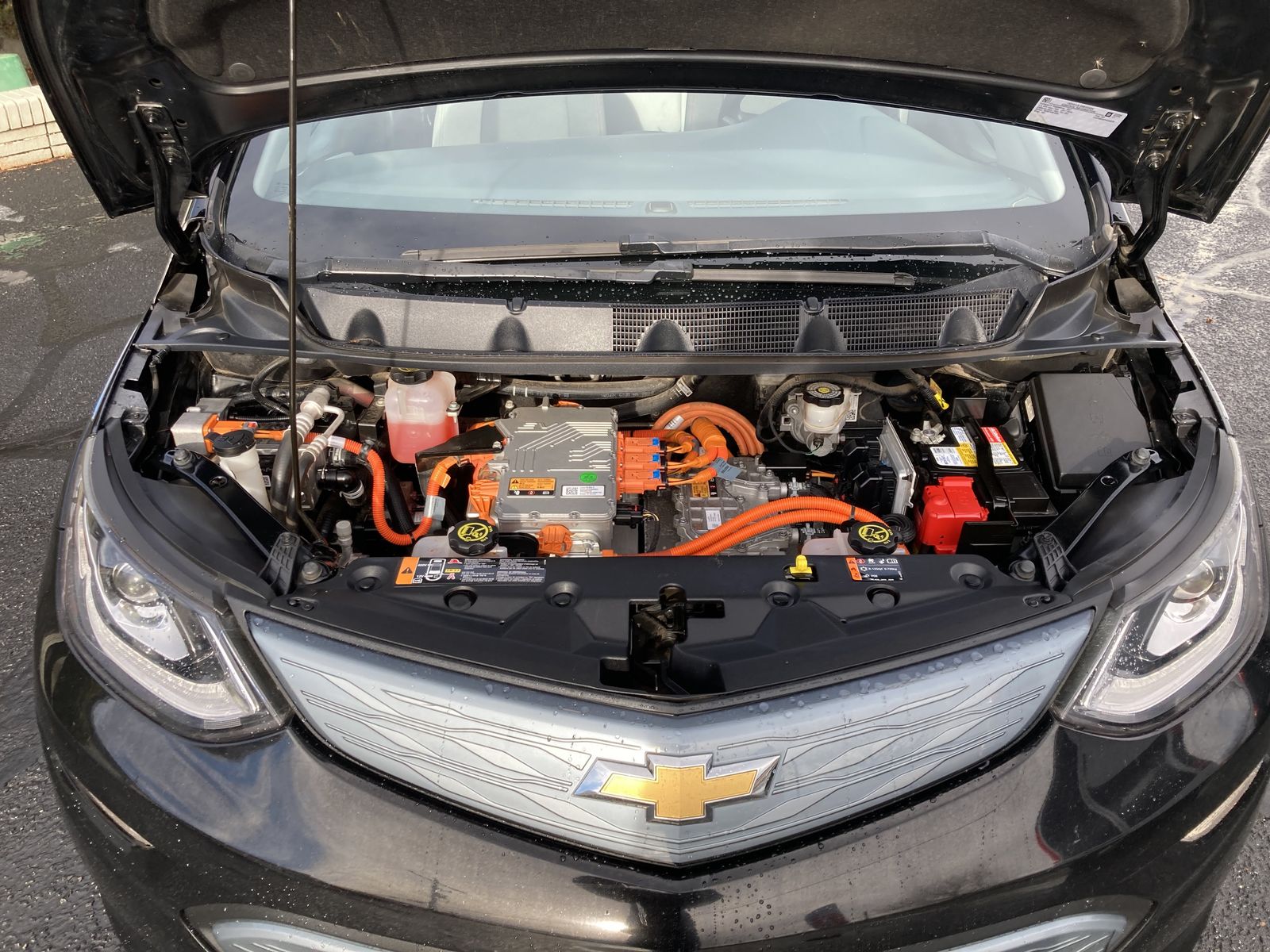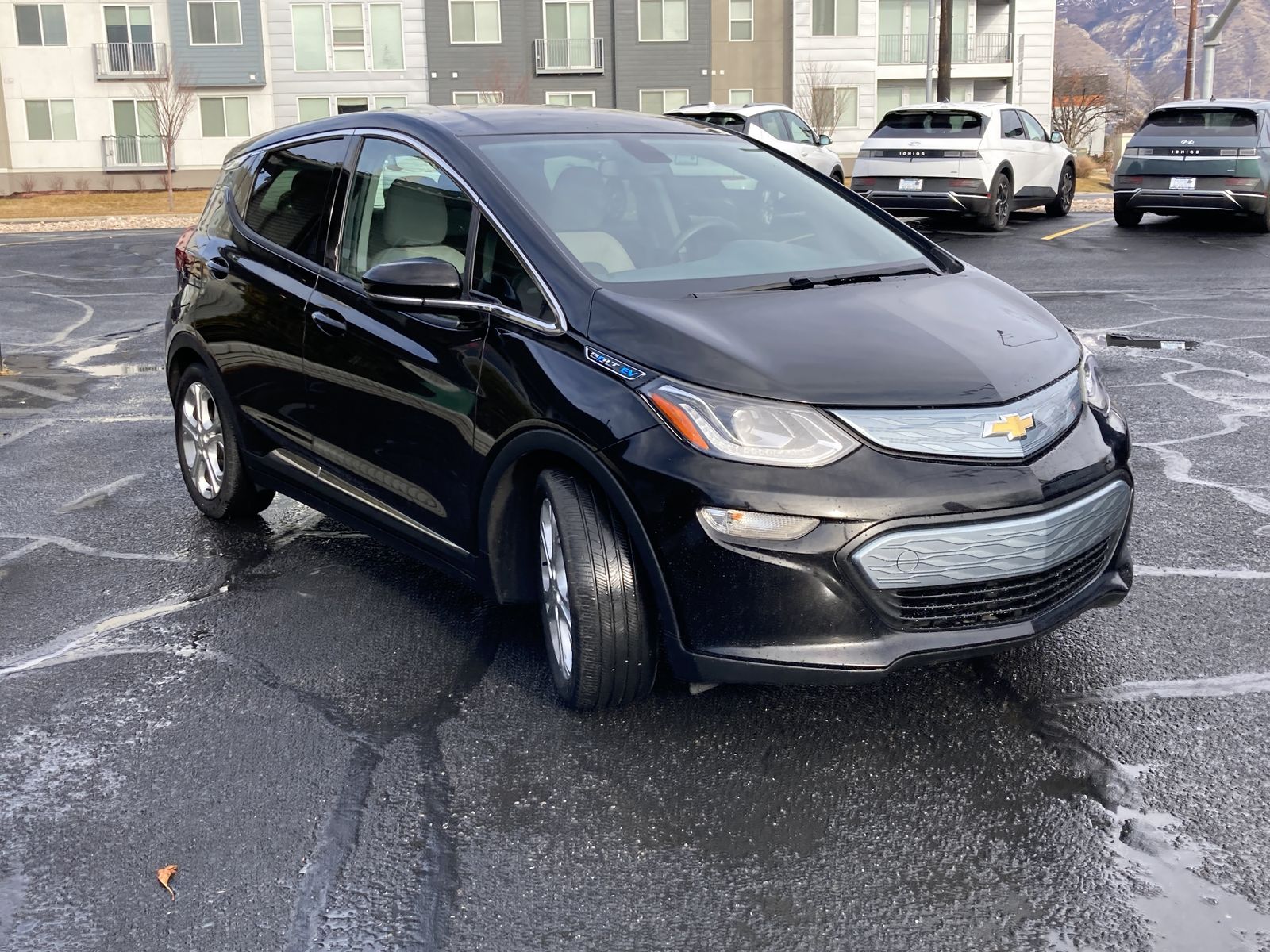 This 2017 Chevy Bolt is rated at 259 miles of electric range. It comes with CCS fast charging, Bluetooth, AUX and USB input with wired Apple CarPlay and Android Auto.