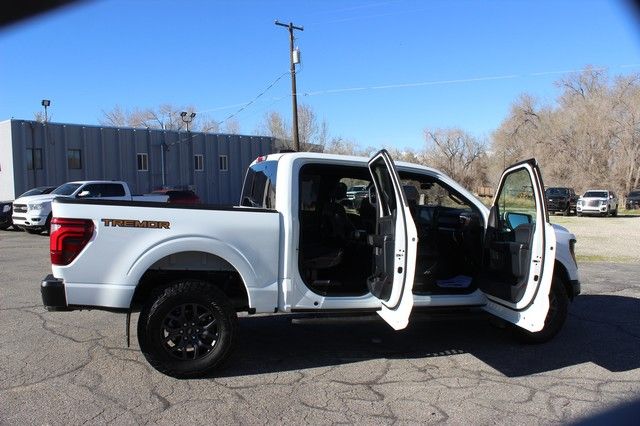 2025 FORD F150 TREMOR CREW CAB, 402A PACKAGE, 4WD, 3.5 ECO BOOST ENGINE, 24K ACTUAL MILES!! BLACK LEATHER INTERIOR, AUTOMATIC, POWER SEATS, HEATED SEATS, A/C SEATS, MEMORY SEATS, HEATED REAR SEATS PANORAMIC SUNROOF, NAVIGATION, HEADS UP DISPLAY, ADAPTIVE CRUISE CONTROL, BLUE CRUISE EQUIPPED, LANE KEEPING SYSTEM, PRE COLLISION , PRO ACCESS TAILGATE, RUNNING BOARDS, TOW PACKAGE, ALLOY WHEELS. CLEAN TITLE. DL 4007
