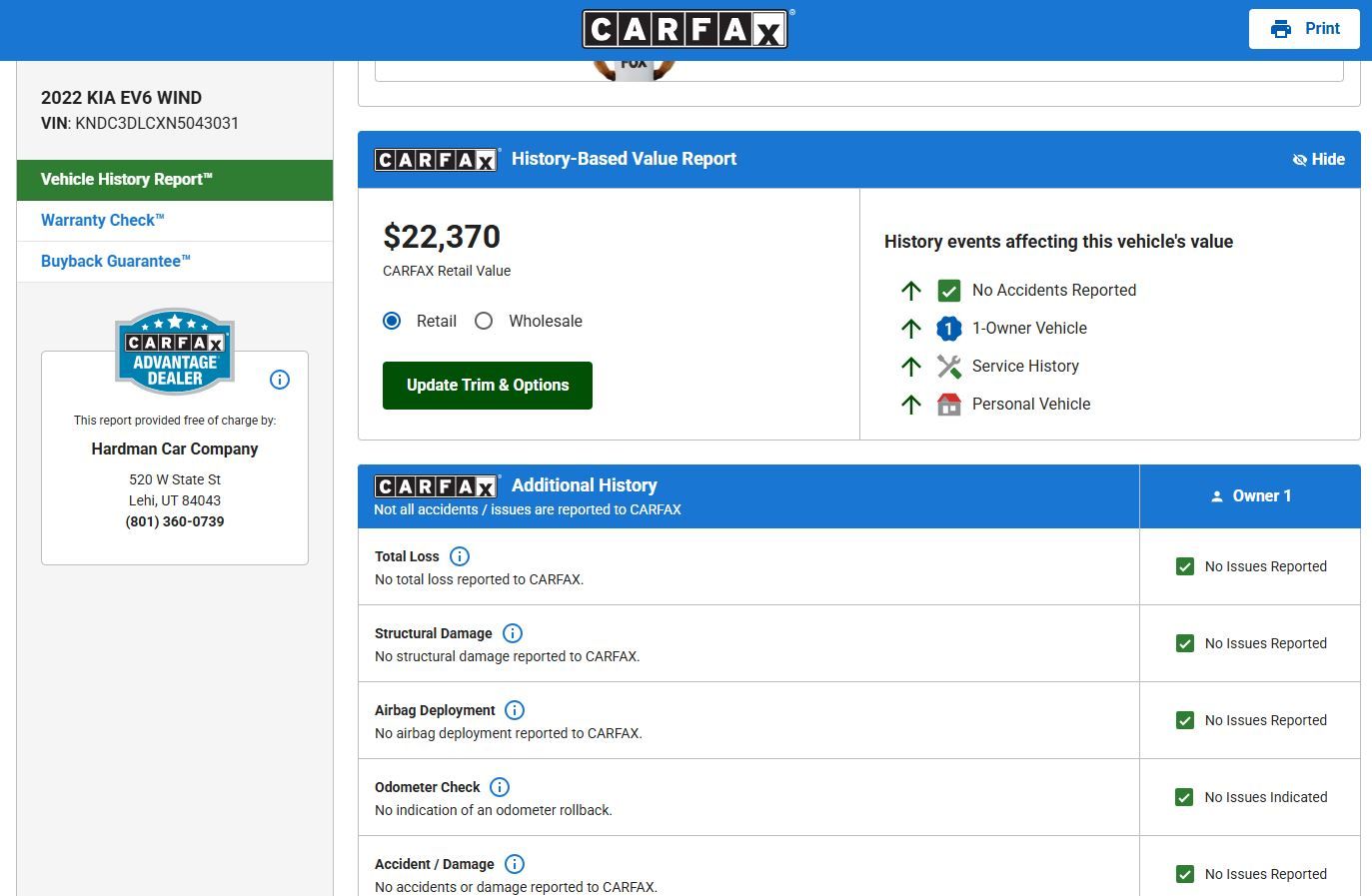 2022 Kia EV6 Wind! One-Owner, Clean Carfax!