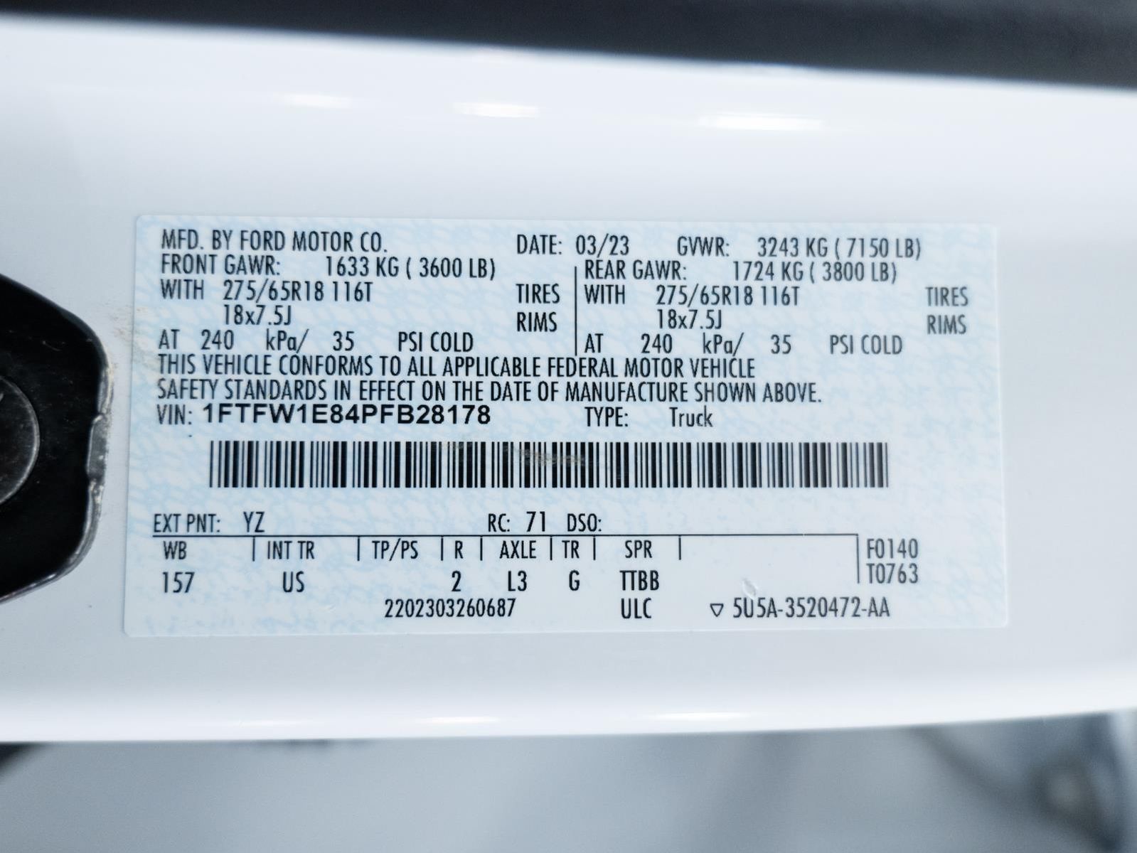 This 2023 Ford F-150 XLT, has a Oxford White exterior and an Medium Dark Slate interior color. 82,420 miles. Stock Number WJP22029. You can connect with us by calling .