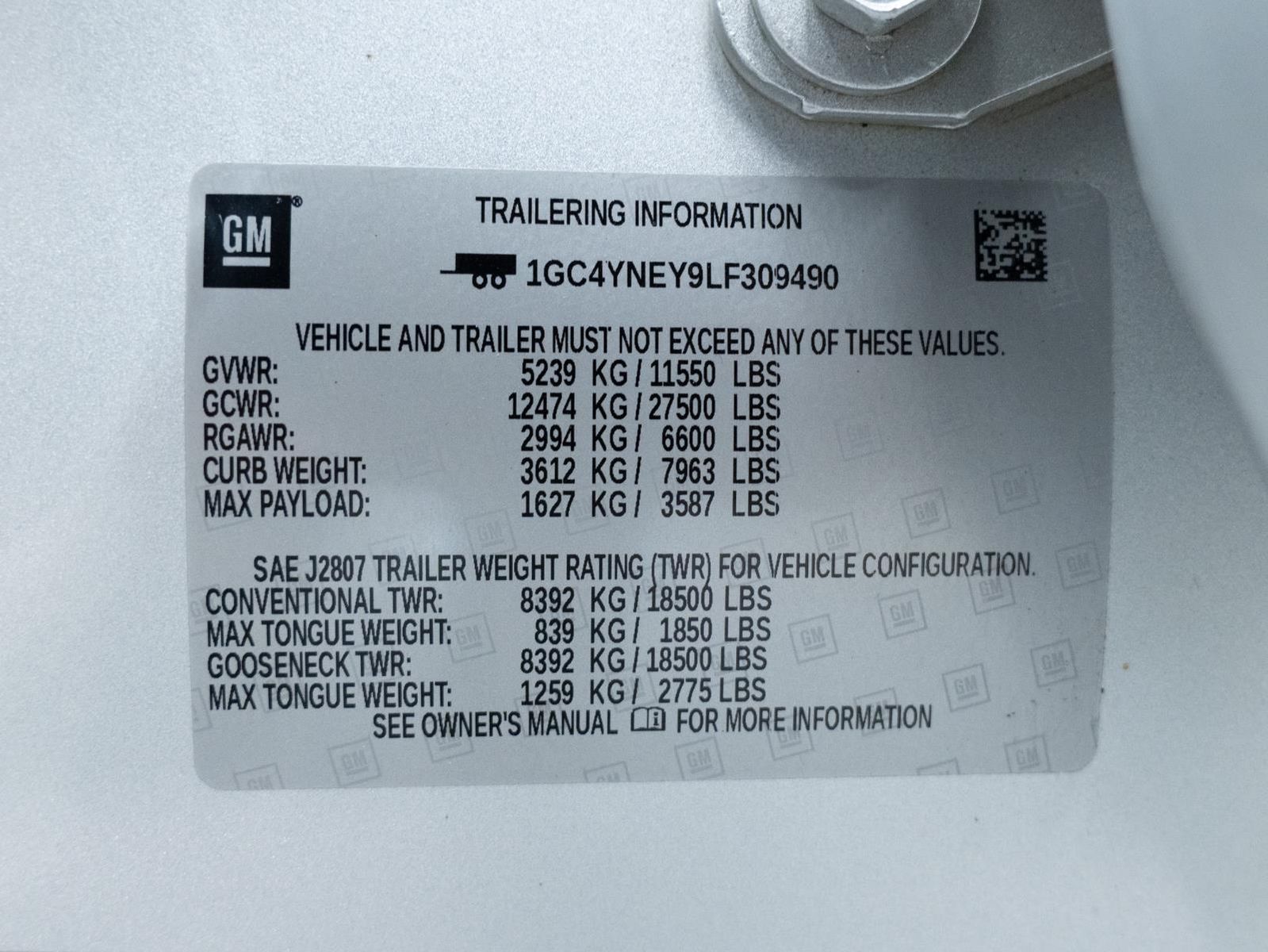GVWR 11550 LBS. (5239 KG)