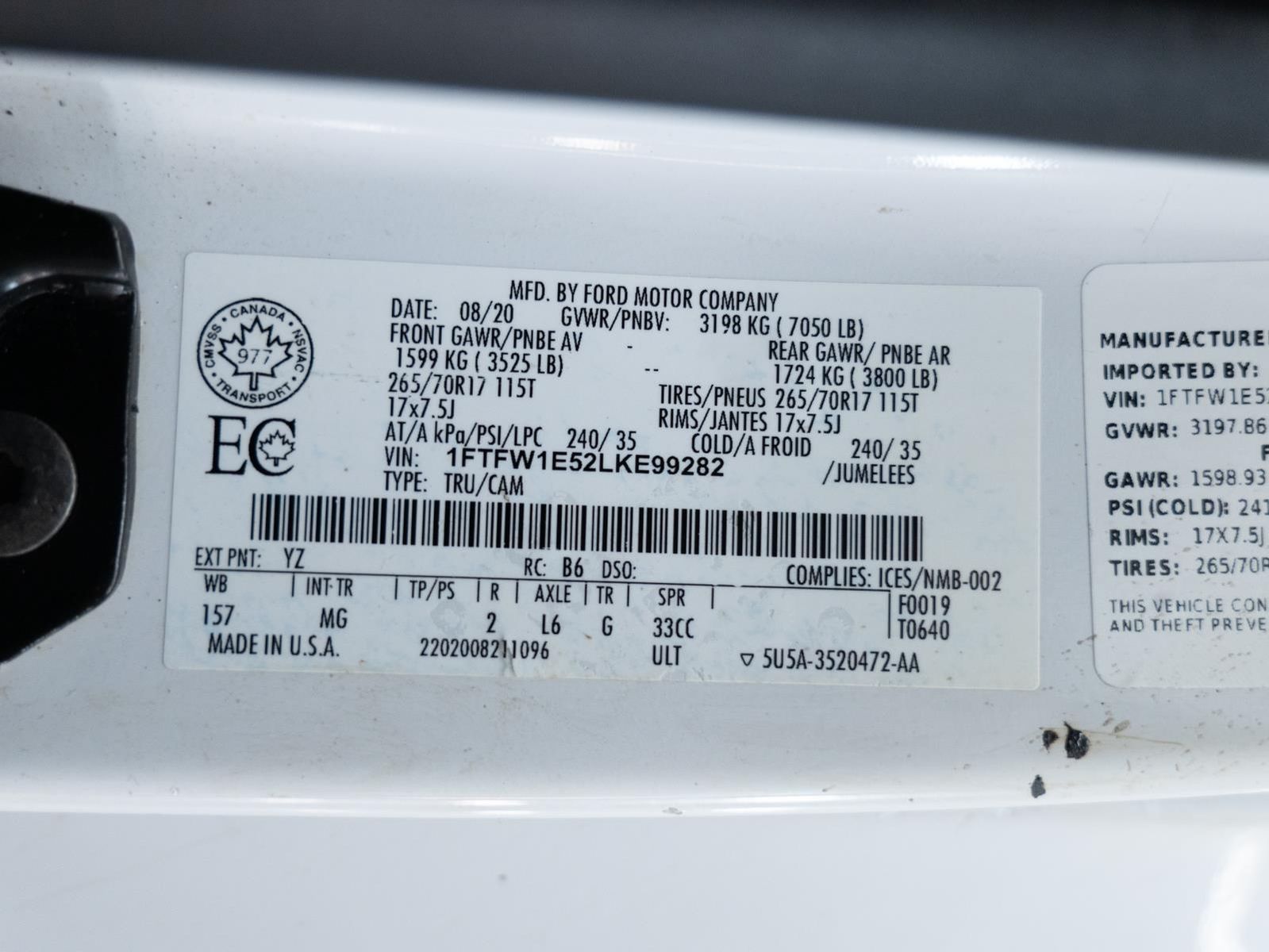 Heavy-Duty Payload Package ($1,500 value)18" Silver Heavy-Duty Payload WheelsExtended Range 36 Gallon Fuel Tank7,850 lbs Payload Package GVWRLT275/65R18C OWL A/T TiresElectronic Locking with 3.73 Axle RatioTrailer Tow Package ($995 value)Pro Trailer Backup AssistUpgraded Front Stabilizer BarEngine Oil CoolerClass IV Trailer Hitch ReceiverEquipment Group 301A Mid ($1,150 value)Electronic 10-Speed Automatic TransmissionRear Window DefrosterSiriusXM Radio4.2" Productivity Screen in Instrument Cluster5.0L V8 EngineFixed Backlight with Privacy GlassCloth 40/20/40 Front SeatAuto-Dimming Rearview Mirror8-Way Power Driver SeatPower-Adjustable PedalsRear Under-Seat Storage7,050 lbs Payload Package GVWRAM/FM Stereo with 6 Speakers3.31 Axle RatioSkid Plates ($160 value)Rear Window Defroster ($220 value)Spray-In Bed Liner ($595 value)3.73 Electronic Locking Axle Ratio ($570 value)Remote Start System ($195 value)Black Platform Running Boards ($250 value)8-Way Power Drivers Seat w/Power Lumbar ($350 value)Class IV Trailer Hitch ($150 value)Includes Class IV trailer hitch, 4-pin and 7-pin wiring, smart trailer tow connector, and towing capability up to 5,000 lbs. on 3.5L Ti-VCT engine and 2.7L EcoBoost engine, and 7,000 lbs. on 3.5L EcoBoost engine and 5.0L V8 engine.