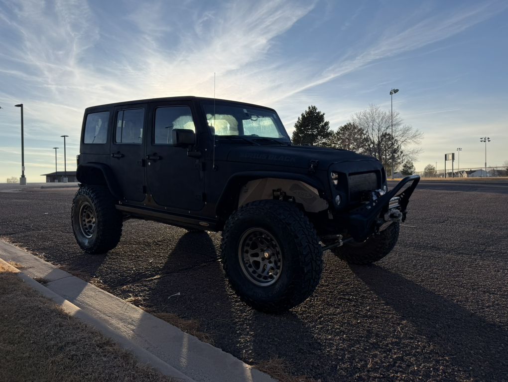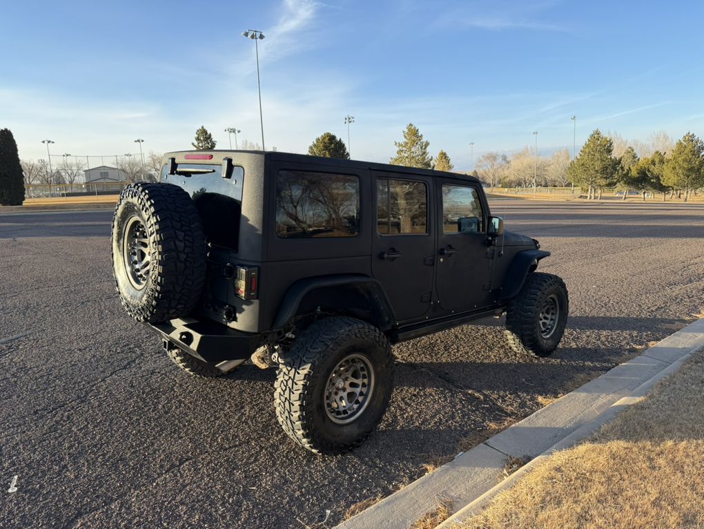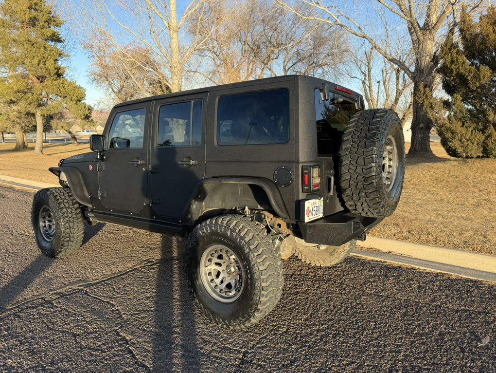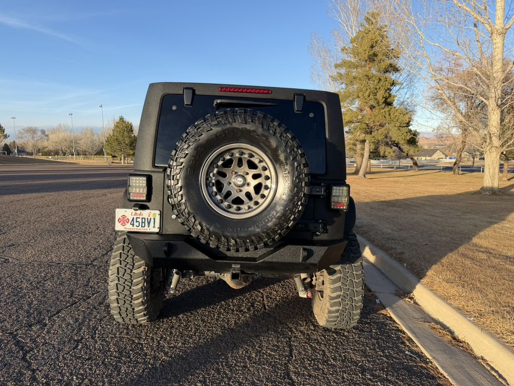 Full body raptor lined. Hard top. Warn winch. Smittybuilt steel bumpers front and rear. Rock Monster internal bead lock wheels. 37” tires. Falcon adjustable shocks and steering stabilizer. King bump stops. Trussed Dana 44 axels with 5:13 gears. After-market improved transfer case shift linkage. Rock sliders and skid plates. LED head lights and tail lights with heater grids. Battery kill switch. On board ARB twin compressor. Rigid light bar. Leather heated seats. Stick Alpine stereo, speakers and sub. Tinted windows. Custom handy-man jack, axe and shovel bracket that hangs them between the roll cage. A bag with recovery equipment, snatch block, straps, shackles, compressor air hose, Milton tire inflator, etc. Comes with a nice steel and aluminum full length roof rack (not currently installed because I liked being able to take the top off). A really capable Jeep and a blast to own.