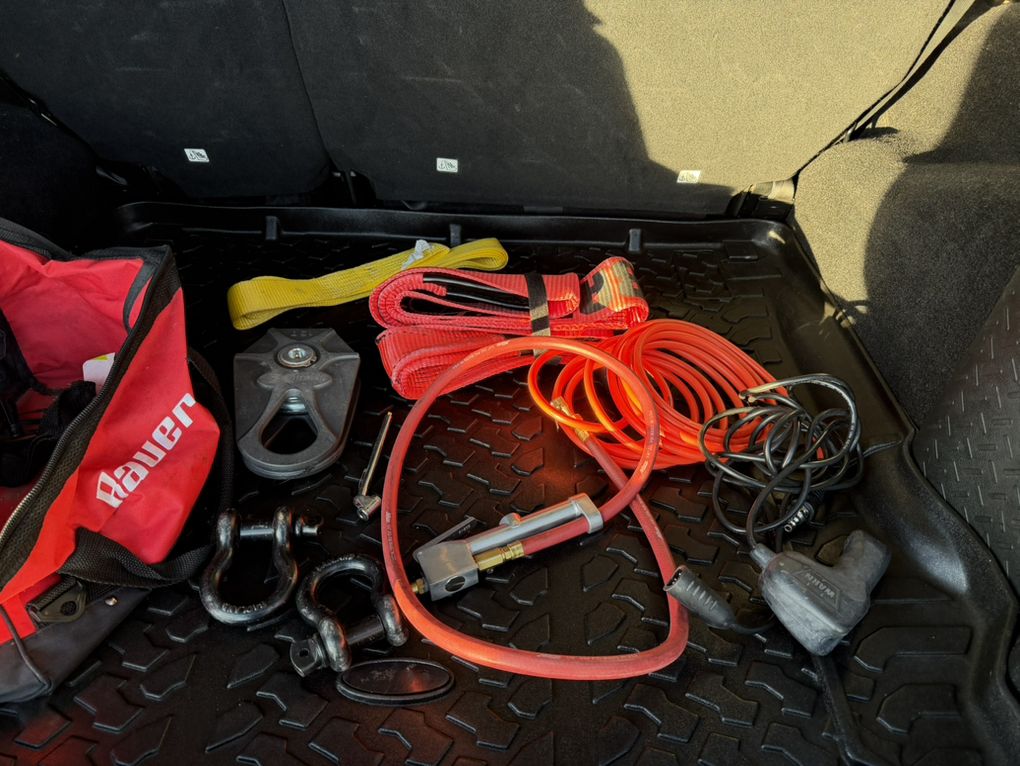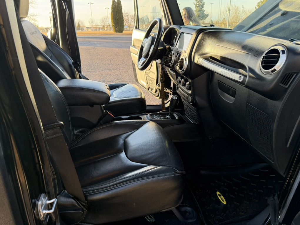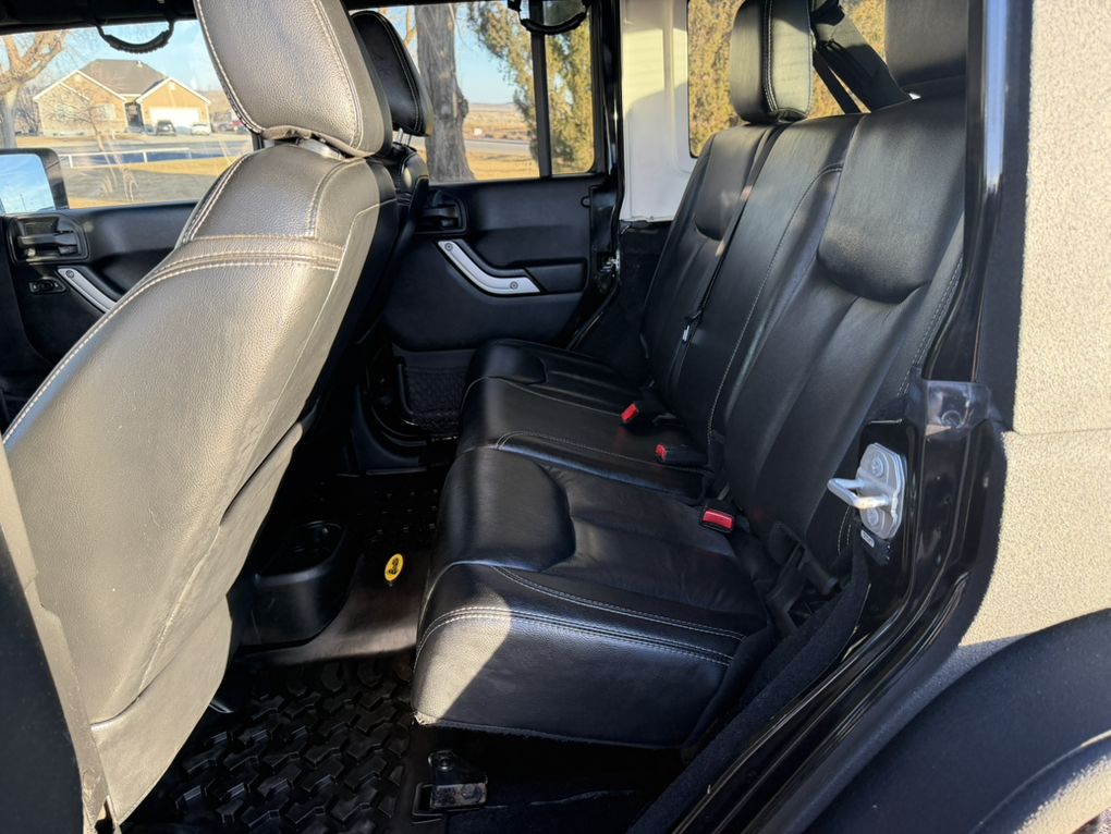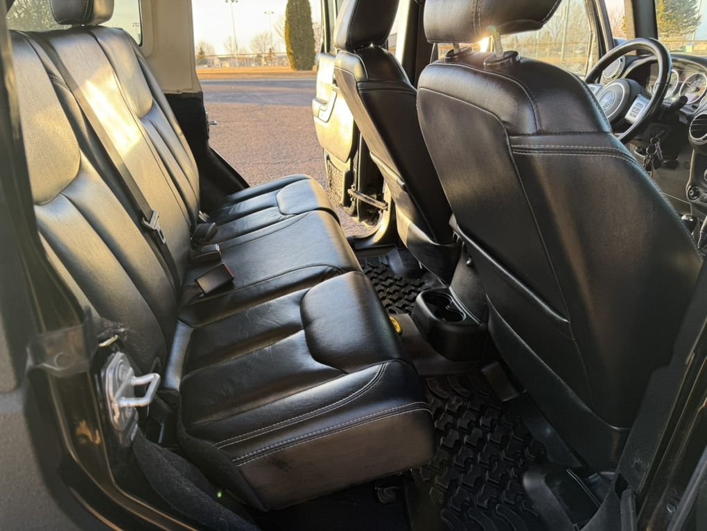 Full body raptor lined. Hard top. Warn winch. Smittybuilt steel bumpers front and rear. Rock Monster internal bead lock wheels. 37” tires. Falcon adjustable shocks and steering stabilizer. King bump stops. Trussed Dana 44 axels with 5:13 gears. After-market improved transfer case shift linkage. Rock sliders and skid plates. LED head lights and tail lights with heater grids. Battery kill switch. On board ARB twin compressor. Rigid light bar. Leather heated seats. Stick Alpine stereo, speakers and sub. Tinted windows. Custom handy-man jack, axe and shovel bracket that hangs them between the roll cage. A bag with recovery equipment, snatch block, straps, shackles, compressor air hose, Milton tire inflator, etc. Comes with a nice steel and aluminum full length roof rack (not currently installed because I liked being able to take the top off). A really capable Jeep and a blast to own.