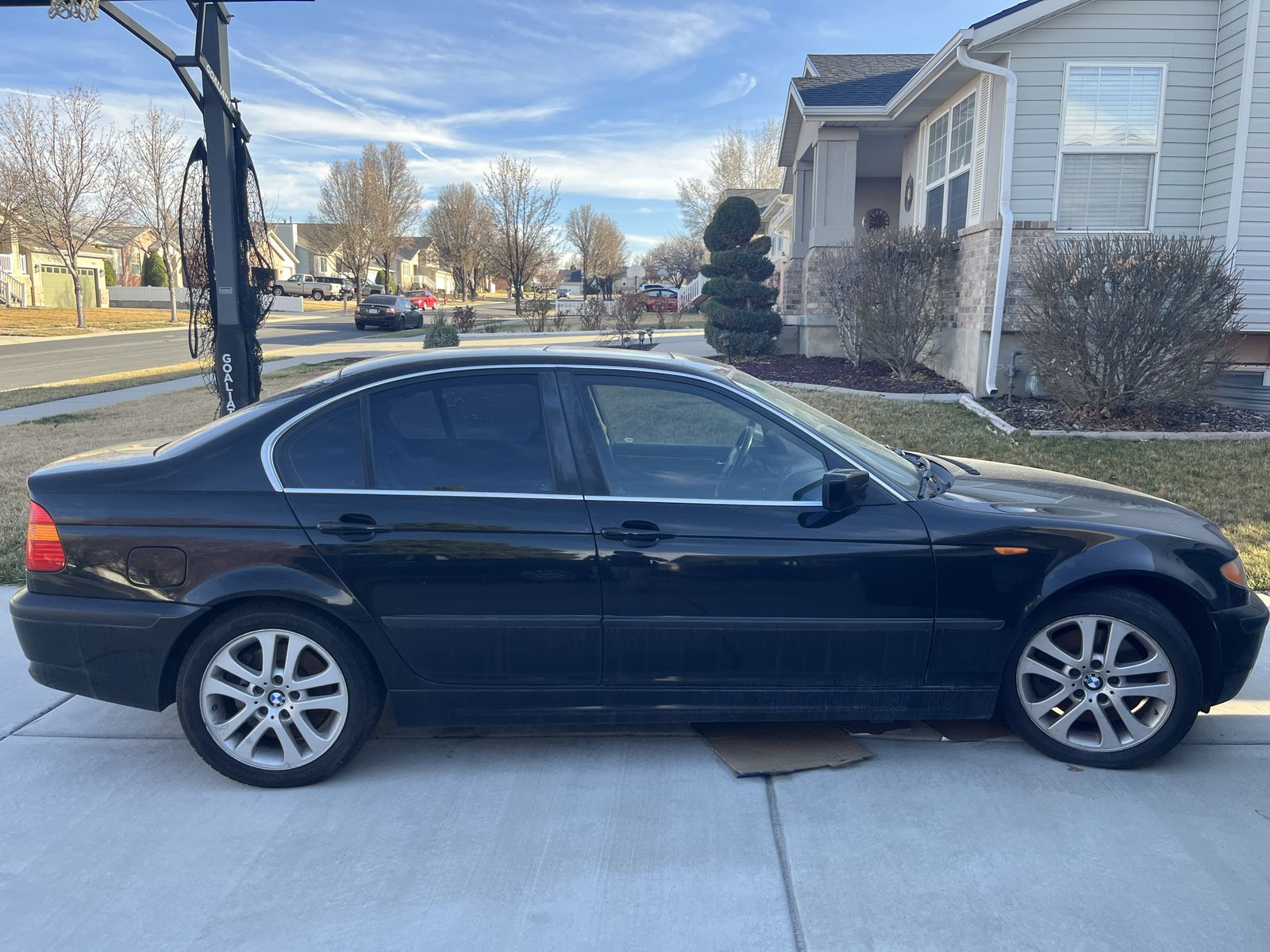 Selling my 2003 BMW 330xi. The car has been parked since July last year and needs some mechanical work. Currently, the Check Engine light is on, and there are some fluid leaks. There is a noise coming from the driver-side suspension while driving, and a 'clunking' sound when shifting from Park to Drive or Reverse. The battery is weak from sitting and will need a jump/charge to start. I simply don’t have the time to work on it and need the funds for college. Sold as-is.