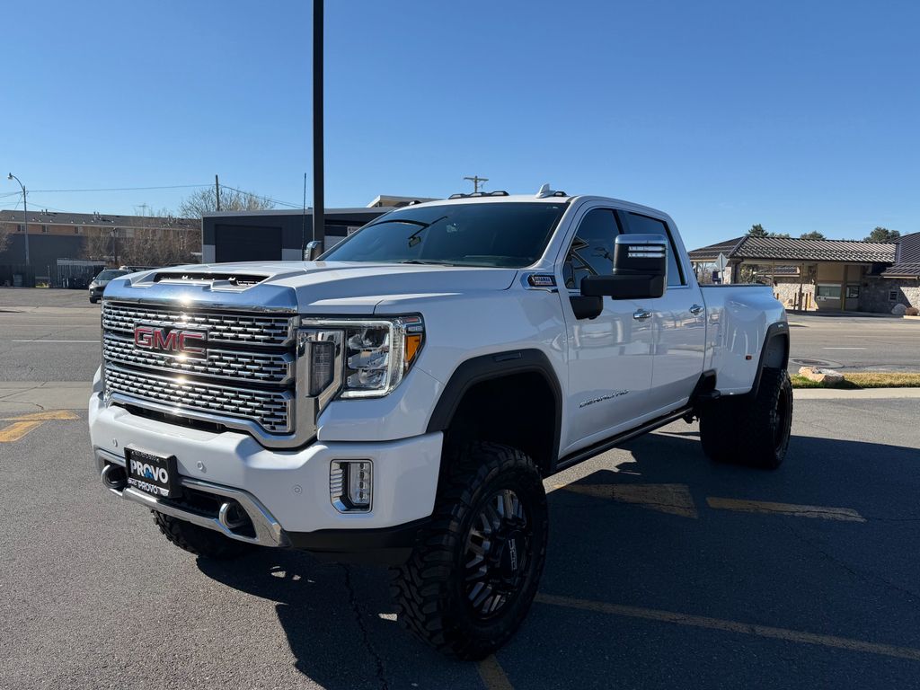 Technology Package: Multicolor 15" Diagonal Head-Up Display; Auto-Dimming Inside Rearview Mirror with Camera,Denali Ultimate Package: Power Sunroof,Preferred Equipment Group 5SA: 2 USB Ports (first Row); Power Sliding Rear Window with Defogger; Safety Alert Seat; Ultrasonic Front and Rear Park Assist; Electric Rear-Window Defogger; Wireless Phone Projection; Signature Denali Grille with High Gloss Black Mesh; Unauthorized Entry Theft-Deterrent System; 120-Volt Instrument Panel Power Outlet; LED Smoked Amber Roof Marker Lamps; 17" Forged Polished Aluminum Wheels; Heated Driver and Front Outboard Passenger Seats; Wireless Charging; OnStar and GMC Connected Services Capable; Heated 2nd Row Outboard Seats; Power Front Passenger Windows with Express Up/down; Power Rear Windows with Express Down; Integrated Trailer Brake Controller; Ventilated Driver and Front Passenger Seats; Manual Tilt-Wheel/telescoping Steering Column; HD Rear Vision Camera; LED Cargo Area Lighting; Remote Vehicle Starter System; Floor-Mounted Center Console; Bed View Camera with Two Trailer Camera Provisions; Compass Located in Instrument Cluster; HD Surround Vision with 2 Trailer View Camera Provisions; Electrical Lock Control Steering Column; Driver Alert Package II; Front Chrome Recovery Hooks; Steering Wheel Audio Controls; GMC Connected Access Capable; Universal Home Remote; Driver Alert Package I; 120-Volt Bed Mounted Power Outlet; 2-Speed Active Transfer Case; Deep-Tinted Glass; Spray-On Pickup Bed Liner with Denali Logo; AM/FM Stereo with Premium GMC Infotainment System and Navigation; Power Front Windows with Driver Express Up/down; 2nd Row Dual USB Charge-Only Ports; Keyless Open and Start; Wi-Fi Hotspot Capable; ProGrade Trailering System; 6" Rectangular Chromed Tubular Assist Steps; 12-Volt Rear Auxiliary Power Outlet; 2 USB Ports Inside Console; Polished Exhaust Tip; Power Door Locks,3 Years of OnStar & Connected Services Plan,Power-Retractable Assist Steps,White Frost Tricoat,Power Sunroof,Gooseneck/5th Wheel Prep Package,LT235/80R17E AT BW Tires,Trailer Tire Pressure Monitor Sensors,Apple CarPlay/Android Auto smart device wireless mirroring,Forward Collision Alert with Automatic Braking,Wi-Fi Hotspot capable mobile hotspot internet access,HD Rear Vision Camera rear mounted camera,Head-up display,Predictive brake assist system,Cruise control with steering wheel mounted controls,Ventilated driver and front passenger seats,Integrated navigation system with voice activation,Keyfob remote start,Heated steering wheel,Heated driver and front passenger seats,Heated rear seats,Leather front seat upholstery,Primary monitor touchscreen,Lane Departure Warning,Rear Cross-Traffic Alert collision warning,First-row sliding and tilting glass sunroof with express open/close activation sunshade,17 x 6.5-inch front and dual rear polished forged aluminum wheels,Driver seat power reclining, lumbar support, cushion tilt, fore/aft control and height adjustable control,AutoTrac part and full-time 4WD,Duramax 6.6L V-8 diesel direct injection, intercooled turbo, diesel, engine with 445HP,Duramax 6.6L V-8,Front wireless smart device charging,Teen Driver restricted driving mode/alerts,Keyless Open/Keyless Start with hands-free access and push button start,Keyfob window control,HD Surround Vision w/Hitch View aerial view camera,Push-button,Video-feed rearview mirror,Stolen Vehicle Assistance vehicle tracker with vehicle slowdown,Bluetooth wireless audio streaming,Vehicle to trailer hitching assist,Front mounted camera,Right side camera,Pickup box camera,Left side camera,Lane Change Alert with Side Blind Zone Alert blind spot warning,Following Distance Indicator,GMC ProGrade Trailering System trailer tire pressure sensors,Trailer light test,Trailer light malfunction warning,Trailer theft alarm,Dual-zone front climate control,IntelliBeam auto high-beam headlights,Immobilizer,Bose speakers,OnStar and GMC connected services capable vehicle integrated emergency SOS system,Bluetooth handsfree wireless device connectivity,Trailer brake controller