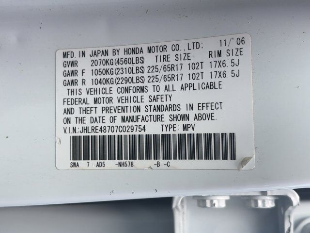 AWD. Recent Arrival!Clean CARFAX.Larry H. Miller Honda Murray offers this 2007 White Honda CR-V EX-L AWD It is loaded with many standard and optional features including: AWD, 17 Alloy Wheels, 4-Wheel Disc Brakes, 4.50 Axle Ratio, ABS brakes, Air Conditioning, Alloy wheels, AM/FM radio: XM, Anti-whiplash front head restraints, Brake assist, Bumpers: body-color, CD player, Driver door bin, Driver vanity mirror, Driver's Seat Mounted Armrest, Dual front impact airbags, Dual front side impact airbags, Electronic Stability Control, Four wheel independent suspension, Front anti-roll bar, Front Bucket Seats, Front reading lights, Heated door mirrors, Heated front seats, Heated Reclining Front Bucket Seats, Illuminated entry, Leather Seat Trim, Leather Shift Knob, Low tire pressure warning, Occupant sensing airbag, Outside temperature display, Overhead airbag, Overhead console, Panic alarm, Passenger door bin, Passenger seat mounted armrest, Passenger vanity mirror, Power door mirrors, Power moonroof, Power steering, Power windows, Rear anti-roll bar, Rear seat center armrest, Rear window defroster, Rear window wiper, Remote keyless entry, Security system, Speed control, Speed-sensing steering, Speed-Sensitive Wipers, Split folding rear seat, Steering wheel mounted audio controls, Tachometer, Telescoping steering wheel, Tilt steering wheel, Traction control, Trip computer, and Variably intermittent wipers.Awards:* 2007 KBB.com Best Resale Value AwardsFor more information, visit www.kbb.com. Kelley Blue Book is a registered trademark of Kelley Blue Book Co., Inc.