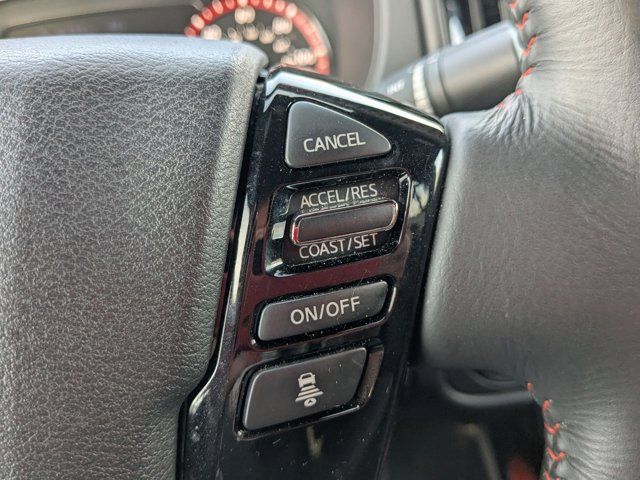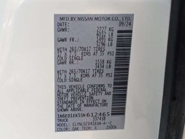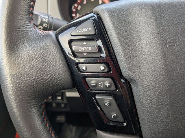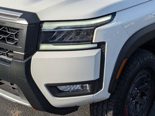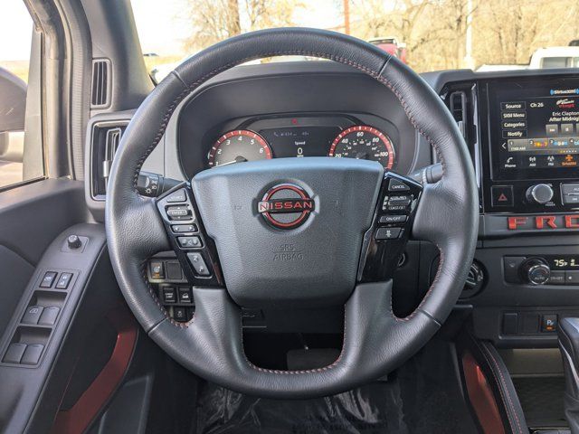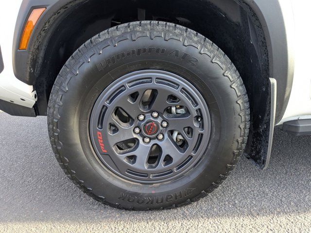 [M92] ESSENTIALS KIT -inc: adventure medic kit off-road adventure kit seatback organizer and owner's manual portfolio,[F92] ELECTRONIC TAILGATE LOCK,[H02] TELEMATICS DELETE PACKAGE -inc: NissanConnect Services & Wi-Fi Hotspot Delete,[K94] SPLASH GUARDS,[L11] PRO-4X CARPETED FLOOR MATS,[N10] REMOTE ENGINE STARTER ACCESSORY -inc: Remote Engine Starter,CHARCOAL W/LAVA RED ST PRO EMBROIDERED PREMIUM CLOTH SEAT TRIM,GLACIER WHITE,[B93] OFF-ROAD STYLE STEP RAILS,Four Wheel Drive,Locking/Limited Slip Differential,Power Steering,ABS,4-Wheel Disc Brakes,Brake Assist,Locking/Limited Slip Differential,Brake Actuated Limited Slip Differential,Aluminum Wheels,Tires - Front All-Terrain,Tires - Rear All-Terrain,Conventional Spare Tire,Tow Hooks,Power Mirror(s),Sliding Rear Window,Privacy Glass,Intermittent Wipers,Variable Speed Intermittent Wipers,Power Door Locks,Automatic Highbeams,Fog Lamps,Daytime Running Lights,Automatic Headlights,LED Headlights,AM/FM Stereo,Satellite Radio,MP3 Capability,Steering Wheel Audio Controls,Bluetooth Connection,Auxiliary Audio Input,Smart Device Integration,Requires Subscription,MP3 Capability,Bluetooth Connection,Power Driver Seat,Power Passenger Seat,Bucket Seats,Driver Adjustable Lumbar,Pass-Through Rear Seat,Rear Bench Seat,Adjustable Steering Wheel,Trip Computer,Power Windows,Leather Steering Wheel,Keyless Entry,Power Door Locks,Keyless Entry,Power Door Locks,Keyless Start,Cruise Control,Adaptive Cruise Control,Climate Control,Multi-Zone A/C,A/C,Cloth Seats,Driver Vanity Mirror,Passenger Vanity Mirror,Driver Illuminated Vanity Mirror,Passenger Illuminated Visor Mirror,Smart Device Integration,Power Windows,Sliding Rear Window,Power Door Locks,Trip Computer,Immobilizer,Security System,Traction Control,Stability Control,Traction Control,Front Side Air Bag,Telematics,Requires Subscription,Rear Parking Aid,Blind Spot Monitor,Cross-Traffic Alert,Rear Collision Mitigation,Lane Departure Warning,Front Collision Mitigation,Driver Monitoring,Tire Pressure Monitor,Driver Air Bag,Passenger Air Bag,Front Head Air Bag,Rear Head Air Bag,Passenger Air Bag Sensor,Front Side Air Bag,Rear Side Air Bag,Knee Air Bag,Child Safety Locks,Back-Up Camera