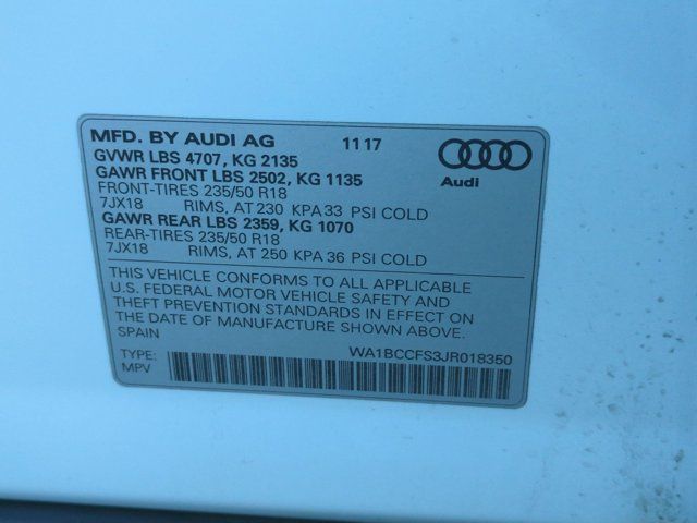 Clean CARFAX. Glacier White 2018 Audi Q3 2.0T Premium FrontTrak 6-Speed Automatic with Tiptronic 2.0L 4-Cylinder TFSI 10 Speakers, 4-Wheel Disc Brakes, ABS brakes, Air Conditioning, Alloy wheels, AM/FM radio: SiriusXM, Audi Beam-Rings, Automatic temperature control, Axle Ratio: TBD, Black HomeLink, Brake assist, Bumpers: body-color, CD player, Delay-off headlights, Driver door bin, Driver vanity mirror, Dual front impact airbags, Dual front side impact airbags, Electronic Stability Control, Exterior Parking Camera Rear, Four wheel independent suspension, Front anti-roll bar, Front Bucket Seats, Front Center Armrest, Front dual zone A/C, Front fog lights, Front reading lights, Fully automatic headlights, Heated door mirrors, Heated front seats, High intensity discharge headlights: Xenon plus, Illuminated entry, Leather Seating Surfaces, Leather Shift Knob, Leather steering wheel, Low tire pressure warning, Occupant sensing airbag, Outside temperature display, Overhead airbag, Overhead console, Panic alarm, Passenger door bin, Passenger vanity mirror, Power door mirrors, Power driver seat, Power moonroof, Power passenger seat, Power steering, Power windows, Radio data system, Rain sensing wipers, Rear anti-roll bar, Rear fog lights, Rear reading lights, Rear seat center armrest, Rear window defroster, Rear window wiper, Remote keyless entry, Roof rack: rails only, Security system, Speed control, Speed-sensing steering, Split folding rear seat, Spoiler, Steering wheel mounted audio controls, Tachometer, Telescoping steering wheel, Tilt steering wheel, Traction control, Trip computer, Turn signal indicator mirrors, Variably intermittent wipers.Recent Arrival! 20/28 City/Highway MPGAwards: * 2018 KBB.com 10 Best Luxury Cars Under $35,000 * 2018 KBB.com 10 Most Awarded Brands