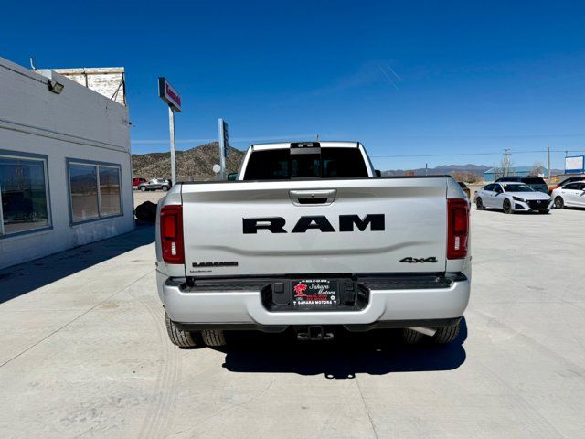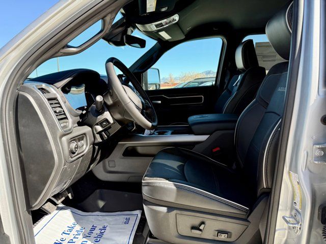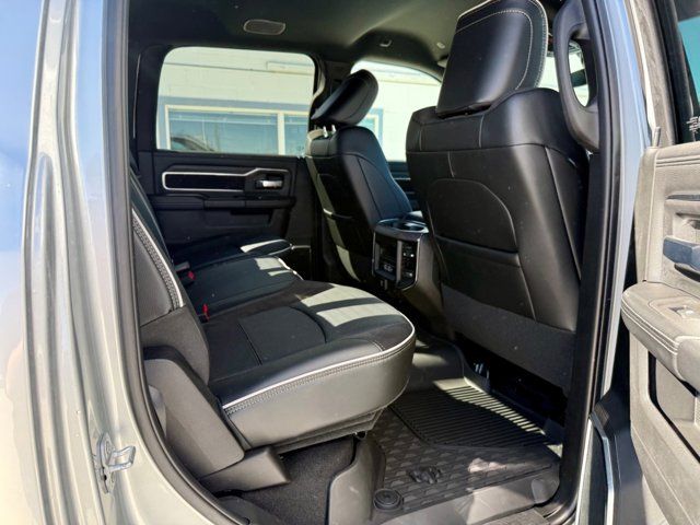 WHEELS: 17 X 6.0 BLACK MACHINED ALUMINUM DRW,50 GALLON FUEL TANK,AUTO LEVEL REAR AIR SUSPENSION,NIGHT EDITION -inc: Firestone Brand Tires Black Exterior Truck Badging Gloss Black Grille Billets/Accents Body Color Grille Surround Sport Performance Hood Black Exterior Mirrors,GVWR: 14 000 LB,BLACK LEATHER TRIMMED BUCKET SEATS -inc: Bucket Seats Dual Wireless Charging Pad Ventilated Front Seats Radio/Driver Seat/Mirrors/Pedals Memory Full Length Upgraded Floor Console,TOWING TECHNOLOGY GROUP -inc: CTR Stop Lamp w/Cargo View Camera MOPAR Trailer Camera Wiring w/No Camera Surround View Camera System Trailer Tire Pressure Monitoring System Trailer Reverse Guidance,MANUFACTURER'S STATEMENT OF ORIGIN,LARAMIE LEVEL 1 PLUS EQUIPMENT GROUP -inc: CTR Stop Lamp w/Cargo View Camera Rain Sensitive Windshield Wipers Power Adjustable Pedals w/Memory LED Bed Lighting Traffic Sign Recognition Adaptive Steering System Auto Dimming Exterior Mirrors Drowsy Driver Detection MOPAR Deployable Bed Step Foam Bottle Insert (Door Trim Panel) Active Lane Management System Power Heat Fold Memory Telescopic Mirrors MOPAR Spray In Bedliner Remote Tailgate Release Auto High Beam Headlamp Control Exterior Mirrors w/Memory 2nd Row In Floor Storage Bins Auto Dimming Exterior Passenger Mirror Auto Adjust In Reverse Exterior Mirrors,CLEARANCE LAMPS,MOPAR FRONT & REAR RUBBER FLOOR MATS,5TH WHEEL/GOOSENECK TOWING PREP GROUP,TIRES: LT235/80R17E BSW ALL SEASON,TRANSFER CASE SKID PLATE SHIELD,CTR STOP LAMP W/CARGO VIEW CAMERA,ENGINE: 6.7L I6 CUMMINS HO TURBO DIESEL -inc: Selective Catalytic Reduction (Urea) Dual 730 Amp Maintenance Free Batteries Cummins Turbo Diesel Badge Heavy Duty Engine Cooling Current Generation Engine Controller Diesel Exhaust Brake Supplemental Heater 3.42 Axle Ratio Front Bumper Sight Shields Capless Fuel Fill w/o Discriminator,QUICK ORDER PACKAGE 24H LARAMIE -inc: Engine: 6.7L I6 Cummins HO Turbo Diesel Transmission: 8-Speed TorqueFlite HD Automatic,TRANSMISSION: 8-SPEED TORQUEFLITE HD AUTOMATIC,DUAL REAR WHEELS -inc: Clearance Lamps Tires: LT235/80R17E BSW All Season 17 Steel Spare Wheel Box & Rear Fender Clearance Lamps Center Hub 6000# Front Axle w/Hub Ext Wheels: 17 x 6.0 Polished Aluminum Nexen Brand Tires GVWR: 14 000 lb,FRONT LICENSE PLATE BRACKET,ENGINE BLOCK HEATER,SILVER ZYNITH,3.42 AXLE RATIO,Four Wheel Drive,Tow Hitch,Power Steering,ABS,4-Wheel Disc Brakes,Brake Assist,Locking/Limited Slip Differential,Aluminum Wheels,Conventional Spare Tire,Tow Hooks,Integrated Turn Signal Mirrors,Power Mirror(s),Power Folding Mirrors,Heated Mirrors,Rear Defrost,Intermittent Wipers,Variable Speed Intermittent Wipers,Privacy Glass,Power Door Locks,Fog Lamps,Daytime Running Lights,Automatic Headlights,LED Headlights,AM/FM Stereo,Navigation System,Satellite Radio,Bluetooth Connection,HD Radio,Requires Subscription,Premium Sound System,MP3 Capability,Steering Wheel Audio Controls,Auxiliary Audio Input,Premium Sound System,HD Radio,Satellite Radio,Requires Subscription,Heated Front Seat(s),Power Driver Seat,Power Passenger Seat,Adjustable Steering Wheel,Trip Computer,Power Windows,Driver Adjustable Lumbar,Pass-Through Rear Seat,Rear Bench Seat,Heated Steering Wheel,Keyless Entry,Power Door Locks,Keyless Entry,Power Door Locks,Keyless Start,Universal Garage Door Opener,Cruise Control,Adaptive Cruise Control,Climate Control,Multi-Zone A/C,A/C,Woodgrain Interior Trim,Leather Seats,Premium Synthetic Seats,Auto-Dimming Rearview Mirror,Driver Vanity Mirror,Passenger Vanity Mirror,Driver Illuminated Vanity Mirror,Passenger Illuminated Visor Mirror,Floor Mats,Remote Engine Start,Keyless Start,Remote Engine Start,Smart Device Integration,Requires Subscription,Navigation System,Smart Device Integration,Smart Device Integration,WiFi Hotspot,Bluetooth Connection,Power Door Locks,Power Windows,Trip Computer,Passenger Adjustable Lumbar,Immobilizer,Security System,Traction Control,Stability Control,Traction Control,Front Side Air Bag,Front Collision Mitigation,Rear Parking Aid,Blind Spot Monitor,Cross-Traffic Alert,Tire Pressure Monitor,Driver Air Bag,Passenger Air Bag,Passenger Air Bag Sensor,Front Head Air Bag,Rear Head Air Bag,Child Safety Locks,Back-Up Camera