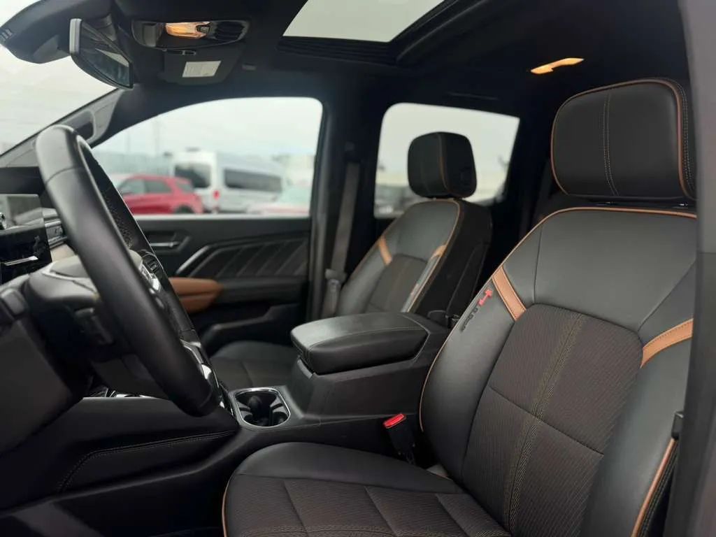 Front Pedestrian Automatic emergency braking, Front Automatic emergency braking, Lane keeping assist with blind spot integration, Lane keeping assist, Check rear seat reminder, Pedestrian Detection Rear pre-collision warning system, Audible Warning Pre-collision warning system, Visual Warning Pre-collision warning system, Lane deviation sensors, Rearview Camera system, Trailer Rearview Camera system, Front Side airbags, Rear Side curtain airbags, Front Side curtain airbags, 4-wheel ABS, Anti-lockout Power door locks, Auto-locking Power door locks, Programmable safety key, Hill Descent Off-road driving assist, Trailer stability control, Ventilated Disc Rear brake, Alarm Anti-theft system, Braking assist, Hill holder control, Ventilated Disc Front brake, Dual Front airbags, Vehicle Immobilizer Anti-theft system, Power brakes, LATCH System Child seat anchors, Electronic brakeforce distribution, Stability control, Traction control, In Dash Rearview monitor, Occupant Sensing Passenger Airbag deactivation, Front Seatbelt pretensioners, Front Seatbelt force limiters, Front Emergency locking retractors, Alert System Impact sensor, Front Seatbelt warning sensor, Power Glass Moonroof / Sunroof, Aluminum Alloy With Painted Accents Wheels, LED Headlights, Auto High Beam Dimmer Headlights, LED Daytime running lights, LED Taillights, LED Front fog lights, Safety Reverse Power windows, Power Locking Tailgate, Power Side mirror adjustments, Heated Side mirrors, Steel Spare wheel, Rear Window defogger, Variable Intermittent Front wipers, Lift Assist Tailgate, Tire Pressure Monitoring System, Manual Pickup sliding rear window, Auto On/off Headlights, Auto Delay Off Headlights, Temporary Spare tire size, Pickup bed light, Black Fender lip moldings, Rear Integrated Corner Step Bumper detail, Wiper Activated Headlights, Polished Aluminum Exhaust tip color, Black Window trim, Black Mirror color, Manual Folding Side mirror adjustments, Black Grille color, Hotspot Wi-Fi, Hard Drive Navigation system, Touch Screen Display Navigation system, Voice Operated Navigation system, Bose Premium brand, Wireless Apple CarPlay Smartphone integration, Wireless Android Auto Smartphone integration, 11.3 In. Infotainment screen size, MyGMC With Connected Access Smart device app compatibility, Amazon Alexa Smart device app compatibility, OnStar Guardian Smart device app compatibility, Bluetooth Wireless data link, Voice Operated Hands-free phone call integration, Voice Operated Radio, Bluetooth Auxiliary audio input, Engine Start Smart device app function, Touch Screen Display Radio, Real Time Traffic Navigation data, App Marketplace Integration Connected in-car apps, With Read Function Electronic messaging assistance, Voice Operated Electronic messaging assistance, SiriusXM Satellite radio, 6 Total speakers, USB Auxiliary audio input, IPod/iPhone Auxiliary audio input, OnStar Satellite communications, Voice Guided Directions Satellite communications, Vehicle Location Smart device app function, Lock Operation Smart device app function, GMC Infotainment System Infotainment, Security Event/collision Alert Smart device app function, Horn/light Operation Smart device app function, Maintenance Status Smart device app function, Maintenance Scheduling Smart device app function, Jack Auxiliary audio input, Roadside Assistance Driver assistance app, AM/FM Radio, Radio data system, Speed sensitive volume control, Google POIs Connected in-car apps, Google Search Connected in-car apps, Send Destination To Vehicle Navigation data, Automatic Climate Control Front air conditioning, Dual Front air conditioning zones, 8 Driver seat power adjustments, Push-button start, Heated Driver seat, Remote engine start, Heated Passenger seat, Auto-dimming Rearview mirror, Variable/speed-proportional Power steering, Cruise control, Cloth Upholstery, Bucket Front seat, Leatherette Steering wheel trim, Chrome Interior accents, Keyless Entry Multi-function remote, 8 In. Instrument cluster screen size, 115V Cargo Area Power outlet(s), 115V Rear Power outlet(s), Carpet Floor mat material, Bench Rear seat, Air filtration, Capless fuel filler system, Folds Up Rear seat folding, USB Front Power outlet(s), USB Rear Power outlet(s), 12V Front Power outlet(s), Tilt And Telescopic Steering wheel, Second Row Rear vents, Rear Floor mats, Front Floor mats, Multi-function display, Oil Pressure Gauge, Front Console With Armrest And Storage Center console, Compass, External temperature display, MPG Fuel economy display, Range Fuel economy display, Front Reading lights, Tachometer Gauge, Lumbar Driver seat power adjustments, Reclining Driver seat power adjustments, Lockbox Storage, Height Driver seat power adjustments, Front Cupholders, Maintenance Due Warnings and reminders, Dual Illuminating Vanity mirrors, 1 One-touch windows, Panic Alarm Multi-function remote, Audio Steering wheel mounted controls, Carpet Floor material, Cruise Control Steering wheel mounted controls, Phone Steering wheel mounted controls, Multi-function Steering wheel mounted controls, Voice Control Steering wheel mounted controls, Trailer brake controller, Auto start/stop, Electronic Hi-lo 4WD selector, Part Time W/ On Demand Setting 4WD, Rear Locking differential, Trailer backup guidance, Off-road Tuned suspension, Trailer hitch, Front Tow hooks, Drive mode selector, Independent Front suspension classification, Front struts, Upper And Lower Control Arms Front suspension, Solid Live Axle Rear suspension classification, Front stabilizer bar, Battery saver, Twin-tube Gas Rear shock, Twin-tube Gas Front shock