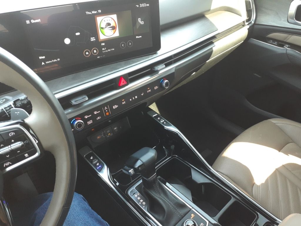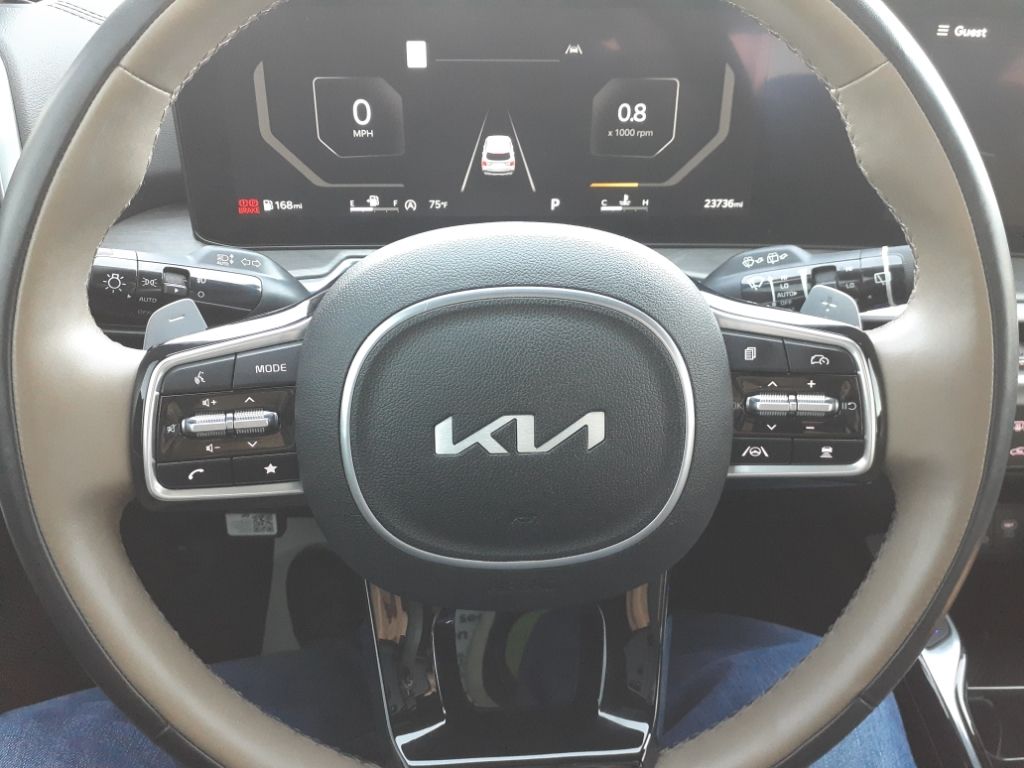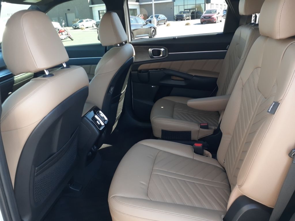 Glacial White Pearl,Olive Brown Leather Package,Carpeted Floor Mats,Folding Cargo Tray,Apple CarPlay & Android Auto smart device wireless mirroring,Forward Collision-Avoidance Assist (FCA-JT: Cyc/Ped/Junction Turning) pedestrian impact prevention,Highway Driving Assist 2 (HDA 2) Automatic curve slowdown cruise control,Mobile hotspot internet access,Rear mounted camera,Lane Keep Assist System (LKAS),Blind-Spot Collision-Avoidance Assist-Rear (BCA-R) & Parallel Exit active blind spot system,Rear Cross-Traffic Collision Avoidance (RCCA),Navigation-Based Smart Cruise Control-Ramp w/Stop & Go & Curve Control (NSCC-R) & Machine Learning (SCC-ML),Brake assist system,Cruise control with steering wheel mounted controls,Smart Power Liftgate power liftgate rear cargo door,Ventilated driver and front passenger seats,Integrated navigation system with voice activation,Keyfob remote start,Heated steering wheel,Heated driver and front passenger seats,Heated rear seats,Leather front seat upholstery,Primary monitor touchscreen,Fixed third-row seats,First and second-row sliding and tilting glass sunroof with express open/close activation sunshade,Driver seat power reclining, lumbar support, cushion extension, cushion tilt, fore/aft control and height adjustable control,DYNAMAX automatic full-time AWD,2.5L I-4 port/direct injection, DOHC, variable valve control, intercooled turbo, regular unleaded, engine with 281HP,2.5L I-4 DOHC,Front wireless smart device charging,Forward Collision-Avoidance Assist (FCA-LO/LS/JX),Driver Attention Warning (DAW),Intelligent Speed Limit Assist (ISLA) traffic sign recognition with automatic speed limit assist,Evasive Steering Assist (ESA) evasion assist system,Parking Collision Avoidance Assist - Rear (PCA-R) rear pedestrian detection prevention,Junction Crossing front cross traffic mitigation,Smart Key with hands-free access and push button start,Surround View Monitor (SVM) aerial view camera,Blind-Spot View Monitor (BVM) left and right blind spot view,Smart device remote start,Push-button,Automatic brake hold,Video-feed rearview mirror,Bluetooth wireless audio streaming,Power rear child safety door locks,Digital Key 2.0 Advanced smart device-as-key proximity door locks,Gauge cluster display size: 12.30,Smart Liftgate proximity cargo area access release,Front mounted camera,Right side camera,Left side camera,Safe Exit Warning (SEW) external exit warning system,Dual-zone front climate control,4-Cyl; Turbo; GDI; 2.5 Liter,Automatic; 8-Spd Dual-Clutch,AWD,Blind-Spot Collision Warning,Hill Start Assist,Traction Control,Electronic Stability Control,ABS (4-Wheel),Alarm System,Keyless Entry,Push Button Start,Air Conditioning,Power Windows,Power Door Locks,Smart Cruise Control,Power Tailgate Release,Power Steering,Tilt & Telescoping Wheel,AM/FM/HD Radio,Bose Surround Sound,SiriusXM Satellite,Navigation System,Bluetooth Wireless,Parking Distance Warning,Backup Camera,Surround View Camera,Dual Air Bags,F&R Side Air Bags,F&R Head Curtain Air Bags,Knee Air Bags,Lane Keep Assist,Heated & Ventilated Seats,Dual Power Seats,Leather,Third Row Seat,Quad Seating (4 Buckets),Panorama Roof,Daytime Running Lights,LED Headlamps,Fog Lights,Rear Spoiler,Roof Rails,Alloy Wheels