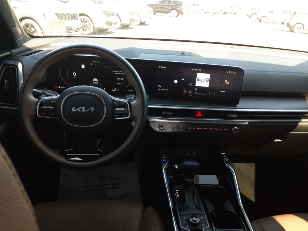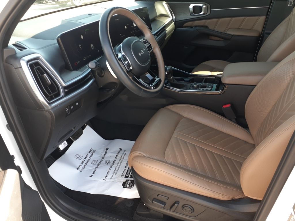 Lane Keep Assist in this unit helps maintain safe driving by gently steering to stay within the lane. The installed navigation system will keep you on the right path. It offers Apple CarPlay for seamless connectivity. This Kia Sorento is pure luxury with a heated steering wheel. Start this 2024 Kia Sorento from inside with remote start. This vehicle is a certified CARFAX 1-owner. See what's behind you with the back up camera on the vehicle. This model utilizes collision avoidance to enhance safety by automatically detecting and evading potential accidents. The leather seats in this 2024 Kia Sorento are a must for buyers looking for comfort, durability, and style. This 2024 Kia Sorento has a clean CARFAX vehicle history report. This model offers Android Auto for seamless smartphone integration. This Kia Sorento features a hands-free Bluetooth phone system. Set the temperature exactly where you are most comfortable in this 2024 Kia Sorento . The fan speed and temperature will automatically adjust to maintain your preferred zone climate.