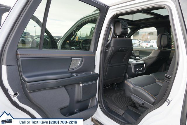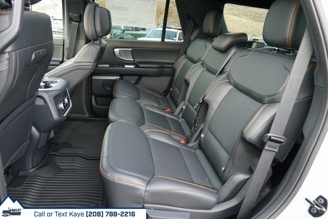 4WD, 10 Speakers, 2nd Row Power-Folding Captain's Chairs, 3.73 Axle Ratio, 3rd row seats: split-bench, 4-Wheel Disc Brakes, ABS brakes, Air Conditioning, Alloy wheels, AM/FM radio: SiriusXM with 360L, Apple CarPlay/Android Auto, Auto High-beam Headlights, Auto-dimming door mirrors, Auto-dimming Rear-View mirror, Automatic temperature control, Brake assist, Bumpers: body-color, Compass, Delay-off headlights, Driver door bin, Driver vanity mirror, Dual front impact airbags, Dual front side impact airbags, Electronic Stability Control, Emergency communication system: 911 Assist, Exterior Parking Camera Rear, Ford Connectivity Package (1-Year Included), Ford Digital Experience, Four wheel independent suspension, Front anti-roll bar, Front Bucket Seats, Front Center Armrest, Front dual zone A/C, Front fog lights, Front reading lights, Fully automatic headlights, Garage door transmitter, Heated and Ventilated Leather Front Captain's Chairs, Heated door mirrors, Heated front seats, Heated steering wheel, Illuminated entry, Leather steering wheel, Low tire pressure warning, Memory seat, Navigation System, Occupant sensing airbag, Outside temperature display, Overhead airbag, Overhead console, Panic alarm, Passenger door bin, Passenger vanity mirror, Power door mirrors, Power driver seat, Power moonroof: Vista Roof, Power passenger seat, Power steering, Power windows, Radio data system, Radio: B&O Sound System by Bang and Olufsen, Rain sensing wipers, Rear air conditioning, Rear anti-roll bar, Rear reading lights, Rear window defroster, Rear window wiper, Reclining 3rd row seat, Remote keyless entry, Security system, SiriusXM with 360L, Speed control, Speed-sensing steering, Speed-Sensitive Wipers, Split folding rear seat, Spoiler, Steering wheel memory, Steering wheel mounted audio controls, Tachometer, Telescoping steering wheel, Tilt steering wheel, Traction control, Trip computer, Turn signal indicator mirrors, Variably intermittent wipers, Ventilated front seats, Voltmeter, Wheels: 18'' x 8.5'' Dark Carbonized Gray Painted Aluminum, 4WD.