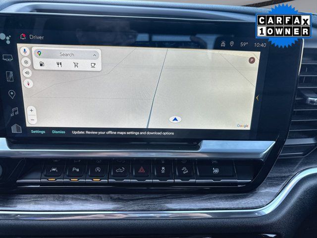 High Capacity Suspension Package,LTZ Convenience Package,LTZ Convenience Package II,LTZ Plus Package,Preferred Equipment Group 1LZ,Safety Package,Technology Package,Trailering Package,Up-Level Rear Seat w/Storage Package,Z71 Off-Road & Protection Package,2 USB Data Ports,7 Speakers,AM/FM radio: SiriusXM with 360L,Dual Rear USB Ports (Charge Only),Premium audio system: Chevrolet Infotainment 3 Premium,Premium Bose 7-Speaker Sound System,Radio data system,Radio: Chevrolet Infotainment 3 Premium System,SiriusXM w/360L,Steering Wheel Audio Controls,Wireless Phone Projection,Air Conditioning,Automatic temperature control,Electric Rear-Window Defogger,Front dual zone A/C,Rear window defroster,120-Volt Bed Mounted Power Outlet,120-Volt Instrument Panel Power Outlet,Bluetooth® For Phone,Driver Memory,Memory seat,Power driver seat,Power Front Passenger Windows w/Express Up/Down,Power Front Windows w/Driver Express Up/Down,Power Rear Windows w/Express Down,Power steering,Power windows,Remote keyless entry,Remote Vehicle Starter System,Steering wheel mounted audio controls,Universal Home Remote,Auto-Locking Rear Differential,Power Tilt & Telescoping Steering Column,Speed-sensing steering,Traction control,Wrapped Steering Wheel,4-Wheel Disc Brakes,ABS brakes,Dual front impact airbags,Dual front side impact airbags,Electrical Steering Column Lock,Front anti-roll bar,Front wheel independent suspension,Keyless Open & Start,Low tire pressure warning,Not Equipped w/Steering Column Lock,Occupant sensing airbag,Overhead airbag,Power Tailgate,Brake assist,Electronic Stability Control,Auto High-beam Headlights,Delay-off headlights,Front fog lights,Fully automatic headlights,Perimeter Lighting,Panic alarm,Security system,Theft Deterrent System (Unauthorized Entry),Adaptive Cruise Control,Electronic Cruise Control,Speed control,170 Amp Alternator,220 Amp Alternator,Engine Block Heater,Auto-dimming door mirrors,Bumpers: chrome,Chevytec Spray-On Black Bedliner,Chrome Mirror Caps,Electronic Transmission Range Selector Shifter,Front Black Bowtie Emblem (LPO),Front LED Fog Lamps,Front License Plate Kit,Heated door mirrors,IntelliBeam Automatic High Beam On/Off,LED Cargo Area Lighting,Outside Heated Power-Adjustable Mirrors,Power door mirrors,Rear step bumper,Rear Wheelhouse Liners,12.3 Multicolor Reconfigurable Digital Display,15 Diagonal Multicolor Head-Up Display,All-Weather Floor Liner (LPO) (AAK),Apple CarPlay/Android Auto,Auto-Dimming Inside Rear-View Mirror,Auto-dimming Rear-View mirror,Automatic Emergency Braking,Bed View Camera,Chevrolet Connected Access Capable,Color-Keyed Carpeting Floor Covering,Compass,Driver door bin,Driver vanity mirror,Floor Mounted Center Console,Following Distance Indicator,Forward Collision Alert,Front Pedestrian Braking,Front reading lights,Front Rubberized Vinyl Floor Mats,HD Surround Vision,Heated Steering Wheel,Heated steering wheel,Illuminated entry,Lane Keep Assist w/Lane Departure Warning,OnStar & Chevrolet Connected Services Capable,Outside temperature display,Overhead console,Passenger vanity mirror,Rear Camera Mirror,Rear Cross Traffic Alert-Braking,Rear Pedestrian Alert,Rear reading lights,Rear Rubberized-Vinyl Floor Mats,Rear seat center armrest,Safety Alert Seat,Standard Tailgate,Tachometer,Telescoping steering wheel,Tilt steering wheel,Trailer Side Blind Zone Alert,Trailering App,Trip computer,Ultrasonic Front & Rear Park Assist,Voltmeter,Wi-Fi Hot Spot Capable,Wireless Charging,10-Way Power Driver Seat w/Lumbar,10-Way Power Passenger Seat Adjuster w/Lumbar,2nd Row Heated Outboard Seats,Front Bucket Seats,Front Center Armrest,Heated Driver & Front Outboard Passenger Seats,Heated front seats,Perforated Leather-Appointed Front Seat Trim,Power passenger seat,Split folding rear seat,Ventilated Driver & Front Passenger Seats,Ventilated front seats,Passenger door bin,Front Frame-Mounted Black Recovery Hooks,Hitch Guidance,Hitch Guidance w/Hitch View,Integrated Trailer Brake Controller,Trailer Camera Provisions,Alloy wheels,Wheels: 20 x 9 Sterling Silver Painted Aluminum,Deep-Tinted Glass,Front Rainsensing Wipers,Power Sliding Rear Window w/Rear Defogger,Rain sensing wipers,Variably intermittent wipers,3.23 Rear Axle Ratio,FRESH TRADE,COMPLETE SERVICE AND INSPECTION JUST DONE,SUPER CLEAN,LPO ALL-WEATHER FLOOR LINERS 1ST AND 2ND ROWS (includes Z71 logo on front mats),HILL DESCENT CONTROL,TECHNOLOGY PACKAGE includes (DRZ) Rear Camera Mirror and (UV6) 15 Diagonal Head-Up Display (Includes (UVN) Bed View Camera.,AIR FILTER HEAVY-DUTY,UNIVERSAL HOME REMOTE,LTZ CONVENIENCE PACKAGE II includes (A48) rear sliding power window (UG1) Universal Home Remote (KA6) Rear Heated Outboard Seats and (KSG) Adaptive Cruise Control-Camera,SKID PLATES,ENGINE DURAMAX 3.0L TURBO-DIESEL I6 (305 hp [227 kW] @ 3750 rpm 495 lb-ft of torque [671 Nm] @ 2750 rpm) (Includes (KW5) 220-amp alternator and (K05) engine block heater.),ENGINE BLOCK HEATER,SEATS FRONT BUCKET with center console (STD) (Includes (EPH) Electronic Transmission Range Selector (console mounted).),GVWR 7200 LBS. (3266 KG),LICENSE PLATE KIT FRONT,LPO BLACK BOWTIE EMBLEM FRONT (dealer-installed) When ordered with (QK2) Multi-Flex tailgate will include Black tailgate bowtie.),TRANSFER CASE TWO-SPEED electronic Autotrac with push button control,Z71 OFF-ROAD PACKAGE includes (Z71) Off-Road suspension (JHD) Hill Descent Control (NZZ) skid plates and (K47) heavy-duty air filter Includes Z71 hard badge (N10) dual exhaust (QAE) 275/60R20 all-terrain blackwall tires and (NQH) 2-speed transfer case.,NOT EQUIPPED WITH STEERING COLUMN LOCK SEE DEALER FOR DETAILS,REAR AXLE 3.23 RATIO,ALTERNATOR 220 AMPS,WINDOW POWER REAR SLIDING with rear defogger,REAR CAMERA MIRROR INSIDE REARVIEW AUTO-DIMMING with full camera display,ADAPTIVE CRUISE CONTROL,BED VIEW CAMERA camera in the CHMSL to show a view of the cargo bed includes Two Trailer Camera Provisions,WHEELS 20 X 9 (50.8 CM X 22.9 CM) STERLING SILVER PAINTED ALUMINUM (STD),TIRES 275/60R20SL ALL-TERRAIN