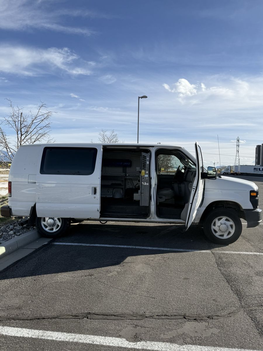 Reliable 2012 Ford Econoline E150 work van, fully set up and ready for auto glass or similar service work.