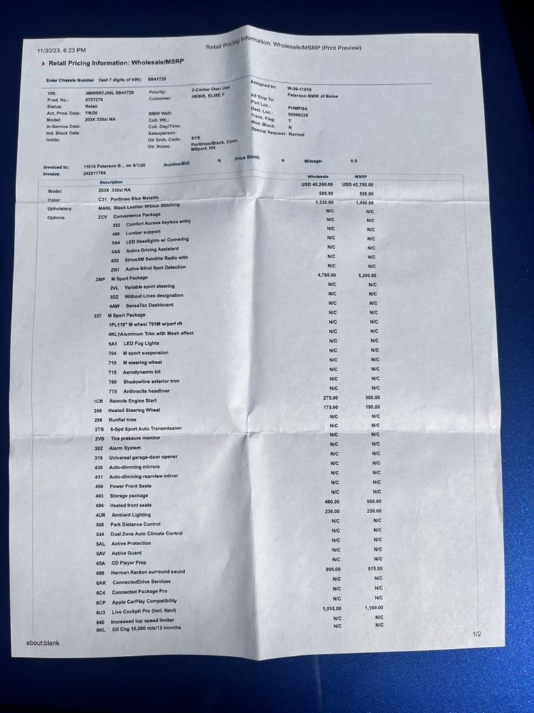 Selling my low mileage 2020 BMW 330i xDrive in eye catching Portimao Blue Metallic.