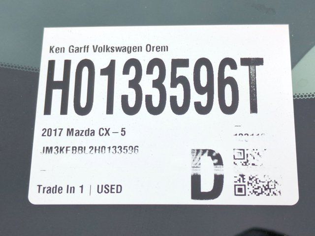 Ken Garff Volkswagen is excited to offer this beautiful 2017 Mazda CX-5 Sport in Jet Black Mica.17 x 7J Aluminum Alloy Wheels, 4 Speakers, 4-Wheel Disc Brakes, 4.62 Axle Ratio, ABS brakes, Air Conditioning, Alloy wheels, AM/FM radio, Brake assist, Bumpers: body-color, Cloth Seat Trim, Delay-off headlights, Driver door bin, Driver vanity mirror, Dual front impact airbags, Dual front side impact airbags, Electronic Stability Control, Emergency communication system, Four wheel independent suspension, Front anti-roll bar, Front Bucket Seats, Front Center Armrest, Front reading lights, Illuminated entry, Low tire pressure warning, Occupant sensing airbag, Outside temperature display, Overhead airbag, Overhead console, Panic alarm, Passenger door bin, Passenger vanity mirror, Power door mirrors, Power steering, Power windows, Radio data system, Radio: AM/FM/HD Audio System w/4 Speakers, Rear anti-roll bar, Rear reading lights, Rear window defroster, Rear window wiper, Remote keyless entry, Speed control, Speed-sensing steering, Split folding rear seat, Spoiler, Sport Shape Front Seats, Steering wheel mounted audio controls, Tachometer, Telescoping steering wheel, Tilt steering wheel, Traction control, Trip computer, Turn signal indicator mirrors, Variably intermittent wipers. 23/29 City/Highway MPGAwards: * 2017 KBB.com Brand Image AwardsBuy with Confidence at Ken Garff Volkswagen! All of our used vehicles go through a rigorous 150 point inspection by our master certified technicians. All of our prices are based off market conditions to be the best value for our customers! We are conveniently located at 115 E University Parkway in Orem, UT 84058. Just 1 Block west of University Mall. Additional Ken Garff VW benefits include: -- A Better Business Rating --Lifetime Garff Care. This includes roadside assistance and towing along the Wasatch Front for as long as you own your car. --Car Fax on every used vehicle. --No Hassle 3-Day Exchange on every new or used vehicle.