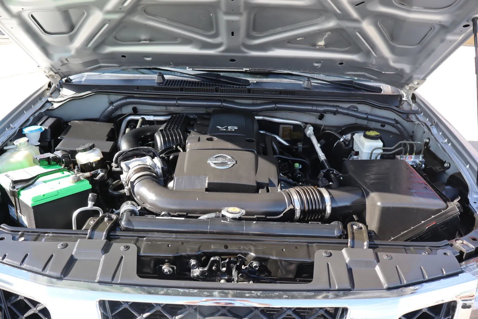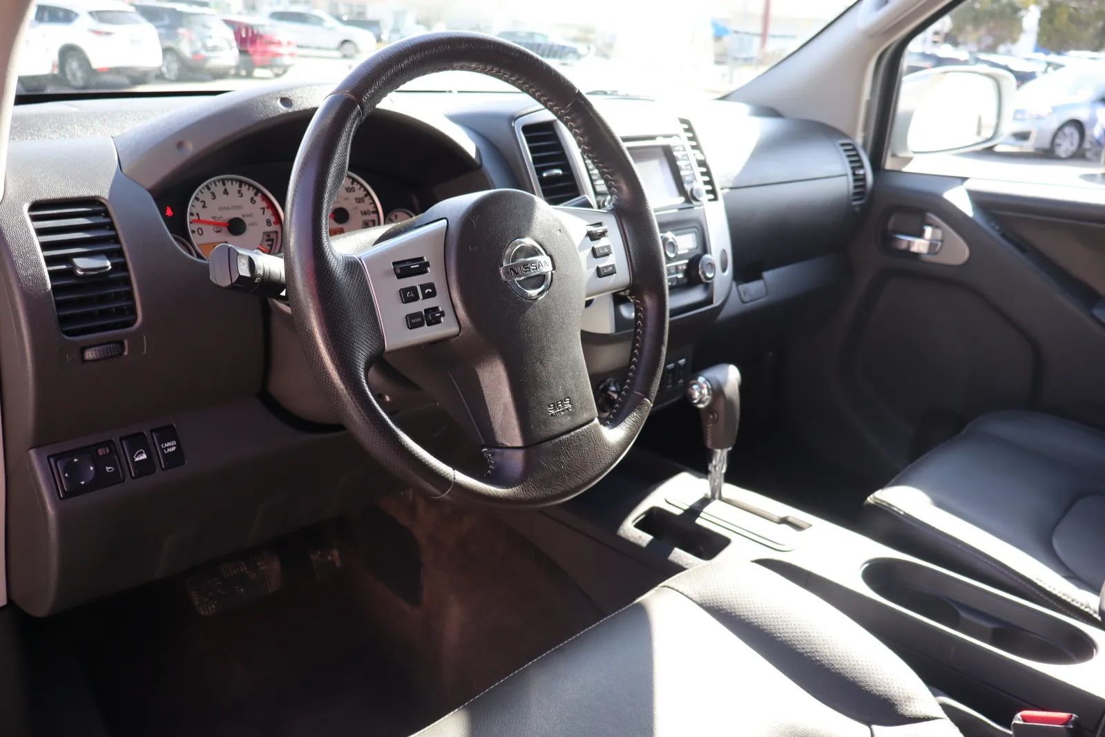 Aluminum Alloy Wheels, Spray-on Pickup bed liner, Rear Mudguards, Front Mudguards, Power Side mirror adjustments, Front fog lights, Steel Spare wheel, Variable Intermittent Front wipers, Rear privacy glass, Tire Pressure Monitoring System, Manual Pickup sliding rear window, Full-size Spare tire size, Auto On/off Headlights, Rear Skid plate(s), Front Skid plate(s), Auto Delay Off Headlights, Pickup bed light, Remotely Operated Power windows, Chrome Surround Grille color, Black Window trim, Manual Folding Side mirror adjustments, Black Grille color, DVD Navigation system, Touch Screen Display Navigation system, Voice Operated Navigation system, Rockford Fosgate Premium brand, Bluetooth Wireless data link, Voice Operated Hands-free phone call integration, Voice Operated Radio, Bluetooth Auxiliary audio input, Pandora Internet radio app, 2 Subwoofer, 8 Total speakers, Touch Screen Display Radio, Real Time Traffic Navigation data, With Read Function Electronic messaging assistance, Voice Operated Electronic messaging assistance, SiriusXM Satellite radio, IHeartRadio Internet radio app, USB Auxiliary audio input, IPod/iPhone Auxiliary audio input, 5.8 In. Infotainment screen size, Voice Guided Directions Satellite communications, NissanConnect Infotainment, Single Disc In-Dash CD, MP3 Playback In-Dash CD, Jack Auxiliary audio input, AM/FM Radio, Radio data system, Facebook Connected in-car apps, Speed sensitive volume control, Twitter Connected in-car apps, SiriusXM Travel Link Connected in-car apps, SiriusXM Weather Connected in-car apps, SiriusXM Movie Listing Connected in-car apps, SiriusXM Stocks Connected in-car apps, Google Search Connected in-car apps, Leather Steering wheel trim, Automatic Climate Control Front air conditioning, Dual Front air conditioning zones, Heated Driver seat, Leather Shift knob trim, Heated Passenger seat, Auto-dimming Rearview mirror, Variable/speed-proportional Power steering, Cruise control, Cloth Upholstery, Bucket Front seat, Keyless Entry Multi-function remote, 60-40 Split Bench Rear seat, Air filtration, Folds Up Rear seat folding, Split Rear seat folding, Three 12V Front Power outlet(s), Lumbar Driver seat manual adjustments, Multi-function display, Oil Pressure Gauge, Front Console With Armrest And Storage Center console, Compass, External temperature display, Tilt Steering wheel, 8 Driver seat manual adjustments, Front Reading lights, Tachometer Gauge, Metallic-tone Interior accents, Front Cupholders, Front Overhead console, Rear Cupholders, 1 One-touch windows, Panic Alarm Multi-function remote, Audio Steering wheel mounted controls, Dual Vanity mirrors, Under Rear Seats Storage, Carpet Floor material, Cruise Control Steering wheel mounted controls, Phone Steering wheel mounted controls, Front Seatback Storage, Voice Control Steering wheel mounted controls, Sunglasses Holder Storage, Rearview Camera system, Front Side airbags, Rear Side curtain airbags, Front Side curtain airbags, Rear Parking sensors, Dual Front Active head restraints, 4-wheel ABS, Anti-lockout Power door locks, Auto-locking Power door locks, Hill Descent Off-road driving assist, Ventilated Disc Rear brake, Alarm Anti-theft system, Hill holder control, Ventilated Disc Front brake, Dual Front airbags, Vehicle Immobilizer Anti-theft system, Power brakes, LATCH System Child seat anchors, Electronic brakeforce distribution, Stability control, Traction control, In Dash Rearview monitor, Occupant Sensing Passenger Airbag deactivation, Front Seatbelt pretensioners, Front Seatbelt force limiters, First aid kit, Front Emergency locking retractors, Rear Emergency locking retractors, Front Seatbelt warning sensor, Electronic Hi-lo 4WD selector, Rear Locking differential, Part Time 4WD, Off-road Tuned suspension, Receiver Hitch Trailer hitch, Front Tow hooks, Independent Front suspension classification, Double Wishbone Front suspension, Front struts, 130 Amps Alternator, Solid Live Axle Rear suspension classification, Diameter 34 Mm Front stabilizer bar, Monotube Front shock, Monotube Rear shock, Battery saver, Tie-down Anchors Pickup bed cargo management