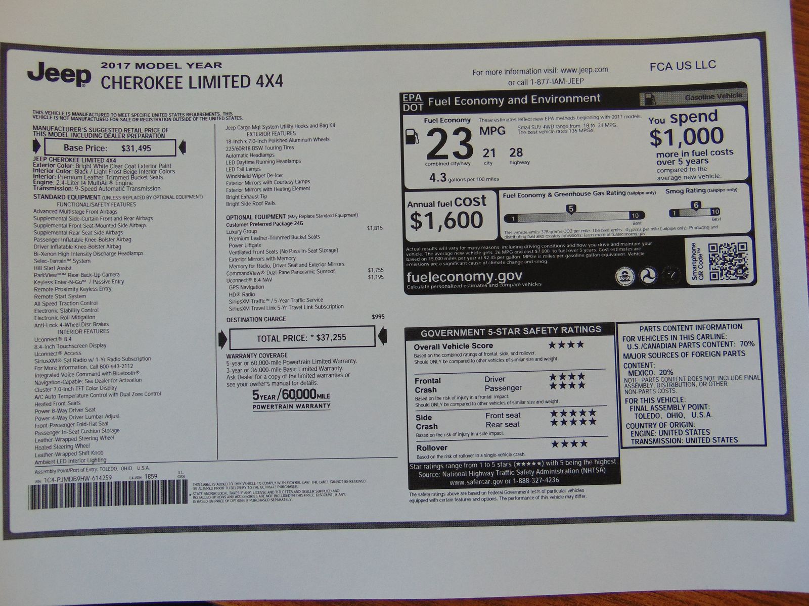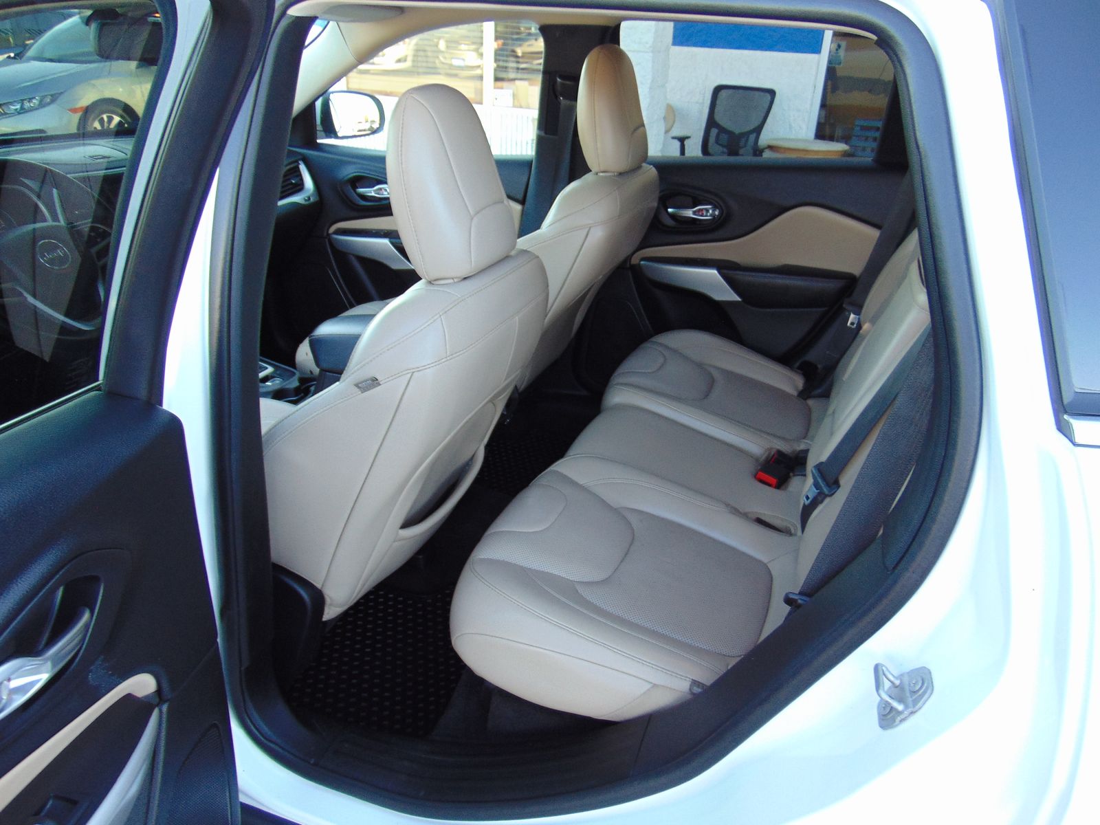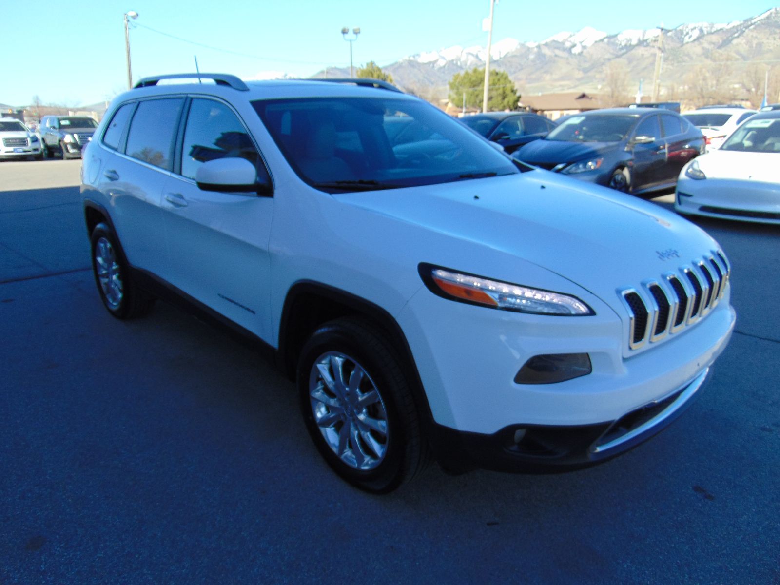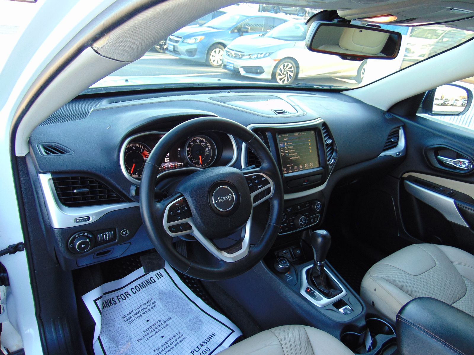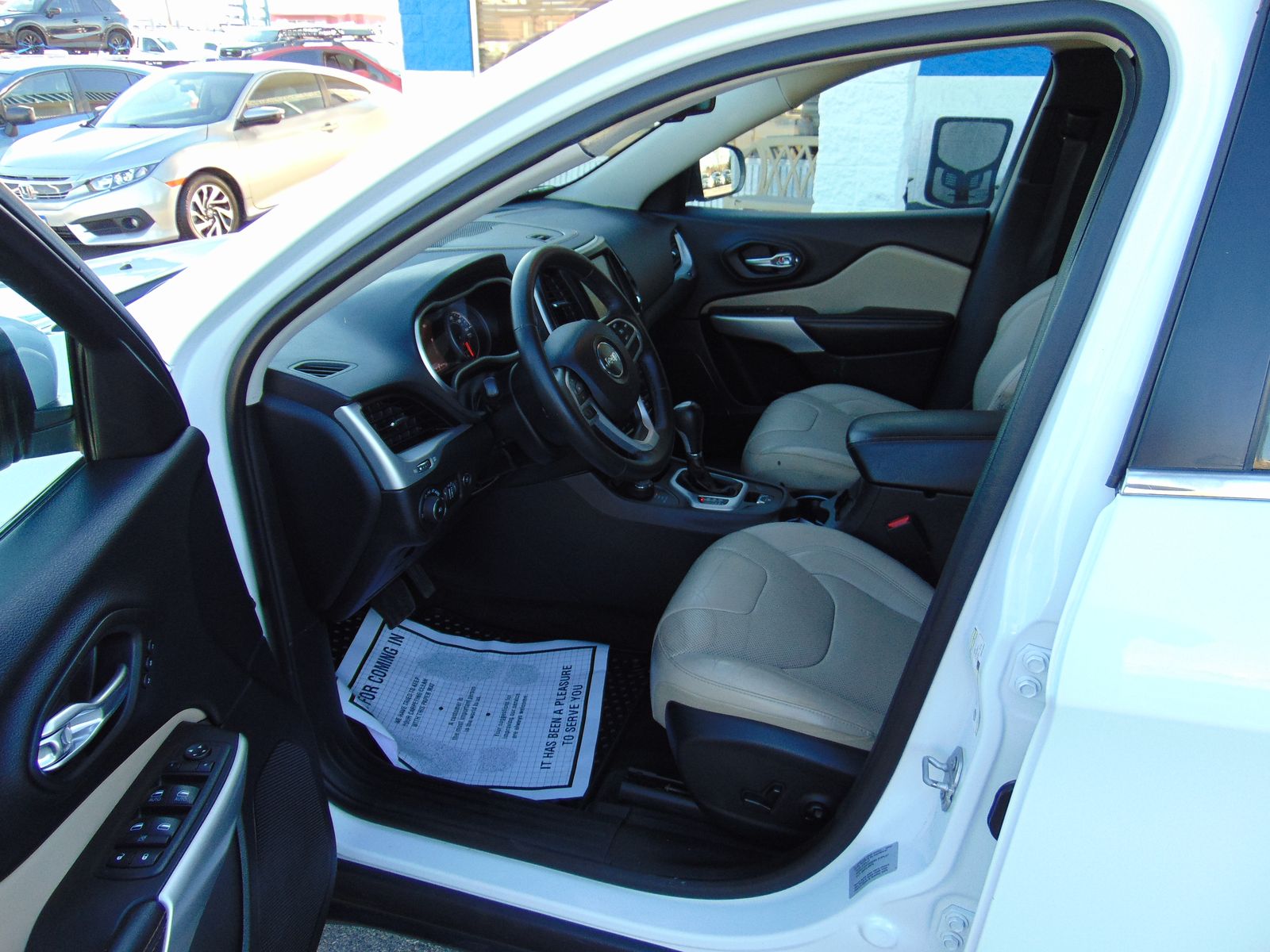 2017 JEEP CHEROKEE, LIMITED, 4CYL, ALL WHEEL DRIVE, 95,703 MILES, 9 SPEED AUTOMATIC, TERRAIN-SELEC, TAN LEATHER INTERIOR, 5 PASSENGER SEATING, POWER LIFTGATE, HEATED AND COOLED FRONT SEATS, DRIVERS MEMORY SEAT, 8 WAY DRIVERS SIDE POWER SEAT WITH LUMBAR SUPPORT, PANORAMIC SUNROOF, NAVIGATION, 8.4 INCH TOUCH SCREEN, XM RADIO, HEATED STEERING WHEEL, LUGGAGE RACK, FACTORY 18 INCH WHEELS, HILL START ASSIST, BACKUP CAMERA, PUSH TO START, DUAL CLIMATE CONTROL, REMOTE START, AUTO DIMMING REAR VIEW MIRROR, UNIVERSAL GARAGE DOOR OPENER, NEW TIRES, FOG LIGHTS. 2 OWNERS WITH NO ACCIDENTS AND 30 SERVICE RECORDS. CLEAN TITLE AND ACTUAL MILES. THIS JEEP IS IN EXCELLENT CONDITION!