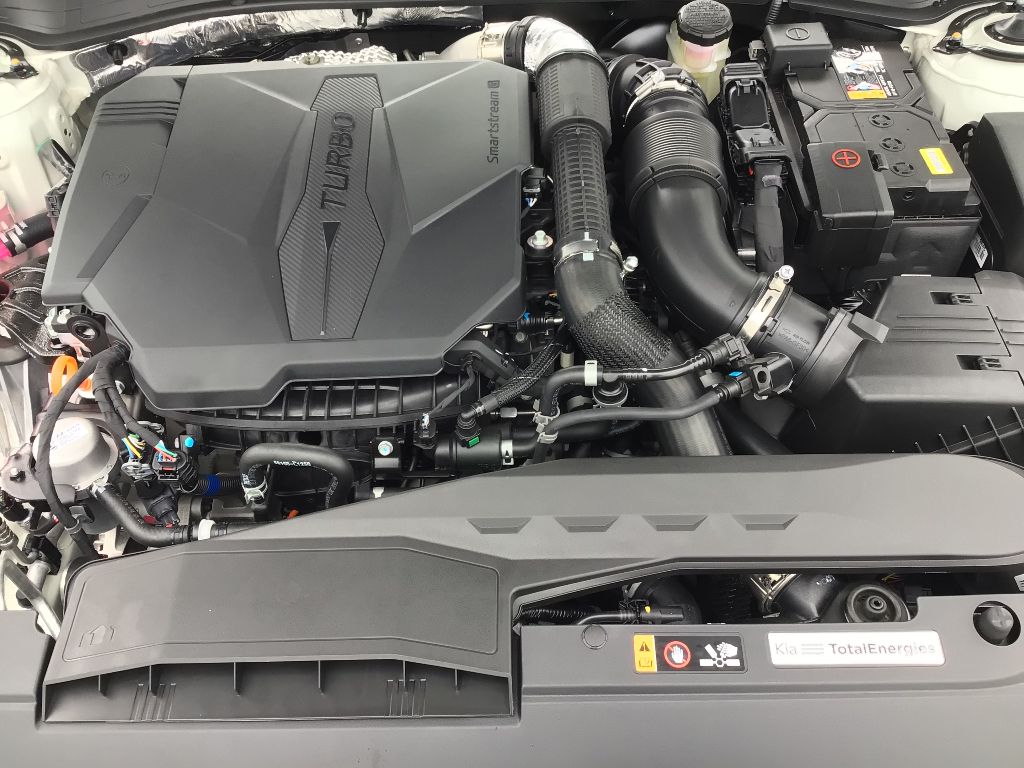 Wireless Apple CarPlay & Android Auto smart device wireless mirroring,Highway Driving Assist (HDA) hands-on cruise control,Pedestrian Detection,Navigation-based Smart Cruise Control - Curve (NSCC-C) Automatic curve slowdown cruise control,Rear View Monitor with Parking Guidance rear mounted camera,Lane Departure Warning System (LDWS),Smart Cruise Control with Stop & Go (SCC w/S&G),Brake assist system,Cruise control with steering wheel mounted controls,Integrated navigation system with voice activation,Keyfob remote start,Heated driver and front passenger seats,SynTex leatherette front seat upholstery,Primary monitor touchscreen,Rear Cross-Traffic Collision Avoidance (RCCA),First and second-row sliding and tilting glass sunroof with express open/close activation sunshade,Driver seat power reclining, lumbar support, cushion tilt, fore/aft control and height adjustable control,2.5L I-4 port/direct injection, DOHC, variable valve control, intercooled turbo, regular unleaded, engine with 290HP,2.5L I-4 DOHC,Front wireless smart device charging,Forward Collision-Avoidance Assist (FCA-JT: Cyc/Ped/Junction Turning),Driver Attention Warning (DAW),Restricted driving mode/alerts,Smart Key with hands-free access and push button start,Front windshield solar coating,Push-button,Automatic brake hold,Bluetooth wireless audio streaming,Power rear child safety door locks,Smart Trunk proximity cargo area access release,Blind-Spot Collision-Avoidance Assist (BCA) blind spot warning,Safe Exit Assist (SEA) w/Lock external exit warning system,Dual-zone front climate control,High Beam Assist (HBA) auto high-beam headlights,Immobilizer,Vehicle tracker,Kia Connect (includes 1 year free trial) vehicle integrated emergency SOS system,Bluetooth handsfree wireless device connectivity,External memory control,5 USB ports,Electronic stability control system,Hill start assist,Automatic climate control,Rear Occupant Alert (ROA) rear seat check warning,Parking Distance Warning - Forward & Reverse (PDW-F&R) front and rear parking sensors,LED daytime running lights,LED brake lights,LED front fog lights,Leather steering wheel,Sport ride suspension