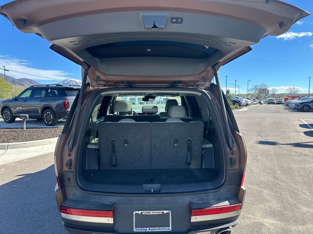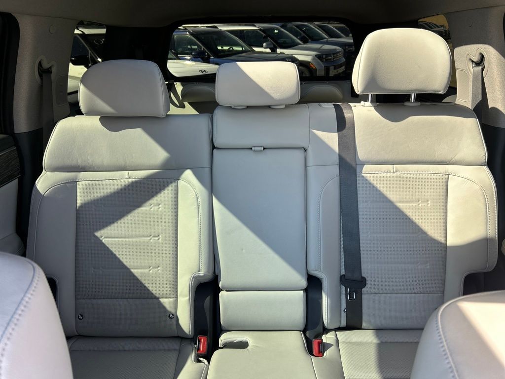 Option Group 01, 12 Speakers, 3rd row seats: bench, 4-Wheel Disc Brakes, ABS brakes, Air Conditioning, Alloy wheels, AM/FM radio: SiriusXM, Apple CarPlay & Android Auto, Auto High-beam Headlights, Auto-dimming Rear-View mirror, Automatic temperature control, Axle Ratio: 3.316, Brake assist, Bumpers: body-color, Cargo Blocks, Cargo Cover/Screen, Carpeted Floor Mats, Delay-off headlights, Driver door bin, Driver vanity mirror, Dual front impact airbags, Dual front side impact airbags, Electronic Stability Control, Emergency communication system, Exterior Parking Camera Rear, Four wheel independent suspension, Front anti-roll bar, Front Bucket Seats, Front Center Armrest, Front dual zone A/C, Front reading lights, Fully automatic headlights, Garage door transmitter: HomeLink, Heated & Ventilated Front Bucket Seats, Heated door mirrors, Heated front seats, Heated rear seats, Heated steering wheel, Illuminated entry, Knee airbag, Leather Seat Trim, Leather steering wheel, Low tire pressure warning, Memory seat, Navigation System, Occupant sensing airbag, Outside temperature display, Overhead airbag, Overhead console, Panic alarm, Passenger door bin, Passenger vanity mirror, Power door mirrors, Power driver seat, Power Liftgate, Power moonroof, Power passenger seat, Power steering, Power windows, Radio: AM/FM/HD Bose Premium Audio System, Rain sensing wipers, Rear anti-roll bar, Rear seat center armrest, Rear side impact airbag, Rear window defroster, Rear window wiper, Remote keyless entry, Security system, Speed control, Speed-sensing steering, Split folding rear seat, Spoiler, Steering wheel mounted audio controls, Tachometer, Telescoping steering wheel, Tilt steering wheel, Traction control, Trip computer, Turn signal indicator mirrors, Variably intermittent wipers, Ventilated front seats, and Wheels: 20'' x 8.5J Alloy.